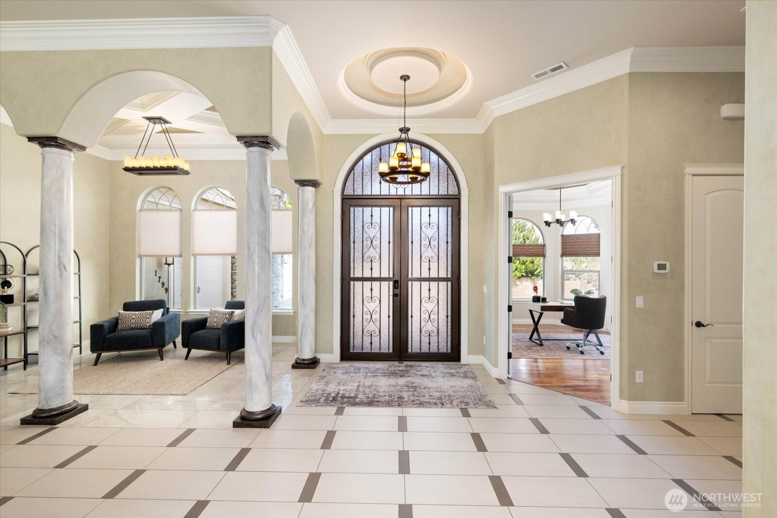 (650)533-3259Tucked away on a quiet cul-de-sac, this private 2012-built home sits on a rare double lot and offers a refined blend of luxury and functionality. A custom grand iron door opens to a striking entry with 13’ ceilings (10’ throughout main areas), hardwood floors, crown molding, and Venetian plaster walls. The kitchen features a gas cooktop, expanded layout, and added pantry, flowing seamlessly into the main living spaces and large casual dining space. The primary suite offers dual closets, a soaking tub, and full tile shower, with an office and two additional bedrooms connected by a Jack & Jill bath on the main level. Upstairs, the bonus room serves as a fourth bedroom with its own bath, walk-in closet, and Juliet balcony. Designed for lifestyle living, the backyard features a covered patio and separate outdoor pavilion with granite countertops, Lynx grill, cooktop, sink, EVO grill, and pizza oven, plus a gas firepit, water feature with waterfall, garden beds, and gated access from Gage Blvd. A oversized finished 3-car garage includes polyurethane floors, a 8x15 storage room and extra space for gym set up. The climatized shop offers a bathroom, sink, mini split, basement/cold storage, and direct access from Gage. Fully pre-inspected and repairs completed