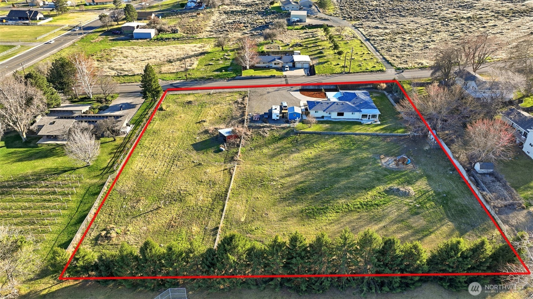(650)533-3259Bring your animals and enjoy rare acreage in the heart of West Richland. This 2.4 acre property offers space and flexibility rarely found this close to town. Fully irrigated, fenced and cross fenced, well suited for horses, livestock, hobby farming, gardening, or even a small vineyard like neighboring property. The updated mid-century rambler provides comfortable living with multiple gathering spaces and are modeled kitchen, primary suite and sunroom. Recent upgrades include a high efficiency variable speed heat pump HVAC system. Plenty of open space remains for a future shop, barn, or additional outbuildings while still enjoying quick access to schools, shopping, and everyday amenities in West Richland and the Tri Cities.