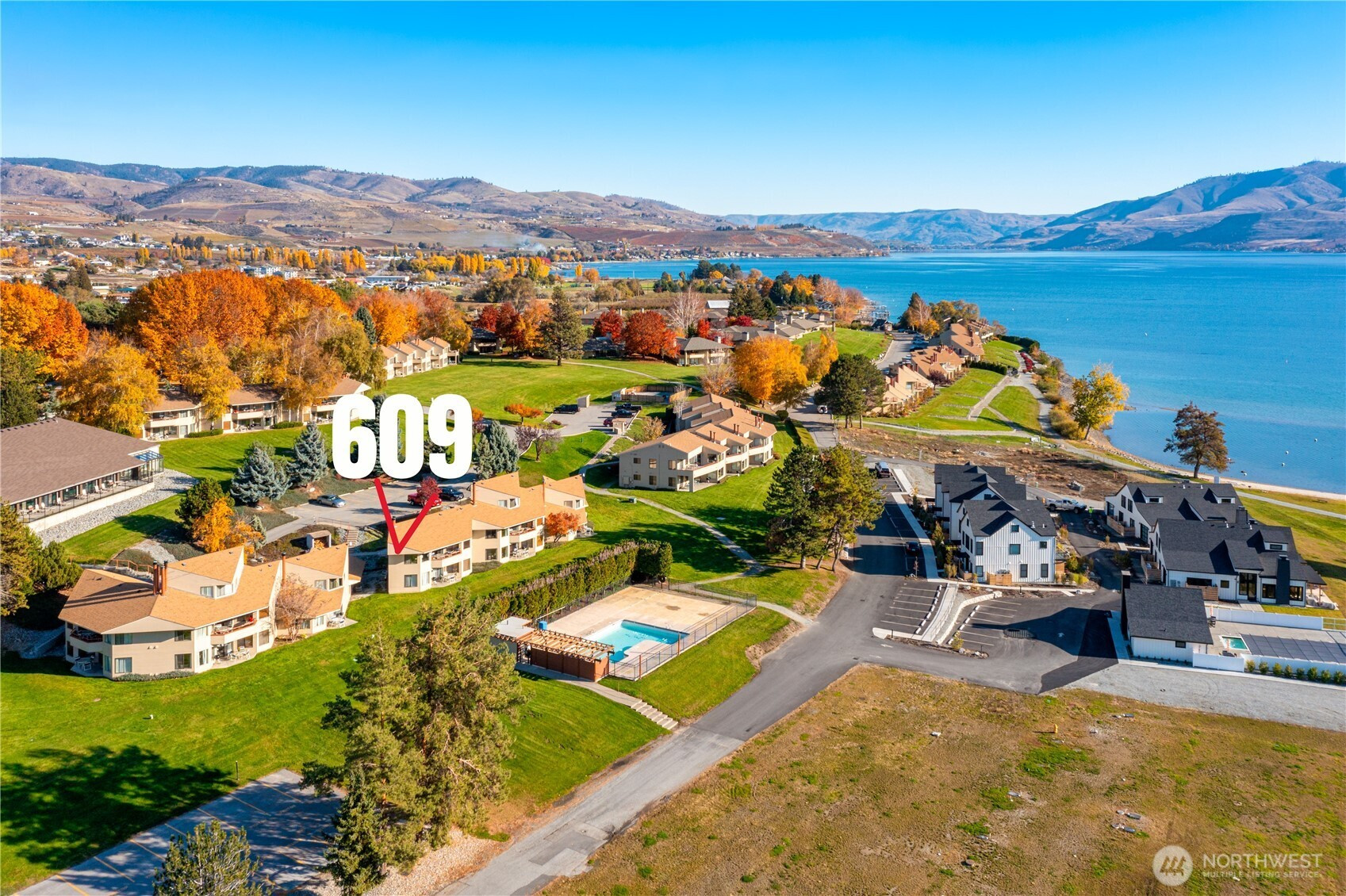 (650)533-3259Newly REMODELED with high end finishes! Upper Floor CORNER 2 Bedroom 2 Bath fully equipped condo. Buy NOW & use August 7-14 & December 4-11 in 2026. January 1-8, May 14-21 & September 10-17 in 2027. February 11-18, June 9-16 & October 6-13 in 2028. Only 5 units in this building gives you a great feeling of privacy. Beautiful lake & mountain views & spacious lawn areas from your private patio. Outdoor pool only steps away from the condo. Located next to indoor pool, hot tub, exercise facility & just across the lawn are world class resort amenities: boat moorage, sandy beach waterfront, mini-golf, children's activity center, watercraft rentals, basketball, volleyball and more. Less than 1 block to community sandy beach & tennis/pickleball courts. Affordable HOA Fees $876 per quarter (includes remodel cost). 3 rotating weeks every year on a Friday to Friday rotation. Enjoy all seasons the Lake Chelan Valley has to offer. Use your weeks, rent for income or trade thru RCI & visit other places. Less than 2 blocks to downtown Manson shopping, restaurants, wineries, coffee shops, bakeries, grocery store & night life. One of Washington State's most desired vacation spots. 116 Acres of FUN for ALL Ages!