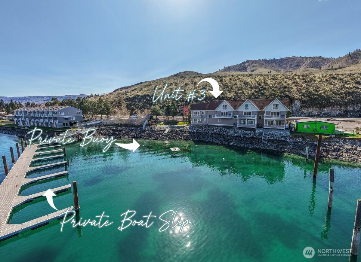 (650)533-3259Discover unparalleled lakeside luxury in this rare, oversized waterfront condo, the largest in all of Chelan. Built directly over the crystal-clear waters of Lake Chelan, this exquisite 4-bed, 3.5-bath residence offers an unparalleled connection to the lake in an intimate building of only three units. Spacious and sophisticated, the home showcases multiple upgrades: premium flooring, fresh paint, new light fixtures, and frameless glass shower doors. Two primary bedrooms feature private en-suite bathrooms, while a propane fireplace adds cozy ambiance to the main living space. You'll savor breathtaking lake views from any of the three decks, perfect for taking in those pleasant Summer evenings. Outside, your oasis awaits: a brand-new dock with a dedicated boat slip, private boat buoy, a floating dock, and a private beach area right at your doorstep. This is lakeside living at its finest. Just steps from vibrant downtown Chelan via the new Lakeshore Trail that passes directly by the home, you’ll enjoy effortless access to restaurants, shops, and recreation. The well-maintained building boasts fresh paint and new ice-guard heat strips for year-round peace of mind. Directly across the lake from Don Morse Park, this turnkey masterpiece is perfectly positioned as the premier spot to watch the local fireworks light up the sky. Vacation rentals allowed, making this an enticing investment opportunity. Experience the ultimate Lake Chelan lifestyle in this one-of-a-kind luxury condo.