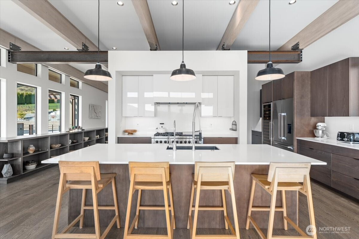 (650)533-3259Discover modern elegance at 140 Clos Chevalle Road in Chelan. Nestled in this exclusive vineyard community perched above Lake Chelan's South Shore, this 4-bed/3.5-bath Mountain Modern home features clean lines, expansive floor-to-ceiling glass walls, exposed structural steel beams, and warm natural materials that seamlessly blend with the home's pristine surroundings.The heart of the home is the deluxe chef's kitchen, with high-end Fisher & Paykel appliances, central to the open concept living space which extends to the expansive heated decks. Warm engineered hardwood floors lead to the private primary suite, complete with 5-piece bath featuring a full-height glass shower enclosure and sleek free-standing soaking tub. The lower level is warmed by heated concrete floors, zoned for each room. 3 bedrooms, including a guest suite with attached bath, complete the space. Mix a drink at the wet bar before heading out to your private oasis, complete with heated/cooled gunite pool and hot-tub, both with auto-covers. The perfect sanctuary for elegant gatherings or effortless relaxation. The recently re-sealed private drive leads to your massive 3-car garage, complete with EV charging station. Tasteful low maintenance landscaping frames the home in this picturesque setting. Clos Chevalle is a gated community, with scenic trails and a lush community park. Easy access via highway 97A and close to BMR golf course, lake access and a number of the regions top-rated wineries.