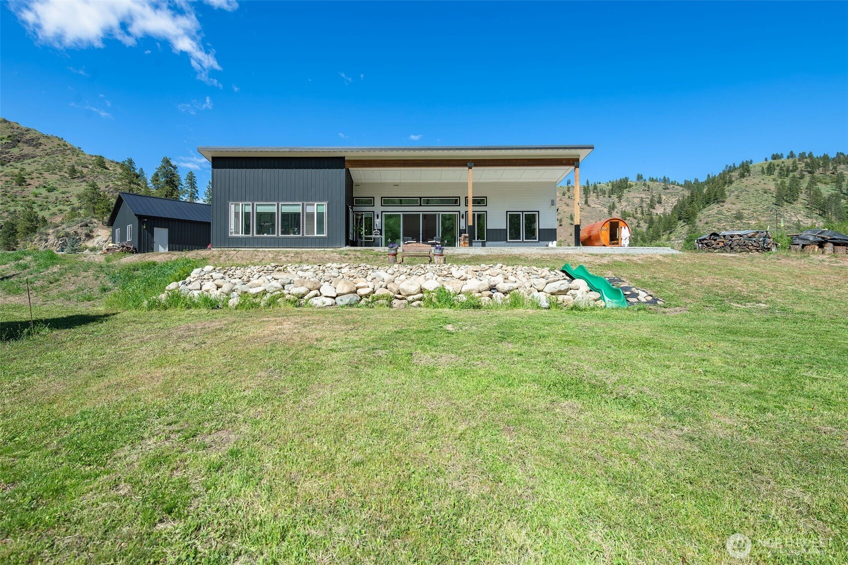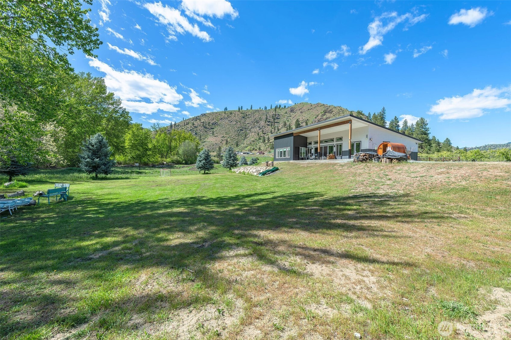 (650)533-3259Experience the perfect blend of country living w/ modern comfort & natural beauty in this newer construction home, thoughtfully designed w/ clean, contemporary finishes & set on nearly 2 acres of usable land along the Mad River (550ft+ of river frontage) & Entiat River confluence. The property offers a peaceful, private setting w/ fruit trees, flourishing berry bushes, & ample garden space--ideal for those who appreciate outdoor living & sustainability. Inside, the heart of the home is a stunning great room filled w/ natural light, seamlessly connected to a chef's kitchen featuring a gas range, generous workspace, & an inviting layout perfect for everyday living or entertaining. The primary suite features a walk-in closet & a sleek ensuite w/ dual sinks, beautifully tiled shower, & is conveniently accessible to a versatile sunroom that can serve as a bright home office, relaxation space, home gym, or entertainment area year-round. Each bathroom is equipped w/ luxurious towel warmers, adding a touch of everyday comfort, while a barrel sauna on the property creates a private refuge for rest & rejuvenation. Just beyond the sliding glass doors, the river offers a serene backdrop w/ 2 beaches & the unique opportunity to witness seasonal runs of Chinook, Sockeye & Coho salmon. Completing the package is an expansive 700+ sqft garage, providing abundant space for hobbies & equipment. This is a rare opportunity to enjoy modern living surrounded by the best nature can offer!