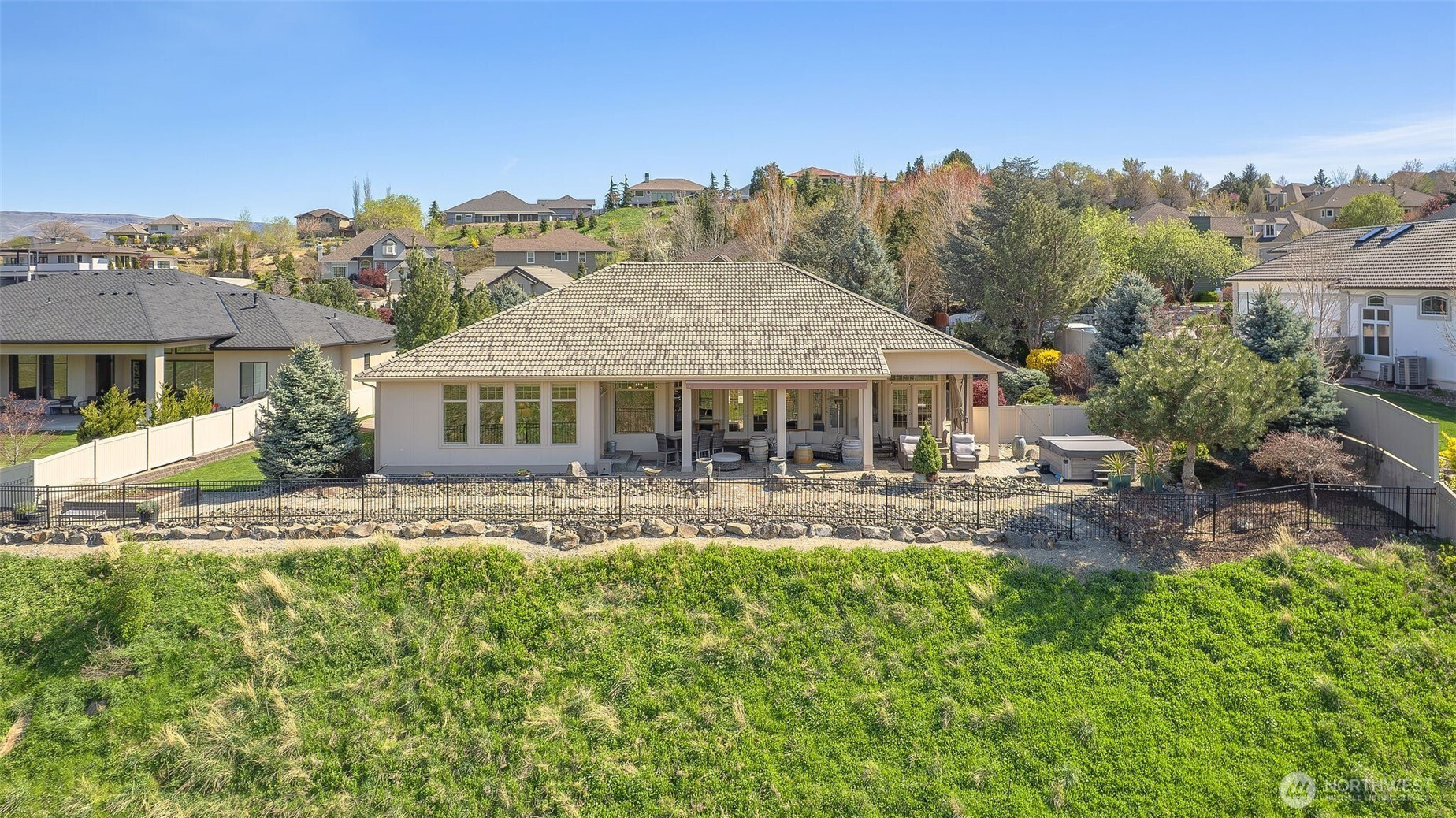 (650)533-3259Experience the difference of true quality in this highly sought-after Broadview Subdivision rambler, offering 2,880 sq ft of single-level living on a .45-acre lot with no back neighbors & private canyon views. Thoughtfully designed & meticulously maintained, this home showcases elevated timeless finishes for both comfort & entertaining. Inside, you’ll find 16’ ceilings, abundant natural light & beautiful hardwood flooring that create a warm, refined feel. The kitchen features Corian countertops, stainless steel appliances, a new oven & microwave, pantry & under-cabinet lighting, flowing seamlessly into both formal and casual dining spaces. The primary suite is a true retreat, complete with a large walk-in closet, double sinks, soaking tub, tile walk-in shower & jetted tub. The dual-access main bathroom is ideal for indoor-outdoor living with direct patio & hot tub access, while the guest bath offers double sinks, tub/shower combo & pocket door for shared use. Step outside to a backyard designed for both relaxation & entertaining, featuring extensive professional landscaping, stamped concrete, paver patios, and a covered patio with electric awning. Unwind in the oversized hot tub perfectly positioned to take in all the views! Highlights include a 3-car garage with tall ceilings, concrete tile roof, new HVAC (2016), new hot water heater (2022) & abundant storage throughout. Located in one of Wenatchee’s most desirable neighborhoods with Broadview pool rights.