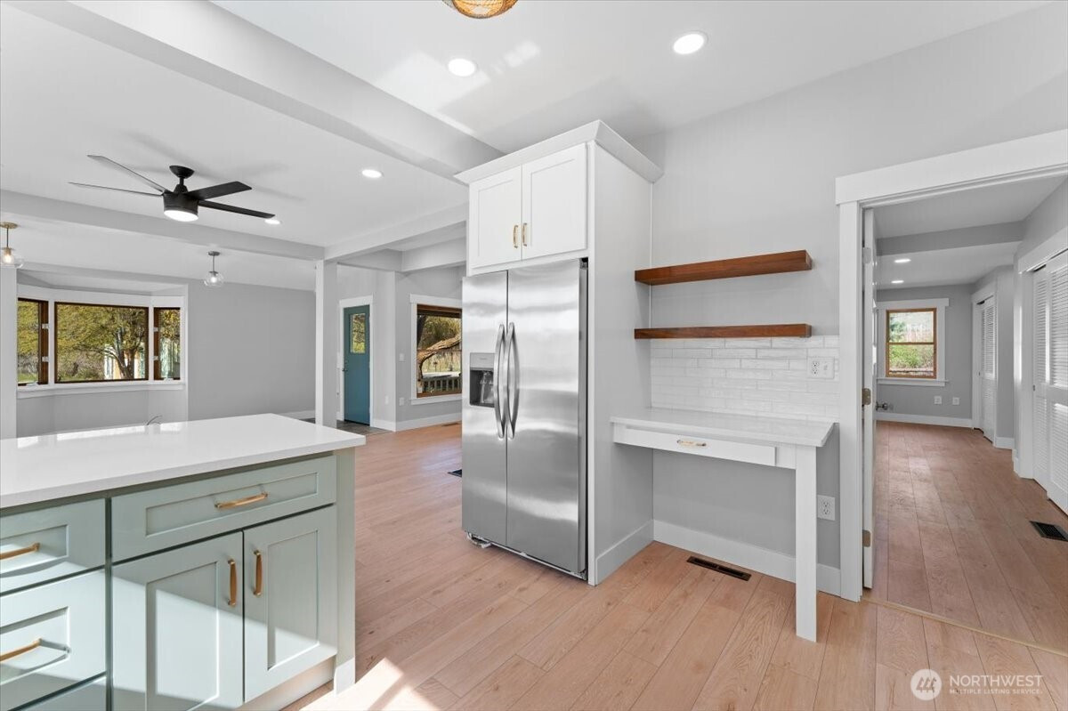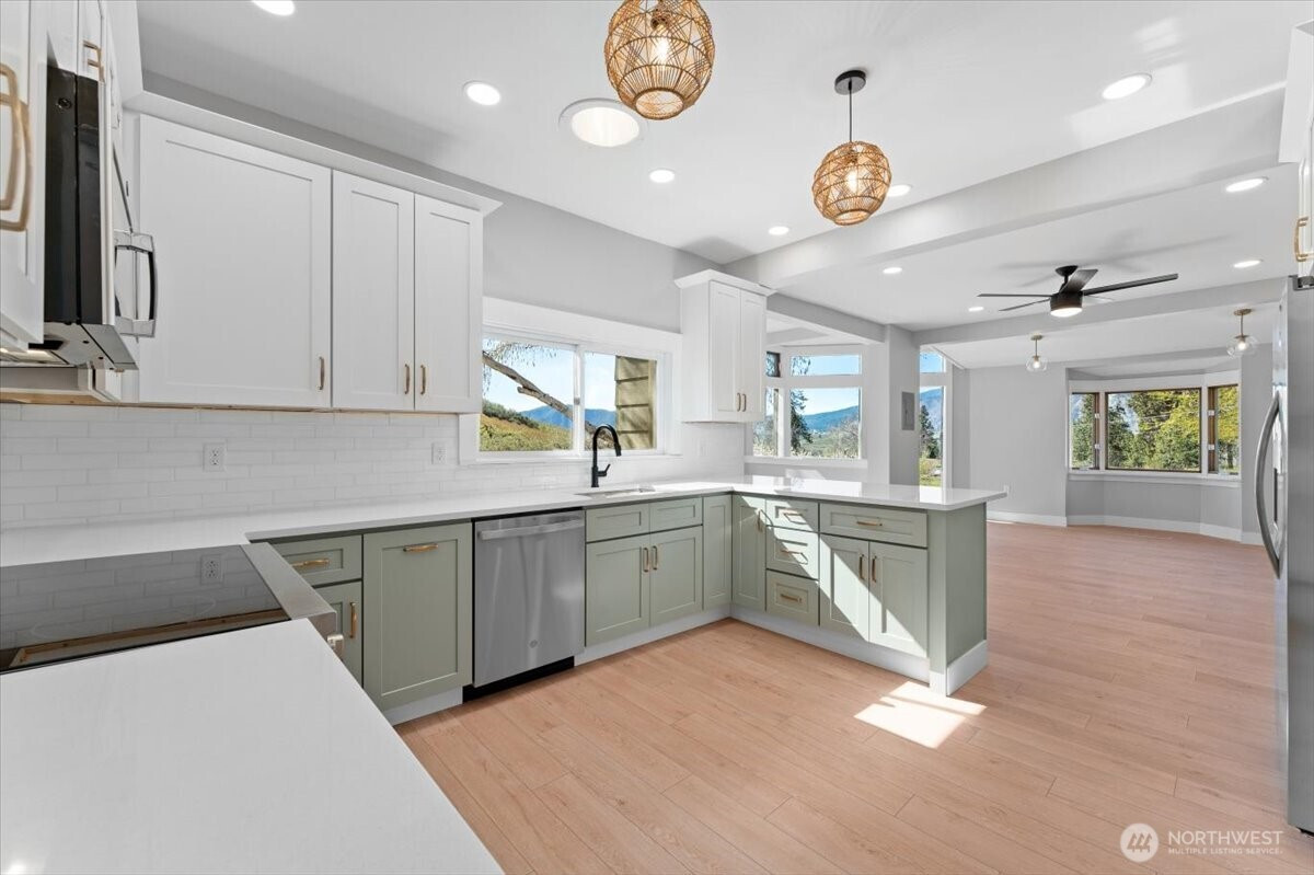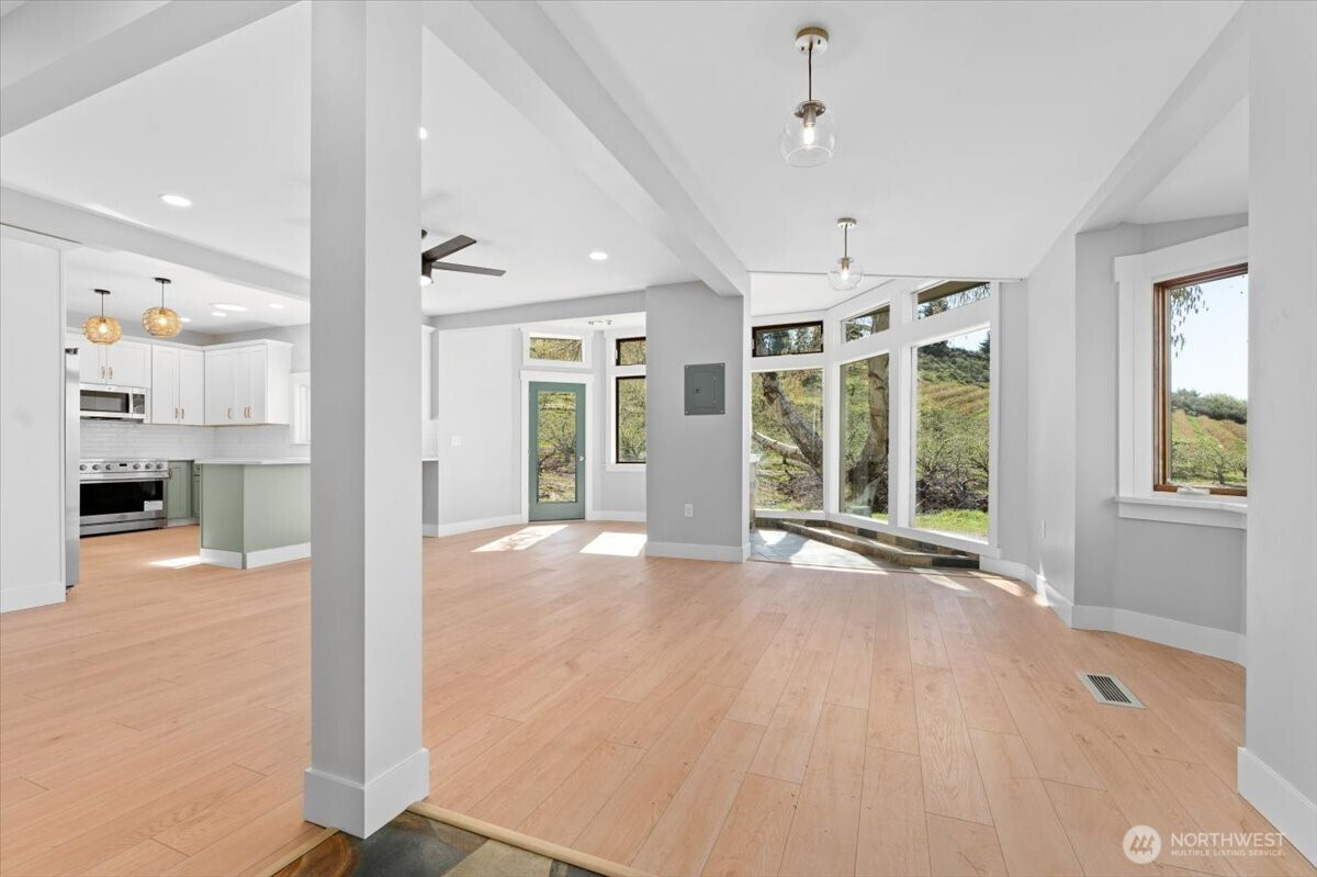 (650)533-3259Set in the scenic landscape of the Lake Chelan Valley, this updated modern farmhouse on over four acres offers a rare blend of comfort, space, and possibility. Formerly a small-scale apple and blueberry farm, the reimagined property now lends itself more naturally to hobby use and relaxed country retreat. The home has been recently renovated with a light, clean aesthetic, including a spacious new kitchen, updated bathrooms, new flooring, and fresh interior finishes. The open floor plan provides expansive views of the surrounding mountains and nearby Wapato Lake, along with a charming creek and storybook decorative waterwheel. Thoughtful recent improvements enhance the versatility of the land. Former orchard rows have been selectively cleared, revealing generous usable outdoor space and expanding scenic vistas. A mature blueberry patch remains, along with ample level ground for gardening or recreation. Several outbuildings add flexibility: a detached casita with a spacious guest bedroom and full bath (not an ADU), a multi-space shop/garage with substantial storage for boat/RV, a refrigerated berry room, and a small creek-side pumphouse. Additional adjacent parcels are also available for sale, offering the option to expand or create a multilot estate. Overall, the property provides a rare opportunity for those seeking privacy, views, and a quieter pace within reach of the Lake Chelan area.
