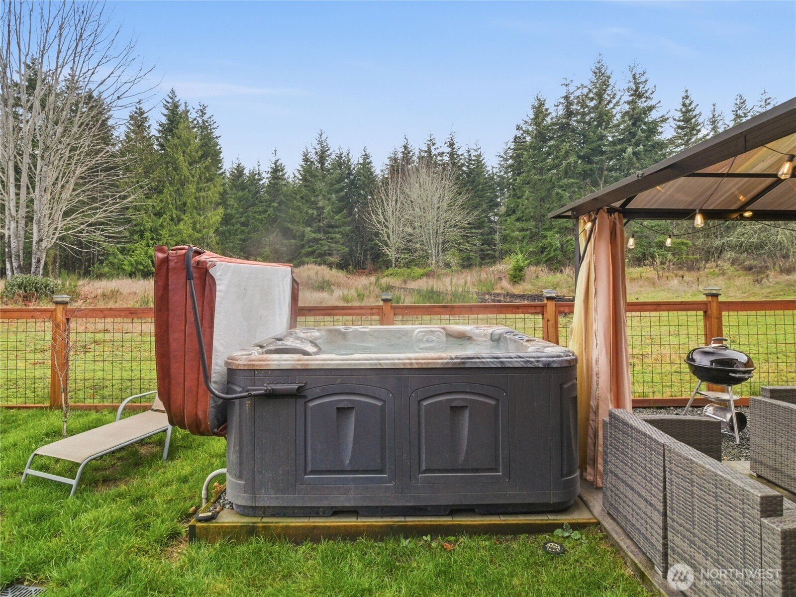 (650)533-3259This one's a gem! Located in the Reserve at Valley Creek neighborhood, this fully move-in-ready home feels private and fresh. Just minutes from downtown Port Angeles, Coast Guard Base, shopping and schools, this home is ideally located for convenience and PNW life. TONS of UPGRADES! Built in 2023 and Better-Than-New with many updates including: custom kitchen backsplash and new coffee-nook, cozy fireplace and a private backyard oasis with covered patio, hot tub, fire-table and new fencing providing serene views of wildlife and forestland. Step inside and enjoy warm-tone vinyl plank flooring, open floor plan, beautiful large kitchen with quartz countertops and walk in pantry. Upstairs enjoy 4 spacious bedrooms including a primary suite with views of the mountains through the trees. Efficient heat/AC with ductless heatpump. Spacious 2-car garage is finished/painted and there is lots of parking room in the driveway. Located on a quiet cul-de-sac, and walking distance to hiking and running trails, Olympic National Park, and a short drive to the beach, boating and fishing. Seller willing to sell fully furnished. Great rental income opportunity. VA Assumable loan opportunity!