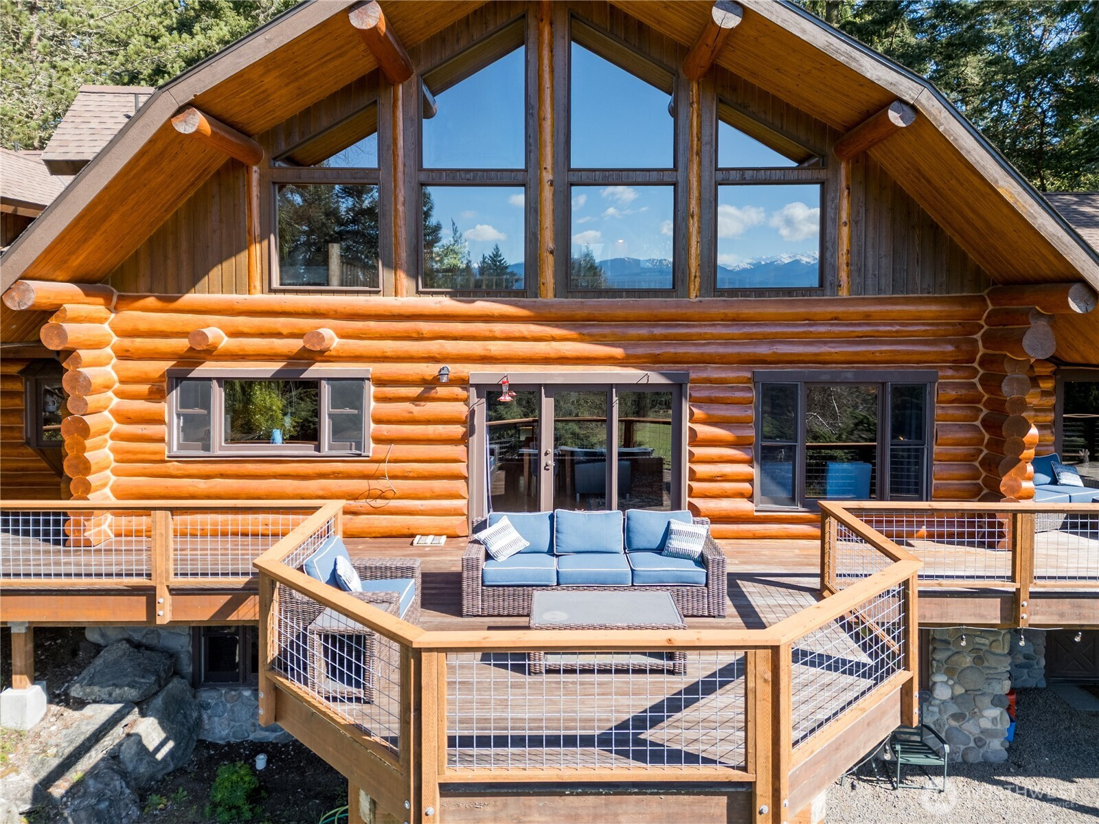 (650)533-3259PNW dream property with gorgeous multi-generational mountain view log home on 5 AC located in Sequim's "blue hole." Recently remodeled log home combines modern luxury & quality with unmatched natural beauty. Two brand new kitchens highlight the exquisite remake of this classic PNW home. Main level boasts breathtaking view of your own pasture, forest & the Olympic Mountains. Large living room area w/ vaulted ceilings, gorgeous logs & woodwork opens to a lovely deck made of Brazilian Ipe wood. Kitchen w/large quartz island, ceramic sink, slate-like porcelain floor & new S/S appliances. New woodstove w/ river rock surround adds to the beauty and warmth. The primary suite features a large sitting area which opens to a private covered deck. The primary bath is an absolute dream with porcelain tile floors & shower, cast iron claw foot tub & gorgeous counters. Office & laundry on main level. Upstairs has loft area, 2 BRs & full bath. Lower level is a newly-remodeled, fully-equipped MIL apartment w mountain view. Quartz kitchen counters & bright tile backsplash w/ all new appliances & custom cabinets, 2 BRs, a large game room & plenty of storage. Attached 2 car garage & 1522 SF RV garage. Brilliantly constructed chicken coop w/ fenced & covered free range area. Napolean BBQ, sauna & gym equipment all negotiable. One of the best locations in Sequim just minutes from town, yet at the end of a private road, mountain views and ample southern exposure. This is a truly special property.