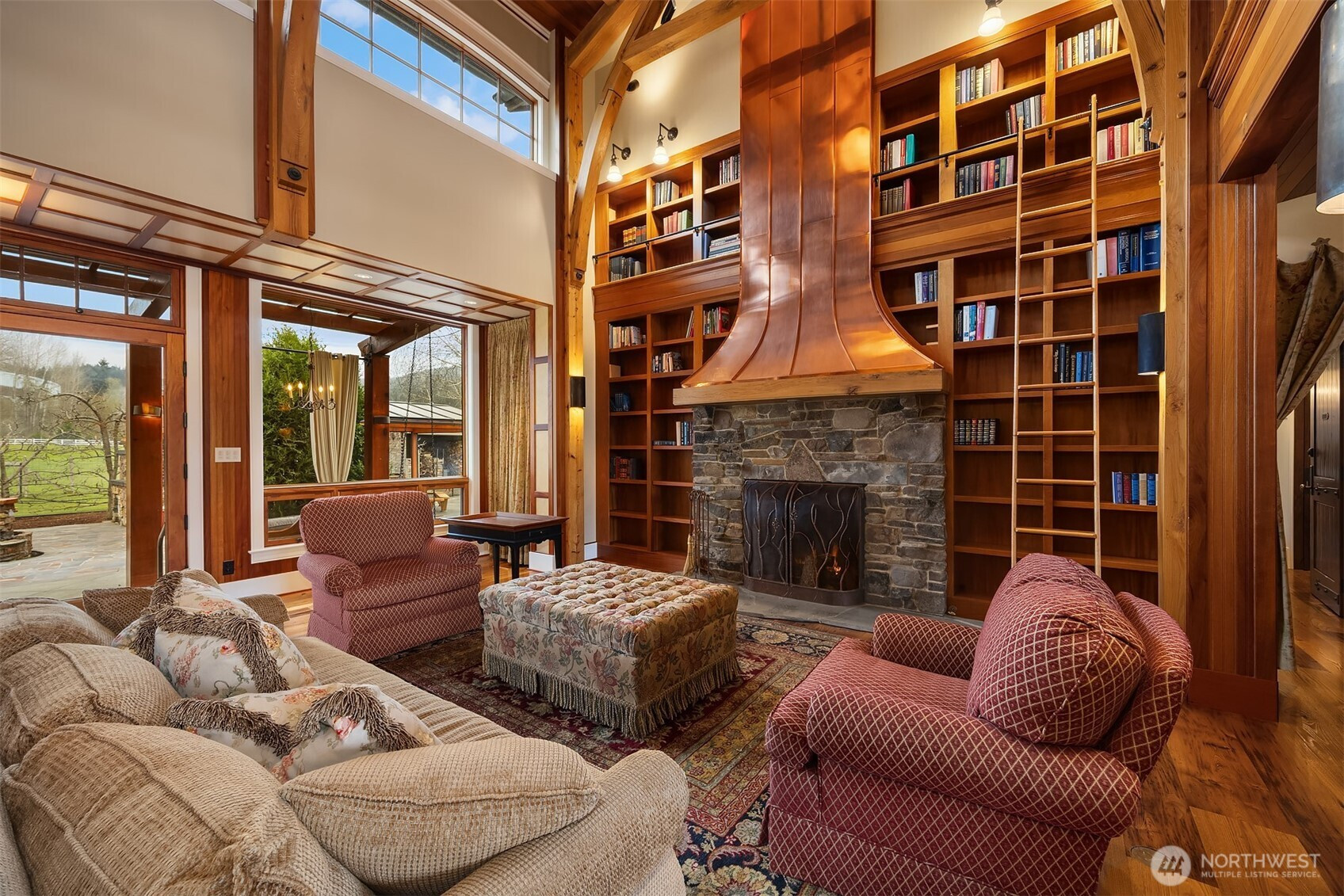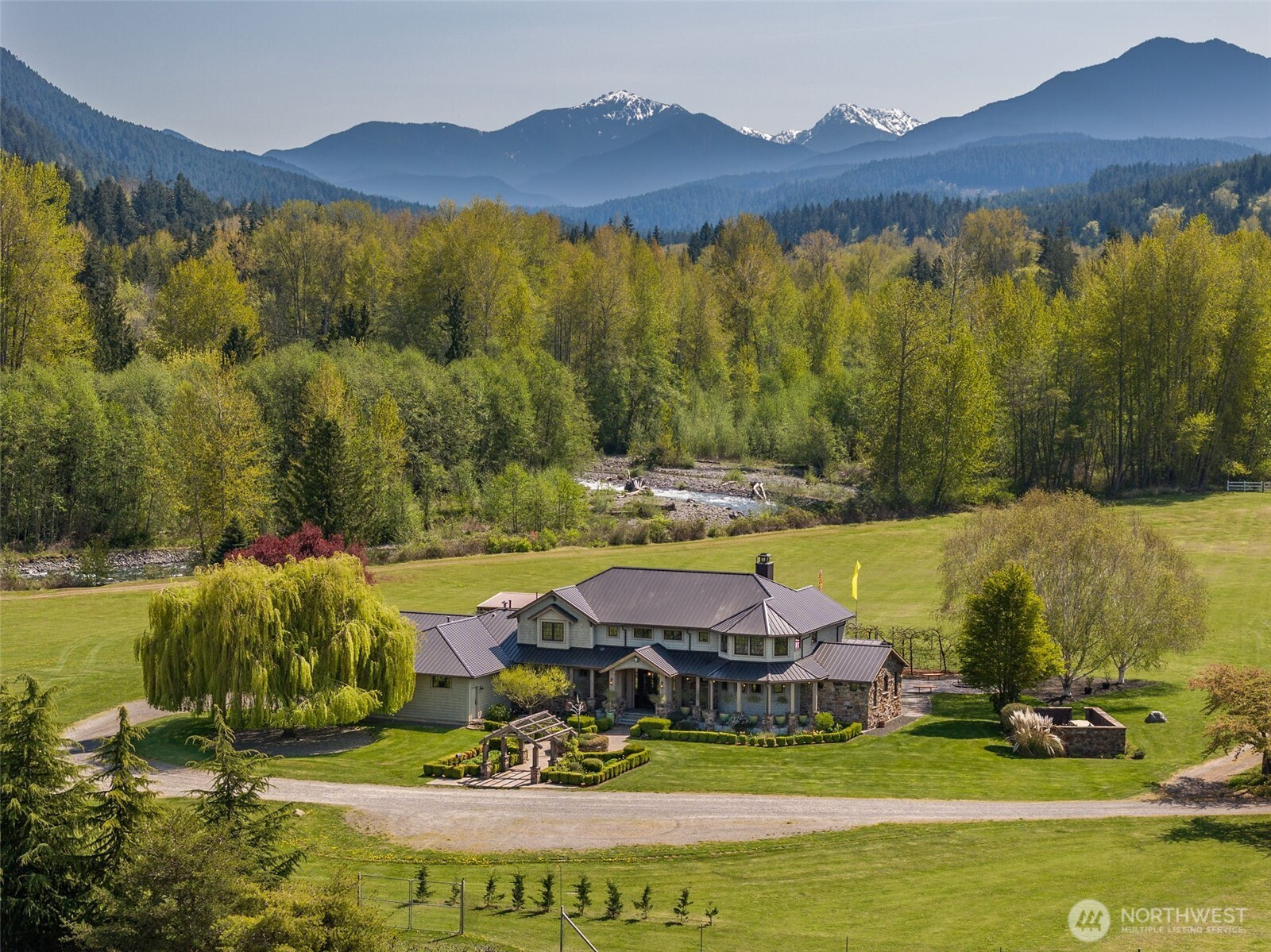 (650)533-3259An exceptional opportunity to own a luxury boutique farm estate on 18.75 acres with private Dungeness River frontage. Custom built from the ground up, this 5,500 sqft English manor-inspired residence showcases impeccable attention to detail, blending old-world craftsmanship with modern luxury, from antique chestnut floors and extensive mahogany millwork to soaring timber-framed ceilings and a statement copper fireplace. The main level features a stunning primary suite with spa-like bath, expansive walk-in closet, while a private MIL suite offers a full kitchen, living space, bedroom, and bath. Upstairs includes two additional bedrooms with Jack and Jill bath, plus an office and media room that could easily function as additional bedrooms. A chef’s kitchen anchored by an Aga stove, Sub-Zero appliances complete the home. The 5,000 sqft barn includes a commercial kitchen, 3,000 sqft of additional hangar storage ideal for equipment, RV, and/or helicopter. The grounds are equally impressive, featuring orchards, greenhouses, a covered back porch, fire pit, pizza oven w/ rotisserie, dog run, and beautifully curated English gardens with a sweeping willow tree. Enjoy fly fishing along the river and a yurt tucked into nature. Endless potential as a working farm, boutique retreat, event venue, or a truly romantic private estate at the base of the Olympic Mountains. A rare opportunity in one of the most unique settings, framed by mountains and water, and just a ferry ride from Seattle.