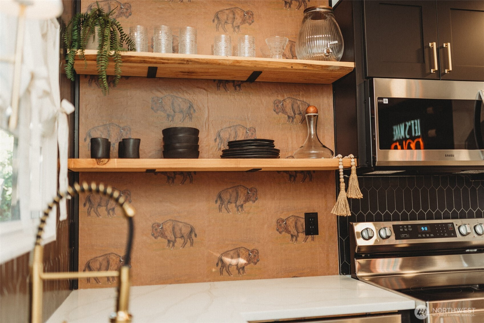 (650)533-3259A Western sanctuary infused with the spirit of the land and fierce vibes - rustic, soulful, and undeniably timeless. This is no Wild West - everything is designed with luxury and comfort; planked floors, ship lapped cedar accent wall, quartz counters, vessel sinks, stainless appliances, craftsman trim, custom wallpaper, live edge shelves, gold fixtures, too many details to list. The layout creates a larger feeling, with decks on both sides, living room that flows to the kitchen, coffee/wine bar, bathroom, and bedroom. New roof, paint, insulation, plumbing, electrical, and sewer line too! Experience sunsets and open skies over the Straits, laughter across the street at the school, and a simple lifestyle inspired by the beauty of the West.