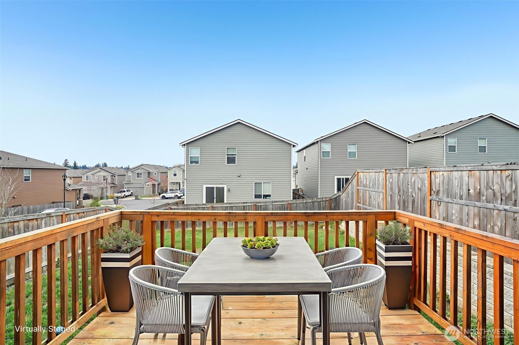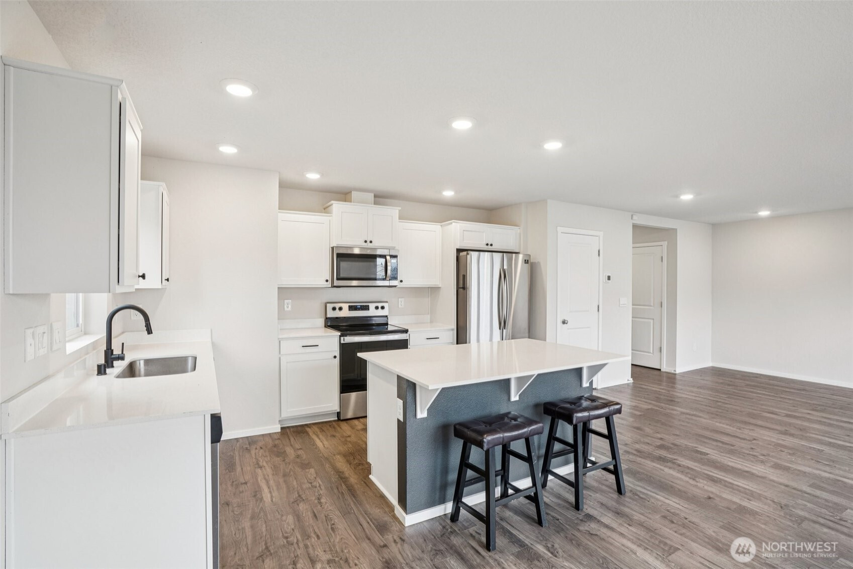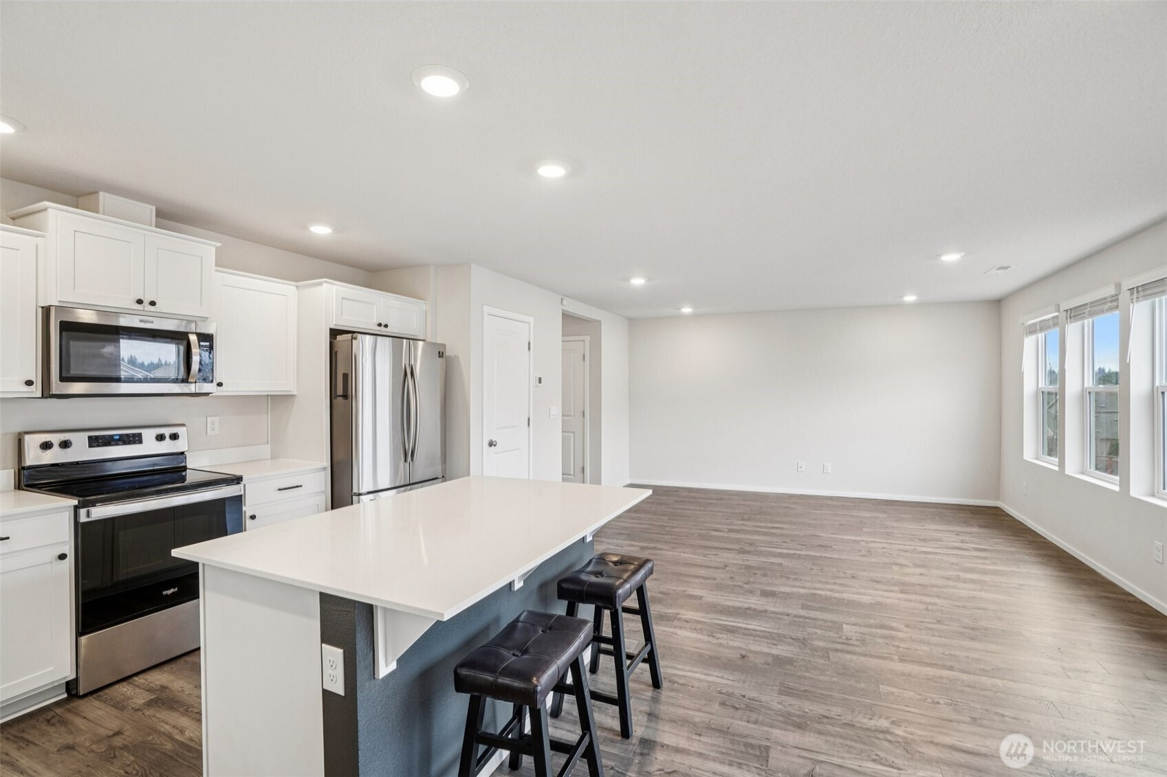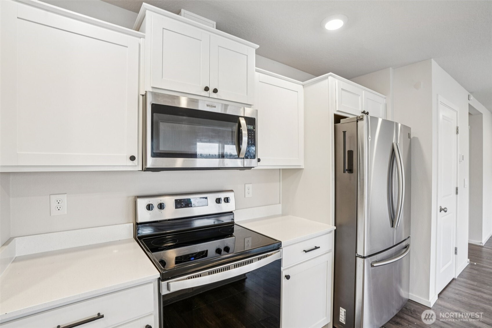 (650)533-3259Welcoming covered front porch with keyless entry leads into a bright great-room connecting the family room, dining area, and island kitchen. Family room with recessed lighting, while the kitchen features stainless Whirlpool appliances, a Samsung refrigerator, quartz counters, lots of cabinetry, walk-in pantry, and an island/eat bar. Slider from dining area opens to the back deck. Upstairs, primary en-suite offers a walk-in closet, and quartz vanity and shower. 3 additional bedrooms, full bath, laundry room with Samsung washer and dryer complete the upper level. Main-level powder room adds convenience. Home includes mixed flooring throughout, a 2-car garage, and fully landscaped corner lot with sprinklers. Mortgage savings may be available.