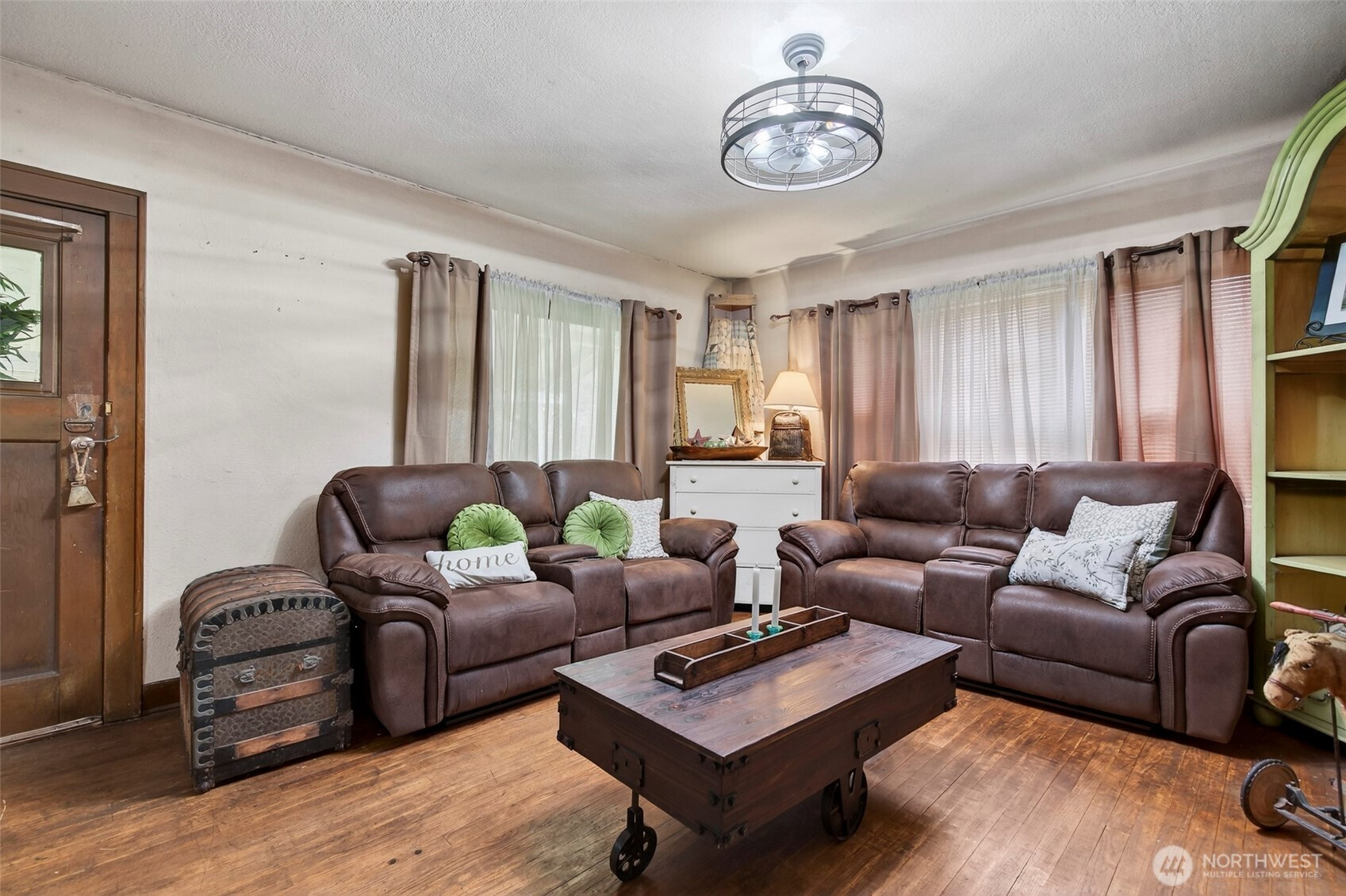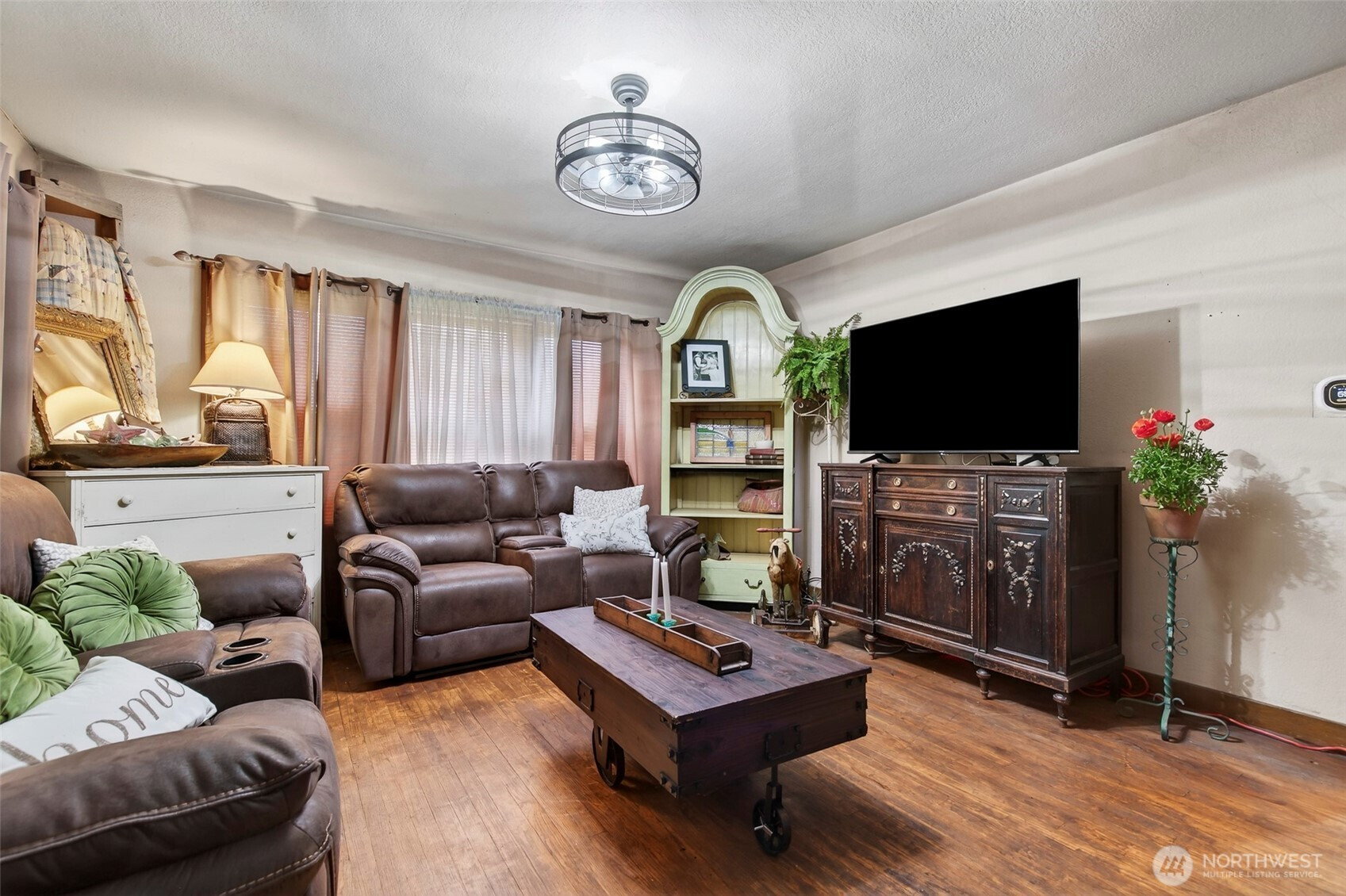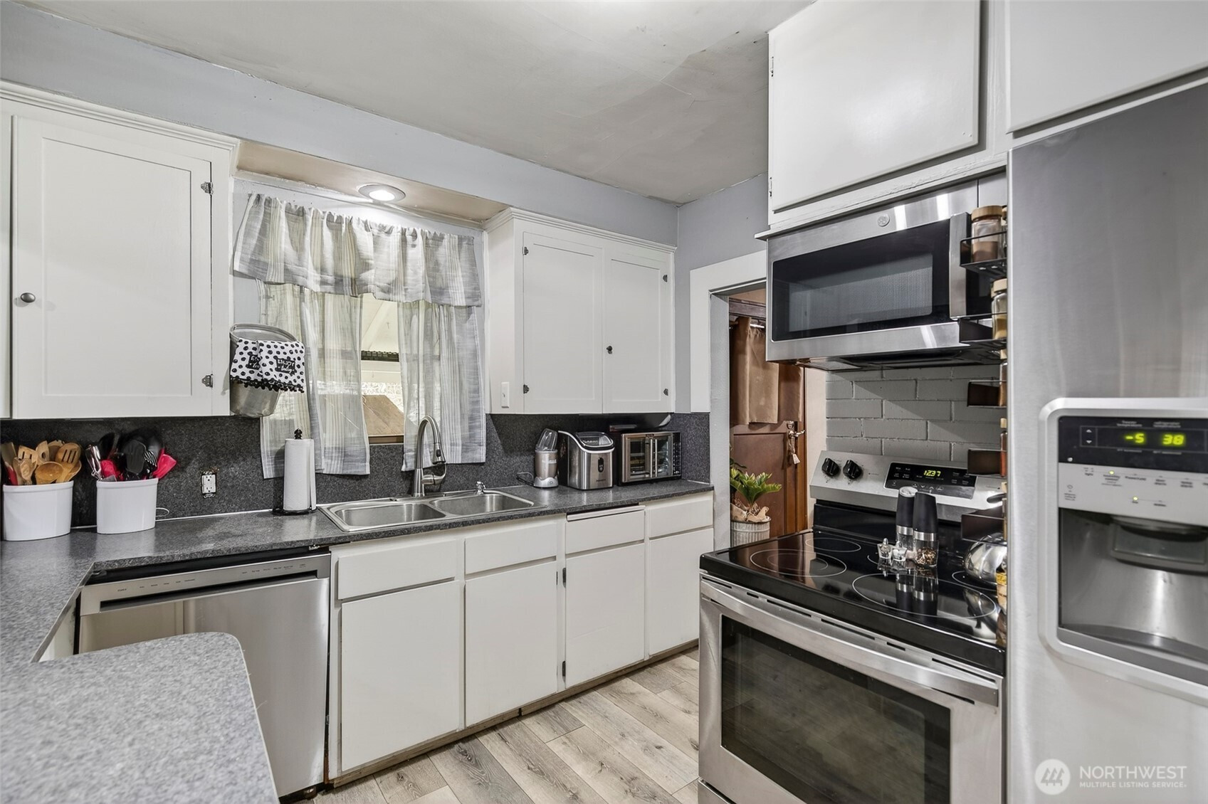 (650)533-3259This 100-year-old ranch-style home offers character, space, and practical updates. A large covered front porch welcomes you in and provides a great place to relax. Inside, you’ll find real hardwood floors, glass door knobs, and classic details throughout. The main level features a comfortable living room with window coverings, a dining area, and a functional kitchen with laminate countertops, stainless steel appliances, electric range, microwave, and LG dishwasher. Off the dining area is an additional bedroom and laundry space, along with a nearby family room that opens to the backyard through a sliding glass door, creating a flexible layout for everyday living. Upstairs includes two dormer-style bedrooms with hardwood flooring, blinds, and built-in closet spaces. The upper level also features a bathroom with a shower stall and a convenient coffee bar area. Major updates include a new roof and central heating and air conditioning system installed in 2025. The backyard offers space and versatility with multiple outbuildings, garden beds, fire pit area, and access from a rear road—ideal for adding a shop or additional entry
