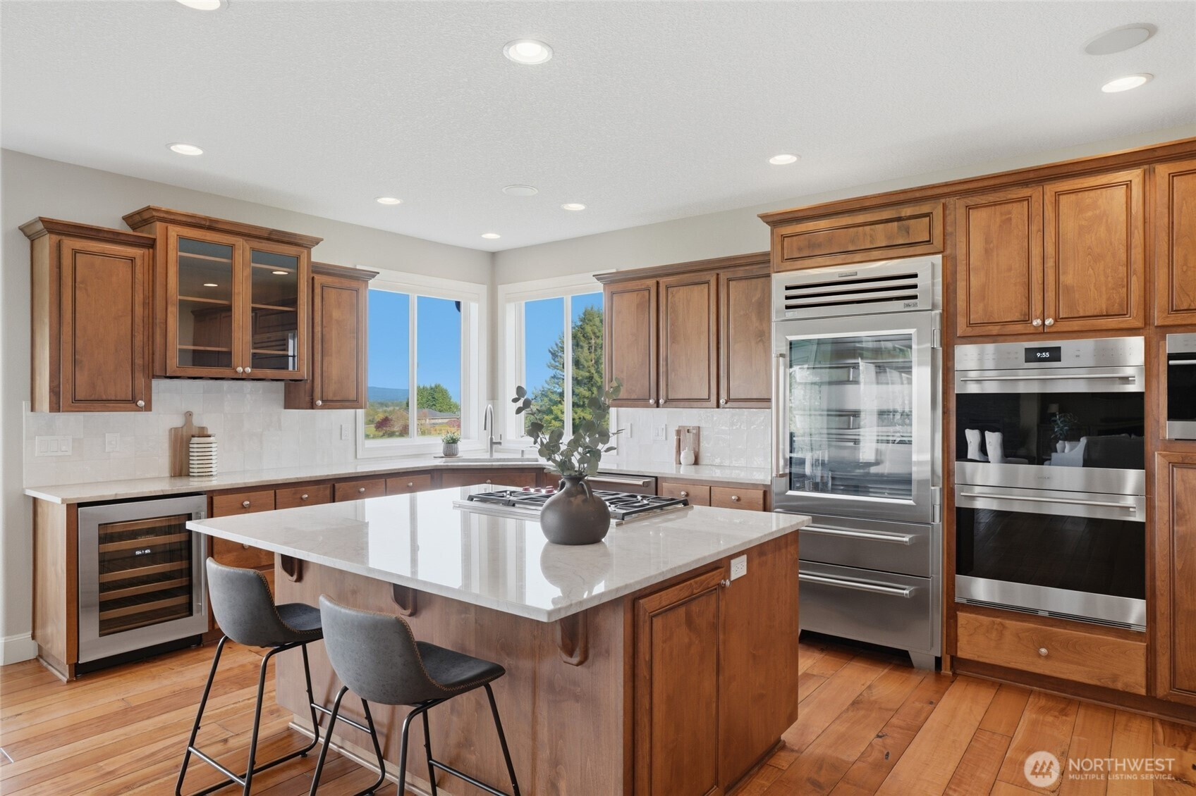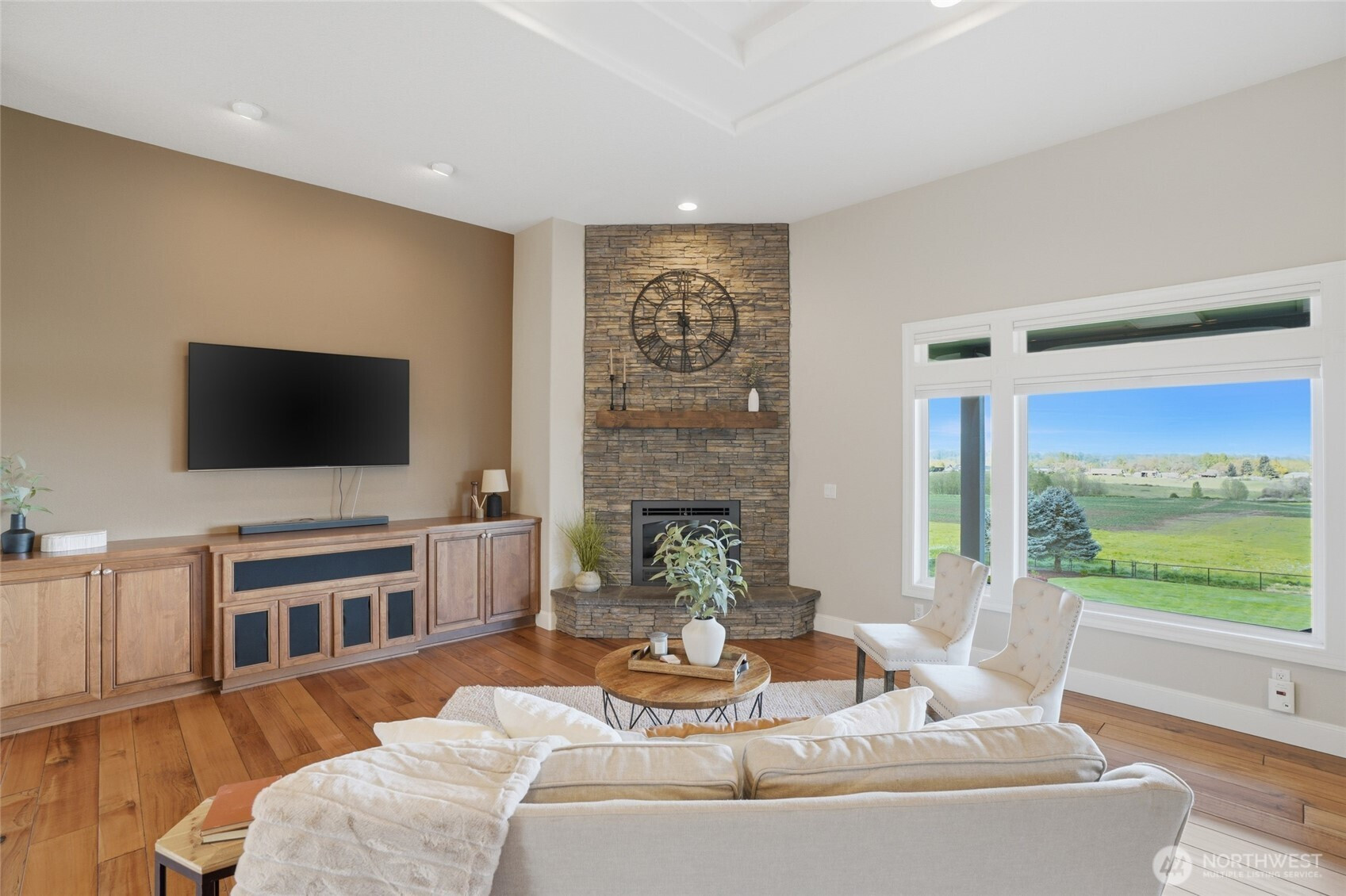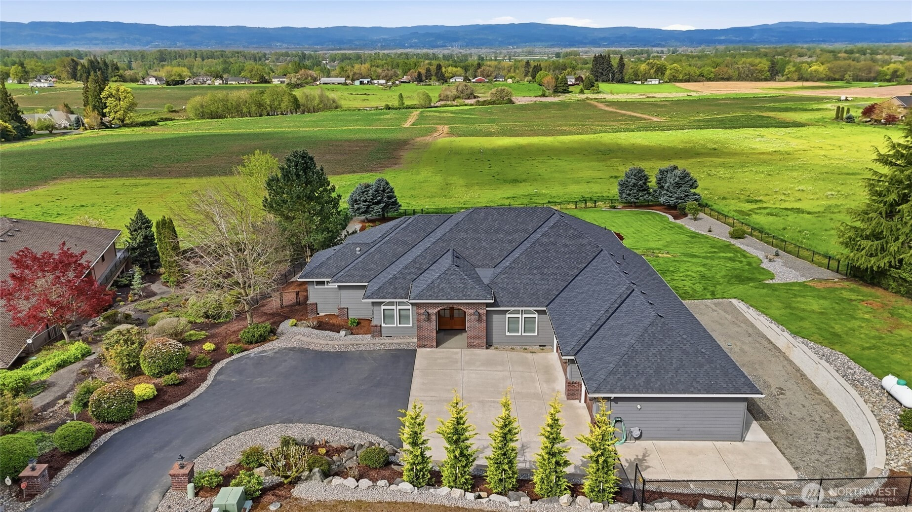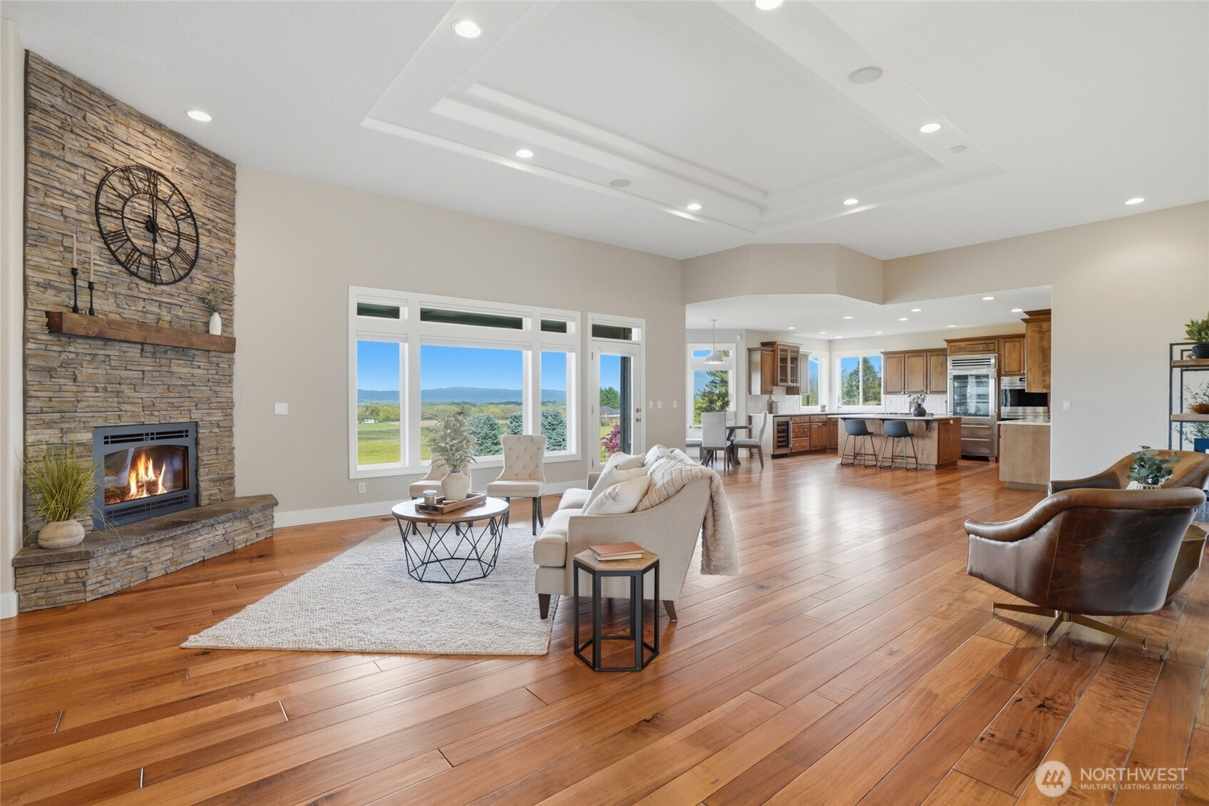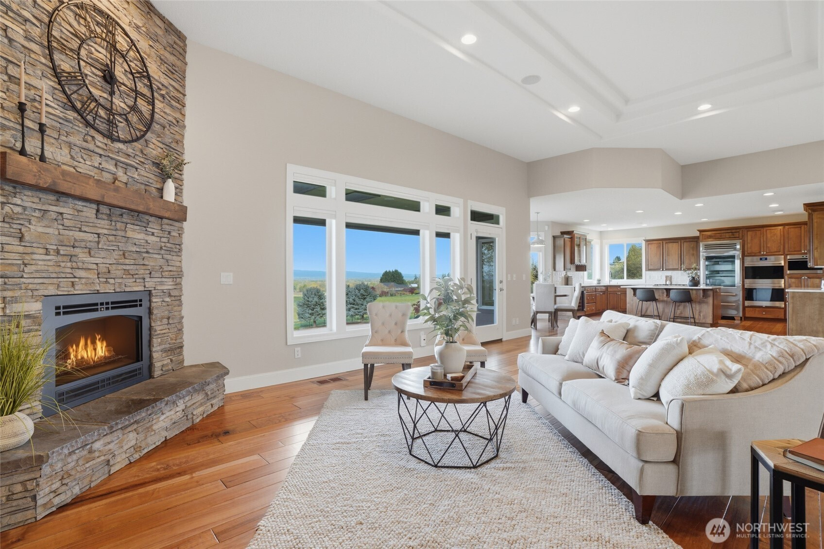 (650)533-3259Welcome to this rare custom-built luxury home in Ridgefield offering true one-level living on a private 1-acre estate with sweeping valley & Columbia River views. This thoughtfully designed property features 3 spacious bedrooms + an office space, hand scraped hardwood floors, soaring ceilings, and an open great room built for comfort & entertaining. The updated chef’s kitchen includes new Taj Mahal quartzite countertops, tile backsplash, custom cabinetry, new: stainless steel Subzero & Wolf appliances with double ovens, range top, down draft, dishwasher, refrigerator, microwave & wine fridge. A large island & walk-in pantry add function and style. The primary suite is a private retreat with large view windows, direct exterior access to the covered patio, walk-in closet, oversized shower, and bidet. Enjoy indoor-outdoor living with a covered patio and potential hot tub space! new fully fenced back and side yards, and professionally enhanced landscaping. Extensive improvements include 340’ French drain, 135’ retaining wall, additional excavation & drainage work. Major upgrades include a new Presidential roof, recently resurfaced road, upgraded garage doors, new front entry, flashed skylights, updated attic insulation, updated hardware, shades & shutters throughout. Oversized garage with EV hookup & newer water heater. Sprinkler system, and meticulous maintenance complete this move-in ready luxury home with views for days. Ask your Realtor for the full updates list!