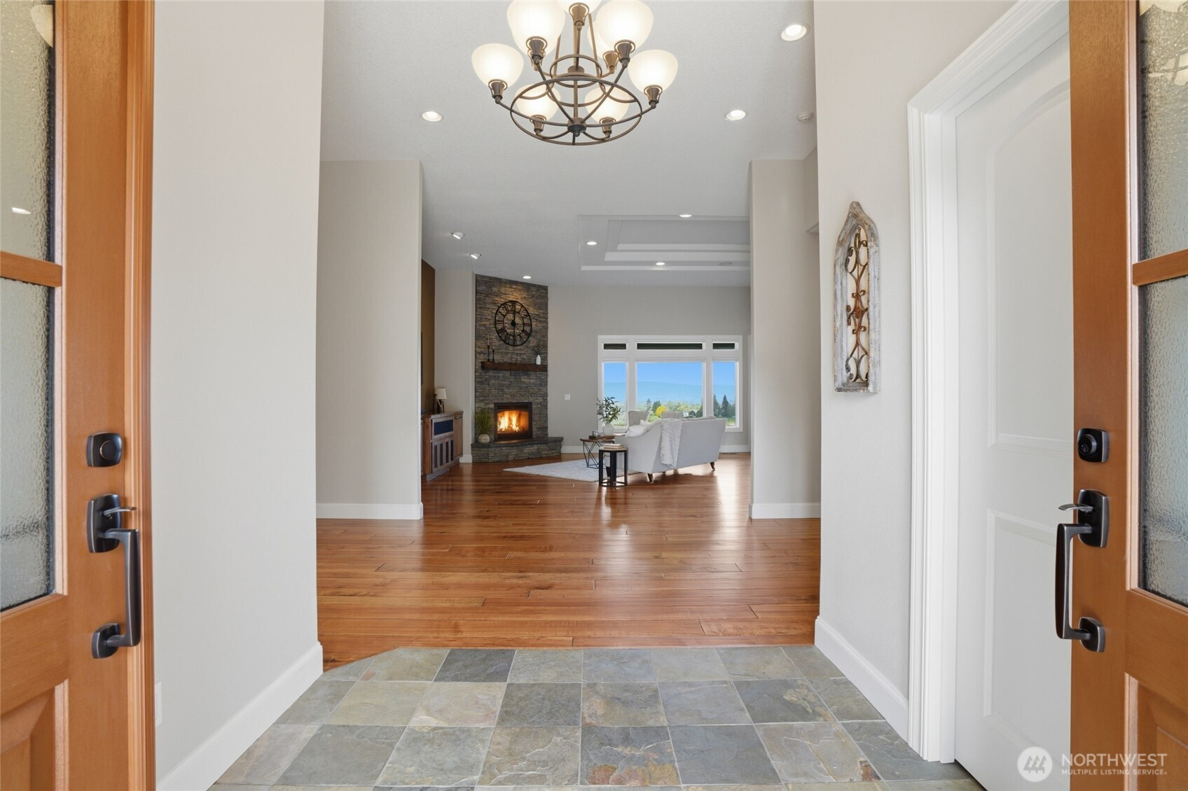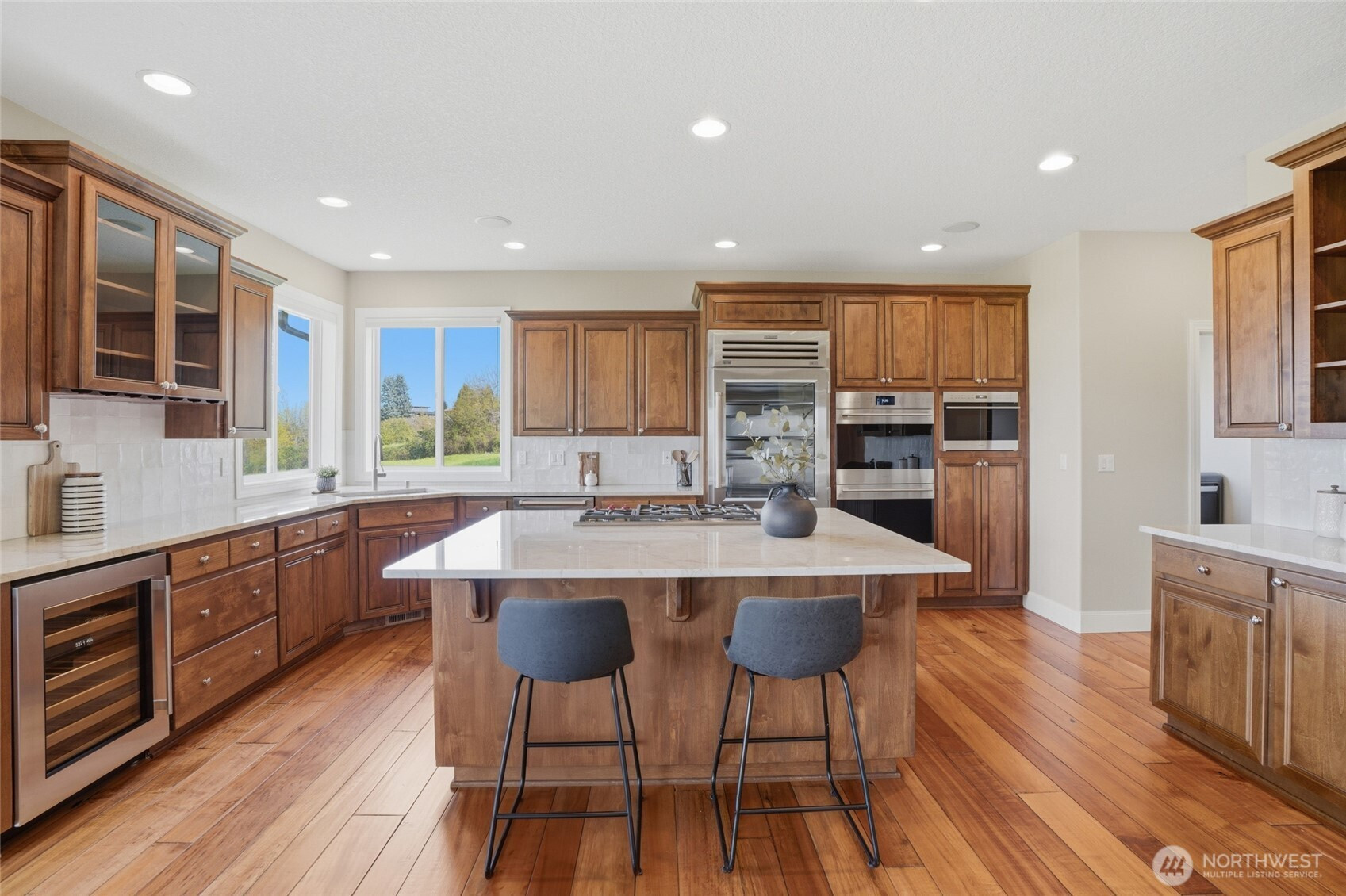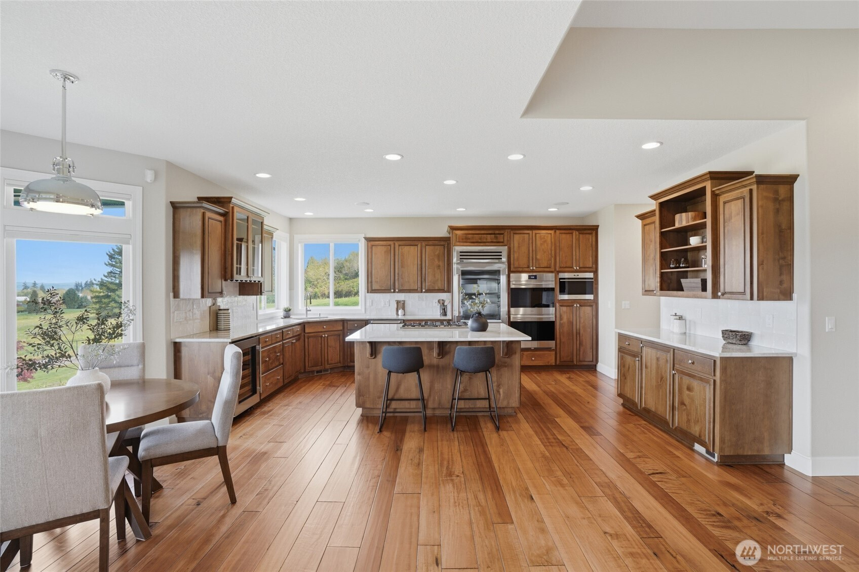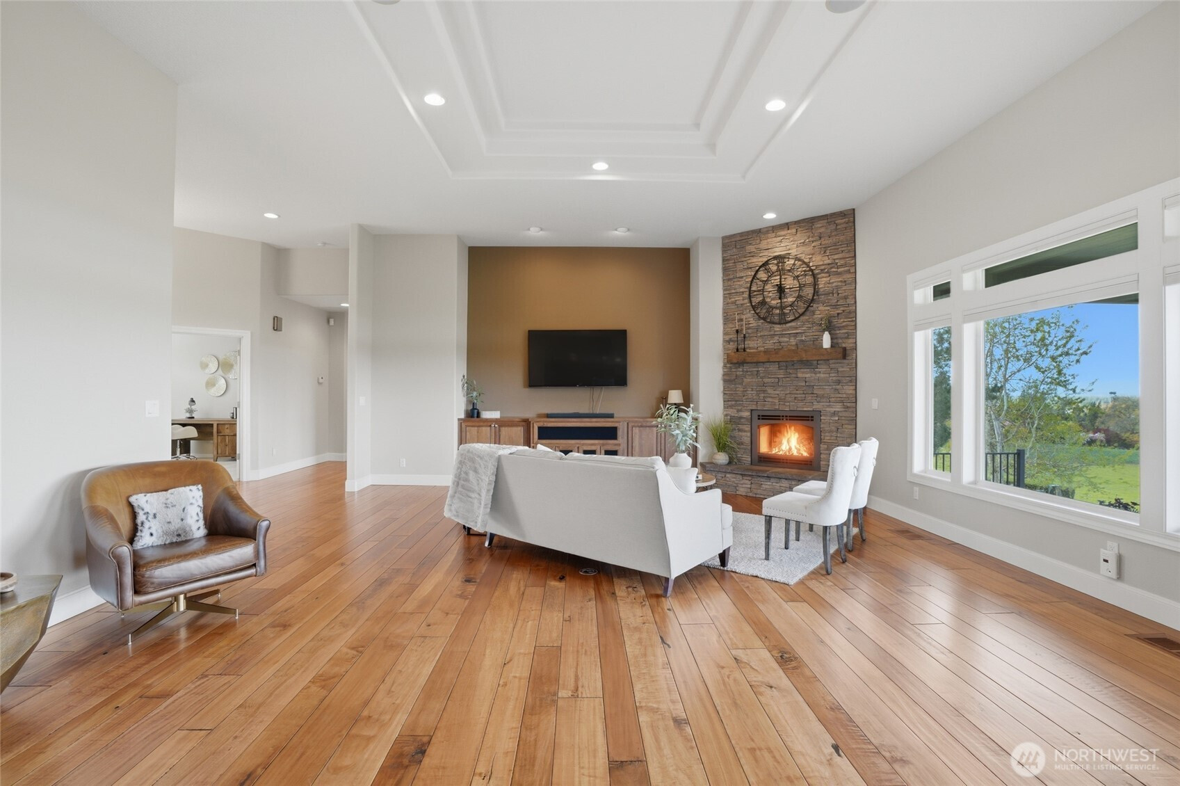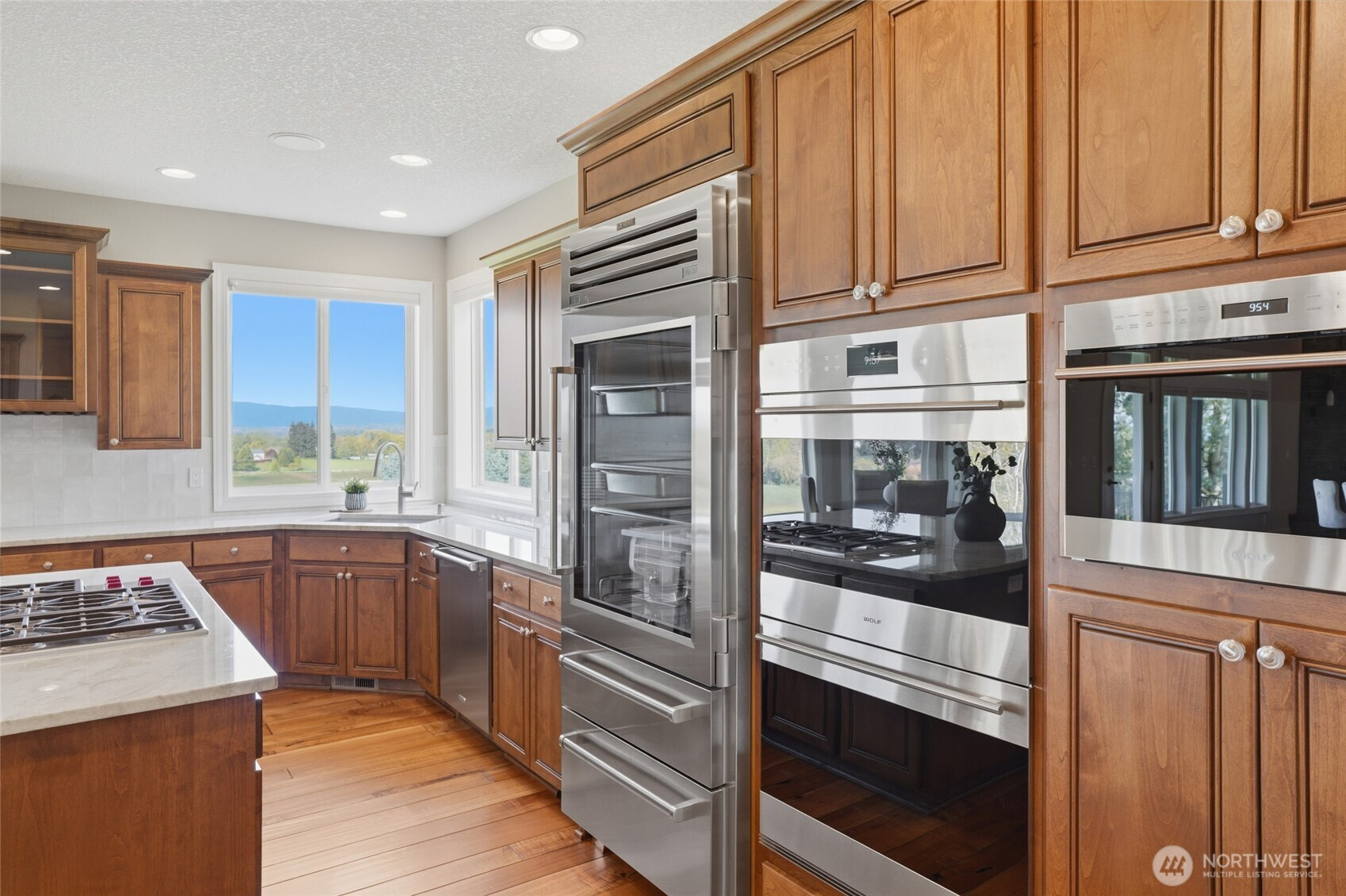 (650)533-3259Welcome to this rare custom-built luxury home in Ridgefield offering true one-level living on a private 1-acre estate with sweeping valley & Columbia River views. This thoughtfully designed property features 3 spacious bedrooms + an office space, hand scraped hardwood floors, soaring ceilings, and an open great room built for comfort & entertaining. The updated chef’s kitchen includes new Taj Mahal quartzite countertops, tile backsplash, custom cabinetry, new: stainless steel Subzero & Wolf appliances with double ovens, range top, down draft, dishwasher, refrigerator, microwave & wine fridge. A large island & walk-in pantry add function and style. The primary suite is a private retreat with large view windows, direct exterior access to the covered patio, walk-in closet, oversized shower, and bidet. Enjoy indoor-outdoor living with a covered patio and potential hot tub space! new fully fenced back and side yards, and professionally enhanced landscaping. Extensive improvements include 340’ French drain, 135’ retaining wall, additional excavation & drainage work. Major upgrades include a new Presidential roof, recently resurfaced road, upgraded garage doors, new front entry, flashed skylights, updated attic insulation, updated hardware, shades & shutters throughout. Oversized garage with EV hookup & newer water heater. Sprinkler system, and meticulous maintenance complete this move-in ready luxury home with views for days. Ask your Realtor for the full updates list!