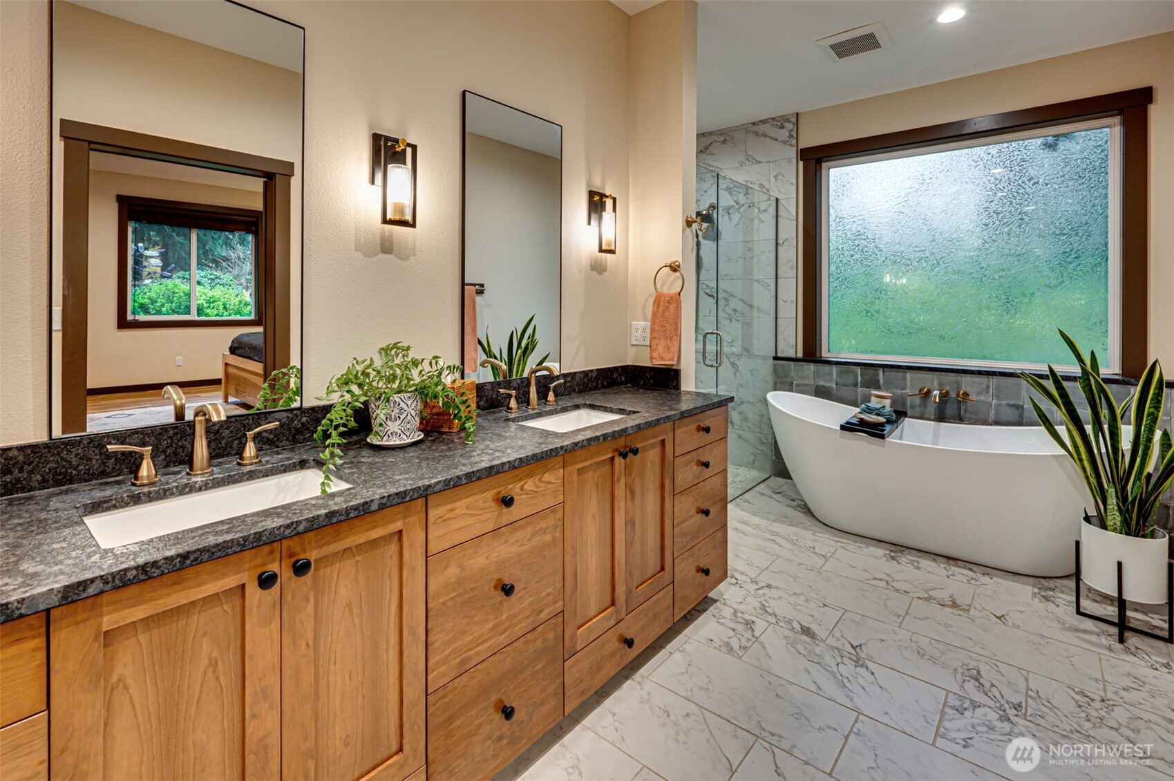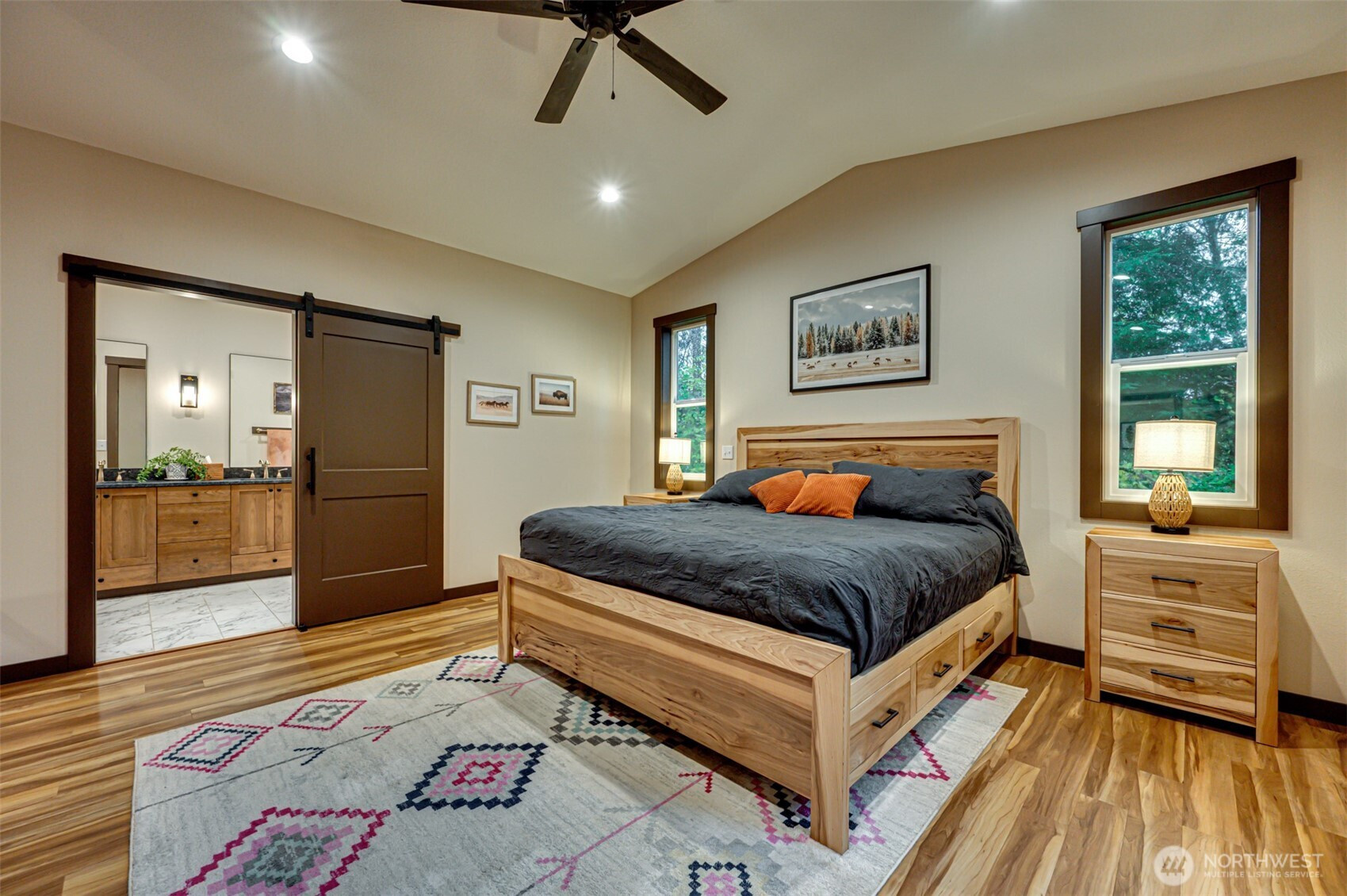 (650)533-3259Welcome home! Beautifully maintained private acreage property with an open floor plan, LVP flooring, granite counters, and custom cabinets. The kitchen features stainless Frigidaire double ovens, convection microwave, and a farmhouse sink. Huge main-floor primary suite addition completed in 2023 with vaulted ceilings, dual-sided fireplace, heated tile floors, freestanding tub, and curbless shower. Upstairs offers four more bedrooms, including a second ensuite. Outside, enjoy the oversized covered patio, covered BBQ area, organic deer-proof gardens, 3-car garage, private well, and generator plug. Move-in ready!