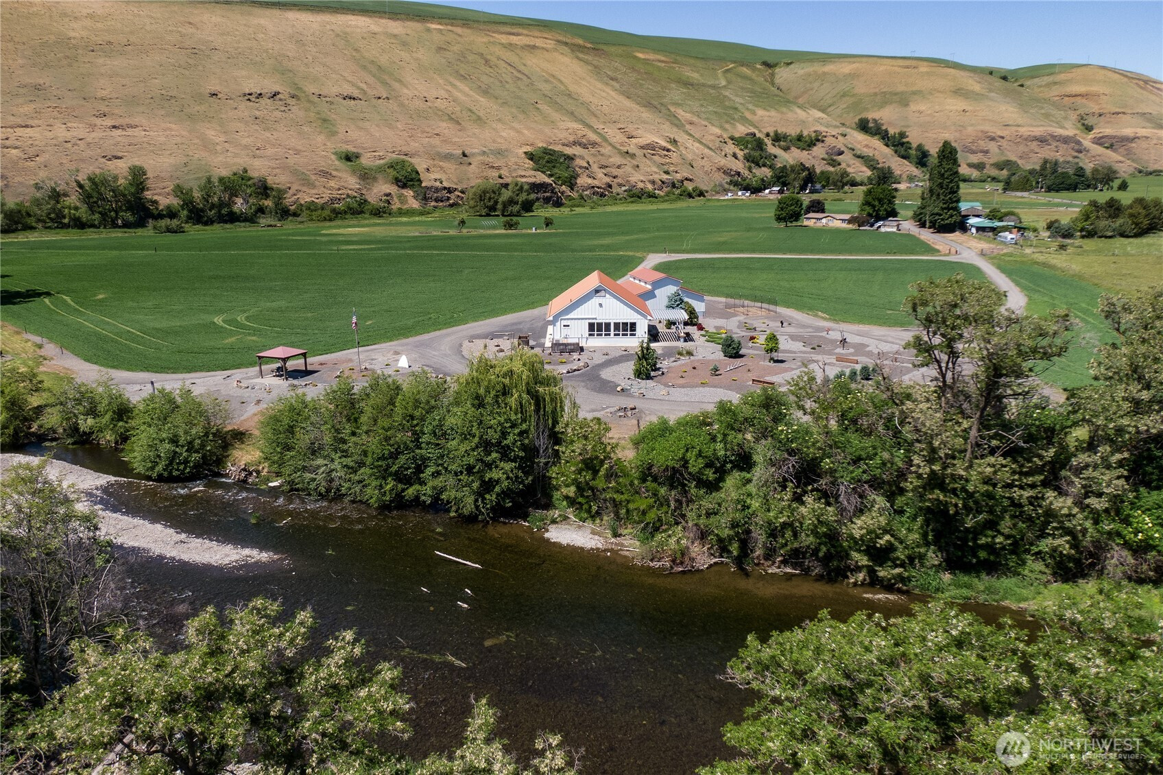 (650)533-3259A River Runs Through It! Unique 20-acre retreat with approx. 1,100 feet of accessible Touchet River frontage—perfect for fly fishing rainbow and cutthroat trout. This one-of-a-kind home features an open floor plan, vaulted ceilings, rich wood finishes, sleeping loft, and glass doors opening to a covered patio. Enjoy a covered gazebo overlooking the river, beach access, horseshoe pit, and a 3-bay shop for hobbies. The land offers privacy and room for livestock, equestrian use, or hunting. Ideal as a primary or secondary home. All this, just 30 minutes from the revitalized Bluewood Ski Area. Live the lifestyle you've dreamed of—year-round recreation and peace in nature.