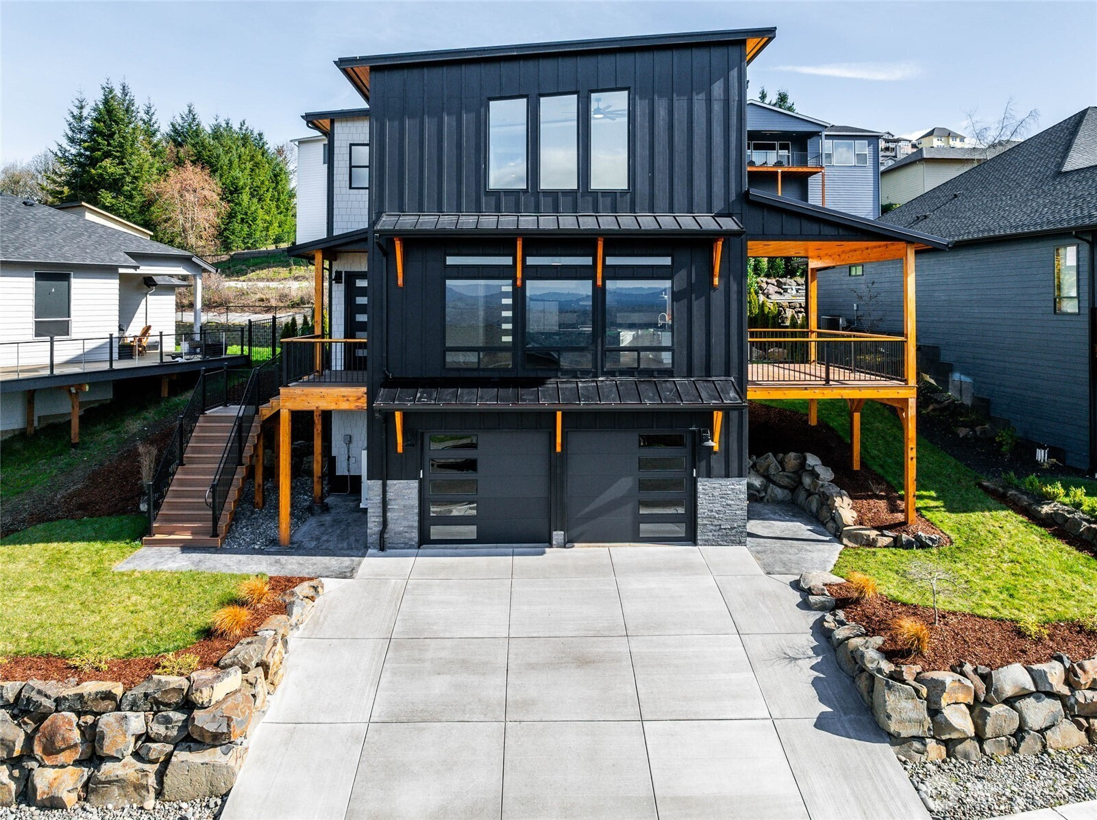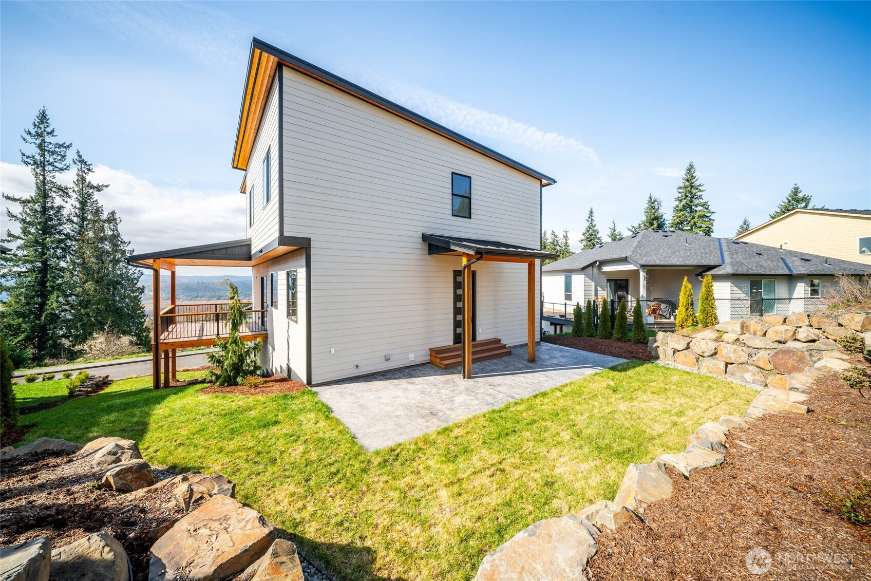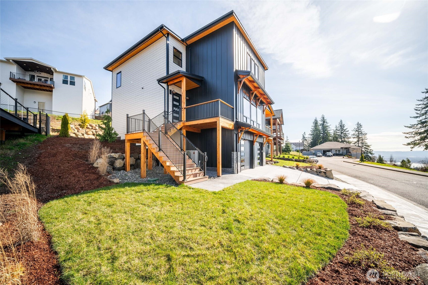 (650)533-3259Experience modern luxury with breathtaking Columbia River views in the charming and growing community of Kalama, WA—just 35 minutes to PDX. This beautifully crafted new home showcases bold, hand-selected finishes and thoughtful design throughout. The stunning kitchen is the centerpiece of the home, featuring a gas range, dramatic granite countertops and full-height backsplash, oversized center island, and an impressive walk-in pantry. Open-concept living and dining areas with high ceilings flow seamlessly to a covered composite deck, creating the perfect space for entertaining while taking in the river views. The home offers 3 bedrooms up plus a versatile 4th bedroom or office on the main level. The primary suite captures the best views and includes a walk-in closet and a luxurious floor-to-ceiling tiled walk-in shower. A generous nearby laundry room adds everyday convenience. Outside, enjoy professionally designed landscaping with boulder retaining walls, a stamped concrete covered patio, and low-maintenance composite decking built for longevity. The extra-deep three-car garage provides ample room for vehicles plus workshop or storage space. Located minutes from Kalama’s beautiful waterfront park, marina, restaurants, and shopping, this home blends upscale living with small-town charm!