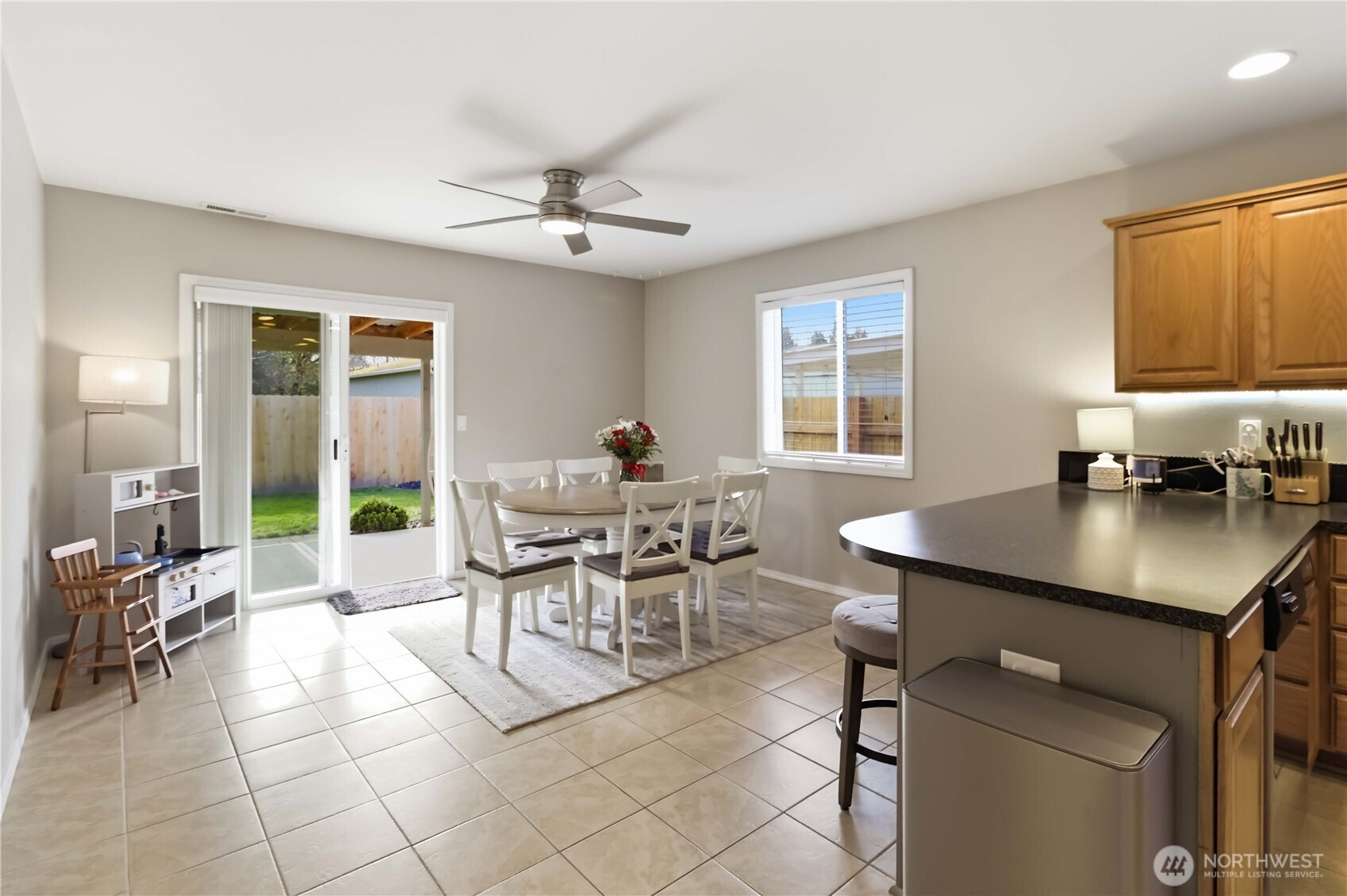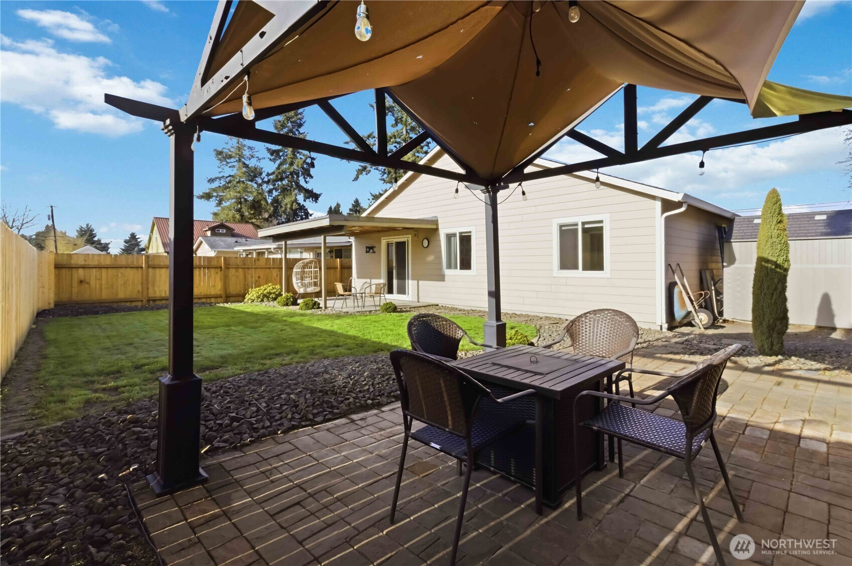 (650)533-3259Welcome home to this beautifully maintained 3-bedroom, 2-bath single-level residence offering 1,280 square feet of comfortable living space. From the inviting curb appeal and spacious driveway with RV parking to the fully fenced backyard, this property blends functionality with everyday charm. Inside, you’ll find a light-filled living room with neutral tones, updated flooring, and seamless flow into the dining area and kitchen. The kitchen features warm wood cabinetry, ample counter space, and a convenient breakfast bar—perfect for gatherings and daily living. A heat pump with A/C provides year-round comfort. The primary suite offers a private bath, while two additional bedrooms provide flexibility for guests, hobbies, or a home office. Step outside to enjoy the covered back patio overlooking the fenced yard—ideal for outdoor dining, gardening, or play. With thoughtful updates, practical amenities, and space to spread out both inside and out, this home is move-in ready and waiting for its next chapter. Conveniently located near local amenities, schools, and parks. Move-in ready and waiting for you!