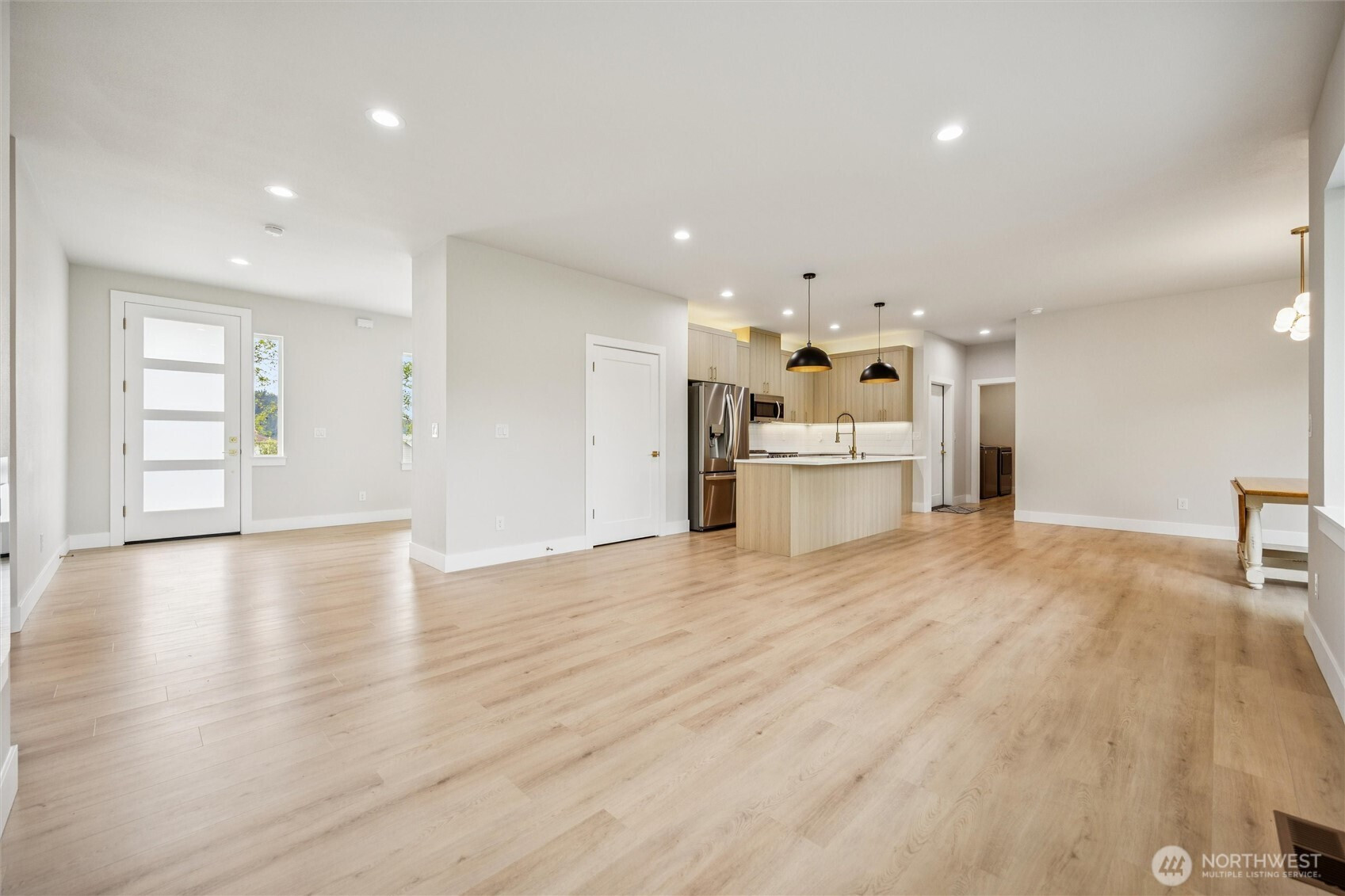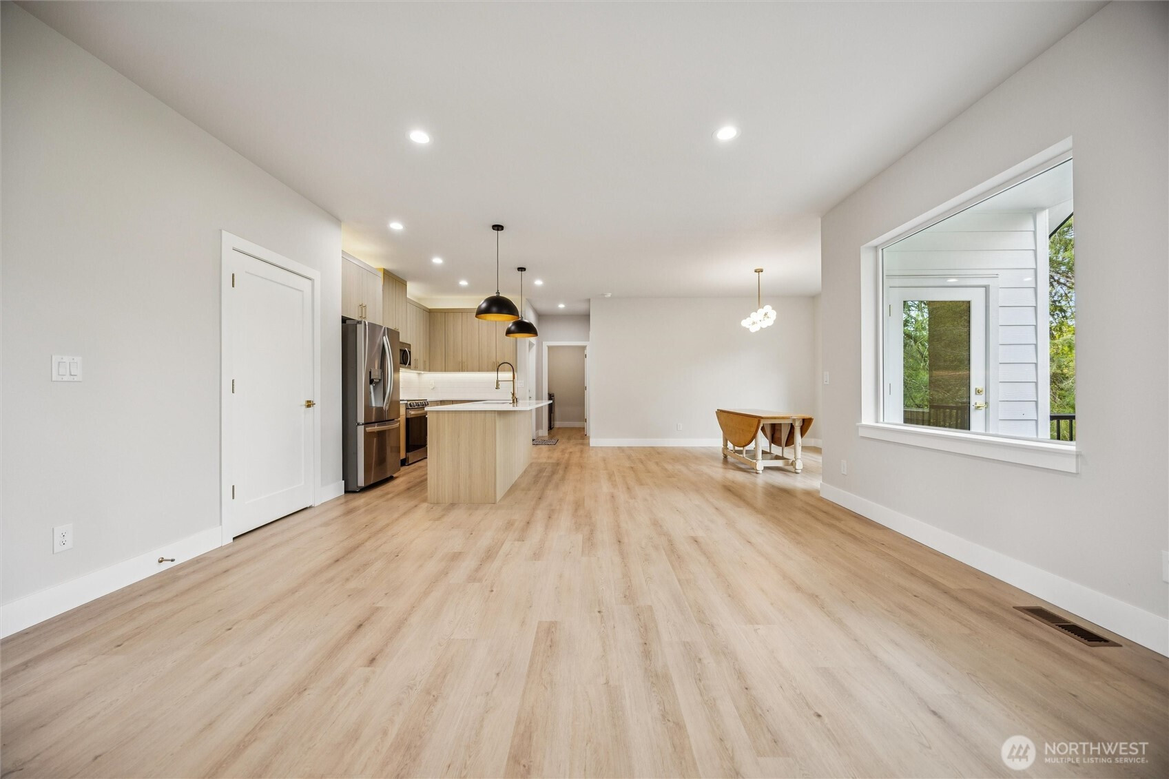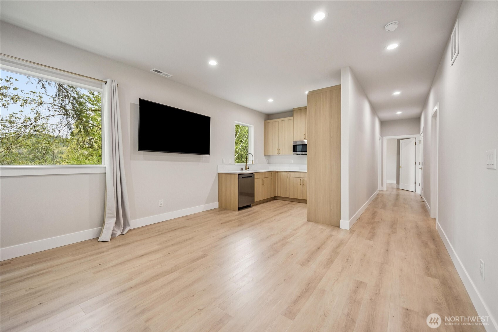 (650)533-3259Discover the perfect blend of modern design and peaceful surroundings in this stunning new construction home on a private .55-acre lot in a quiet, established neighborhood. The main level offers 4 bedrooms (or 3 plus a den/office), 2 bathrooms, and a bright, open-concept living space filled with natural light. The primary suite features a tiled walk-in shower, spacious walk-in closet, and serene ambiance. The kitchen is beautifully appointed with quartz countertops, SS appliances, a large island, and stylish finishes. The lower level offers incredible flexibility with an ADU-style or in-law suite, complete with 2 bedrooms, 1 bathroom, a full kitchen, washer/dryer hookups, and a generous living and dining area with its own private entrance—ideal for multigenerational living! Enjoy year-round outdoor living with two covered decks overlooking tranquil greenbelt views—perfect for relaxing or entertaining. An oversized 3-car garage provides ample storage and workspace. This home offers the rare combination of new construction in a mature setting.