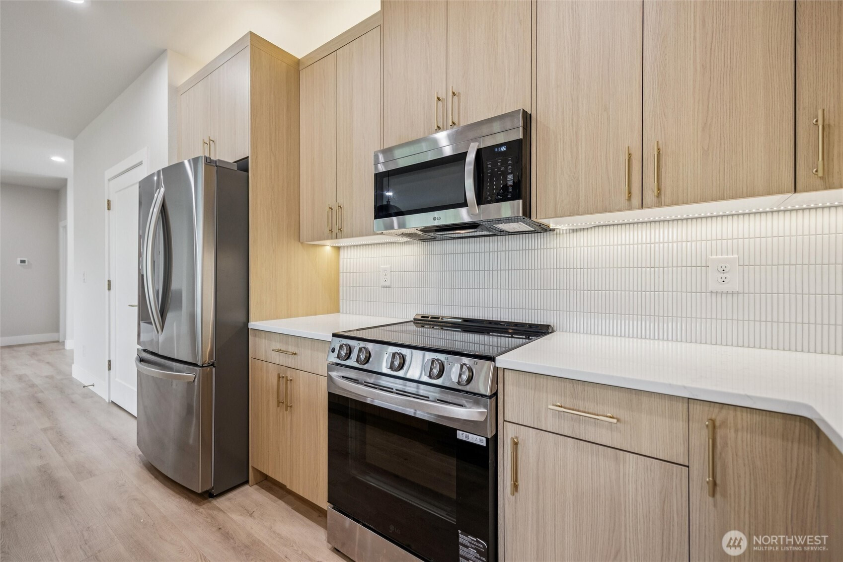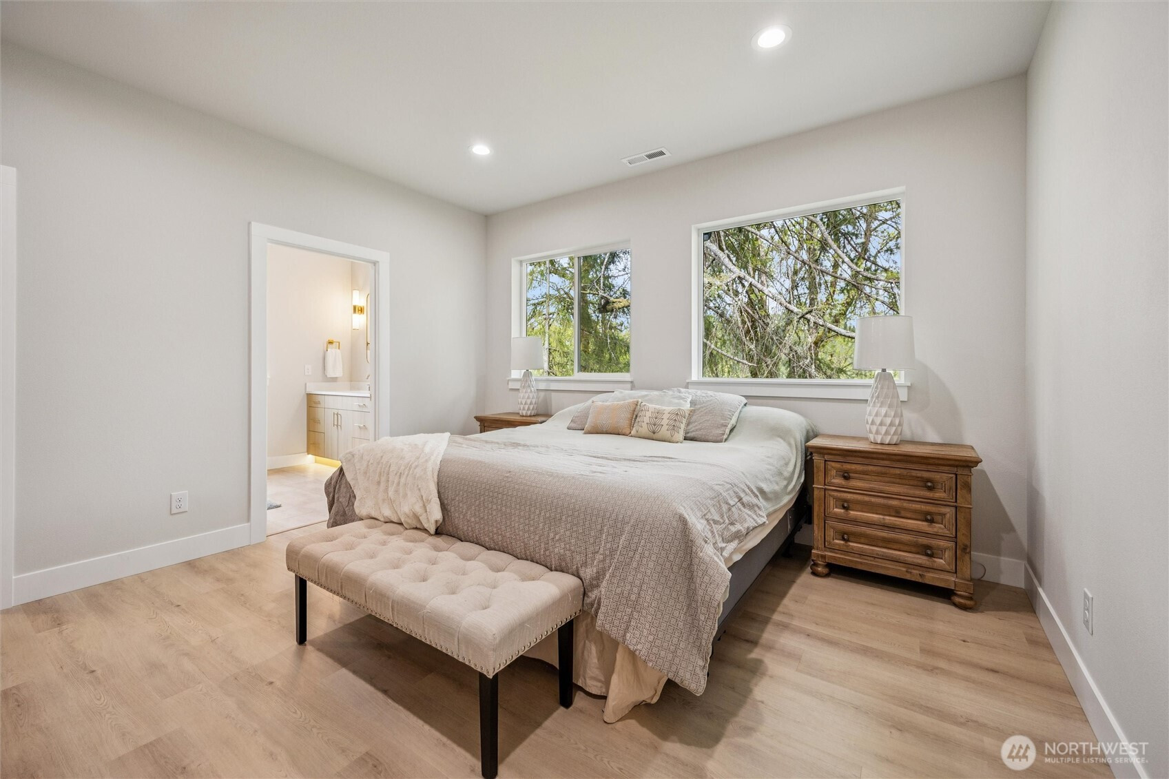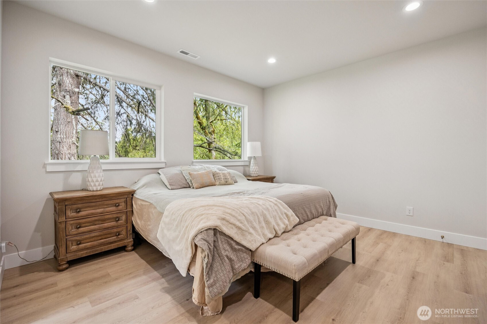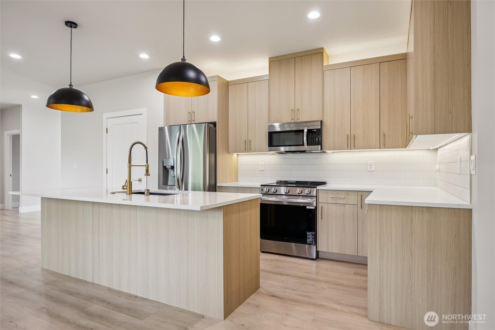 (650)533-3259Discover the perfect blend of modern design and peaceful surroundings in this stunning new construction home on a private .55-acre lot in a quiet, established neighborhood. The main level offers 4 bedrooms (or 3 plus a den/office), 2 bathrooms, and a bright, open-concept living space filled with natural light. The primary suite features a tiled walk-in shower, spacious walk-in closet, and serene ambiance. The kitchen is beautifully appointed with quartz countertops, SS appliances, a large island, and stylish finishes. The lower level offers incredible flexibility with an ADU-style or in-law suite, complete with 2 bedrooms, 1 bathroom, a full kitchen, washer/dryer hookups, and a generous living and dining area with its own private entrance—ideal for multigenerational living! Enjoy year-round outdoor living with two covered decks overlooking tranquil greenbelt views—perfect for relaxing or entertaining. An oversized 3-car garage provides ample storage and workspace. This home offers the rare combination of new construction in a mature setting.
