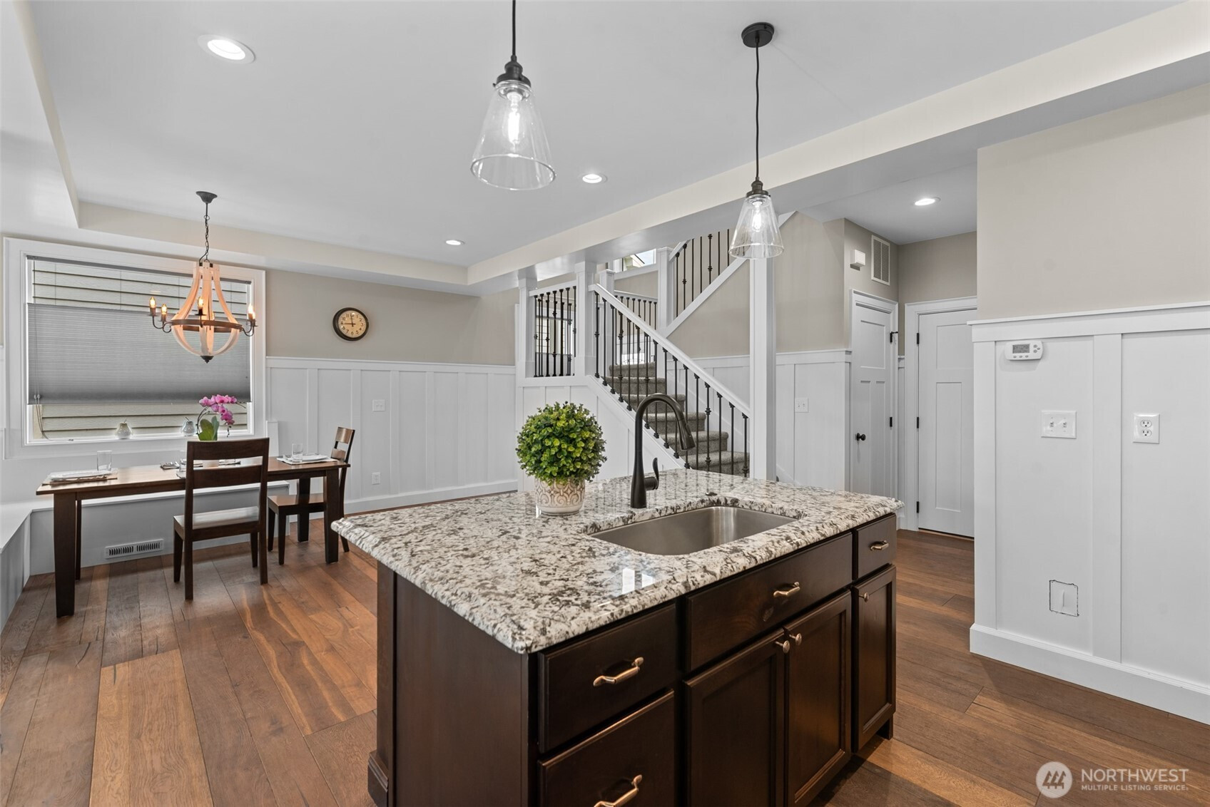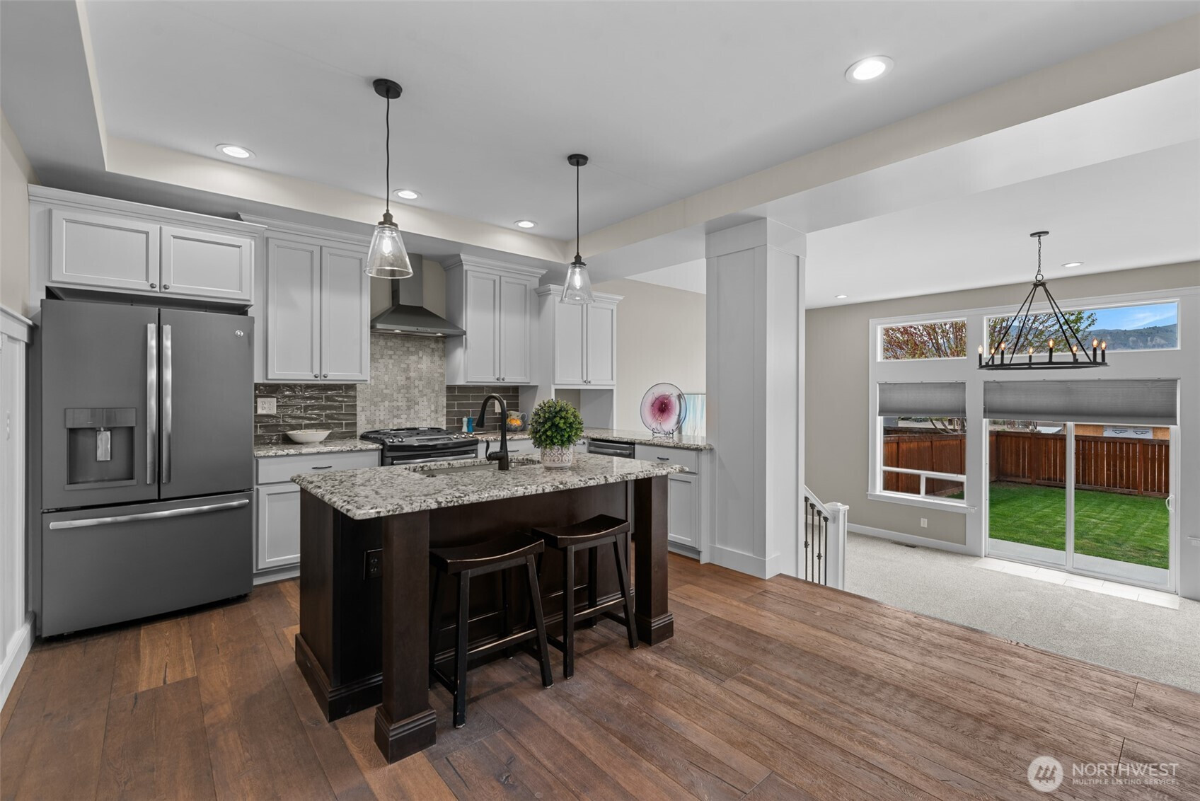 (650)533-3259Gorgeous townhome conveniently located in the heart of East Wenatchee. Low maintenance living with no HOA fees. You’ll appreciate the engineered hardwood floors, granite counters, white cabinets, stainless steel appliances and high-end finishes throughout. The large living room with high end gas fireplace has a large sliding door leading to a lovely patio and completely fenced backyard. Upstairs features a bonus room with wet bar and wine cooler, laundry room, 2 bedrooms, one with a walk-in closet, plus a spacious primary bedroom with a soaking tub and tile shower, walk-in closet, dual vanities and tile floors. The garage is finished and features built-in shelves for extra storage. Two 50 gallon hot water tanks ensure you’ll never be without hot water. Enjoy views of Mission Ridge and Saddlerock from this beautiful townhome!