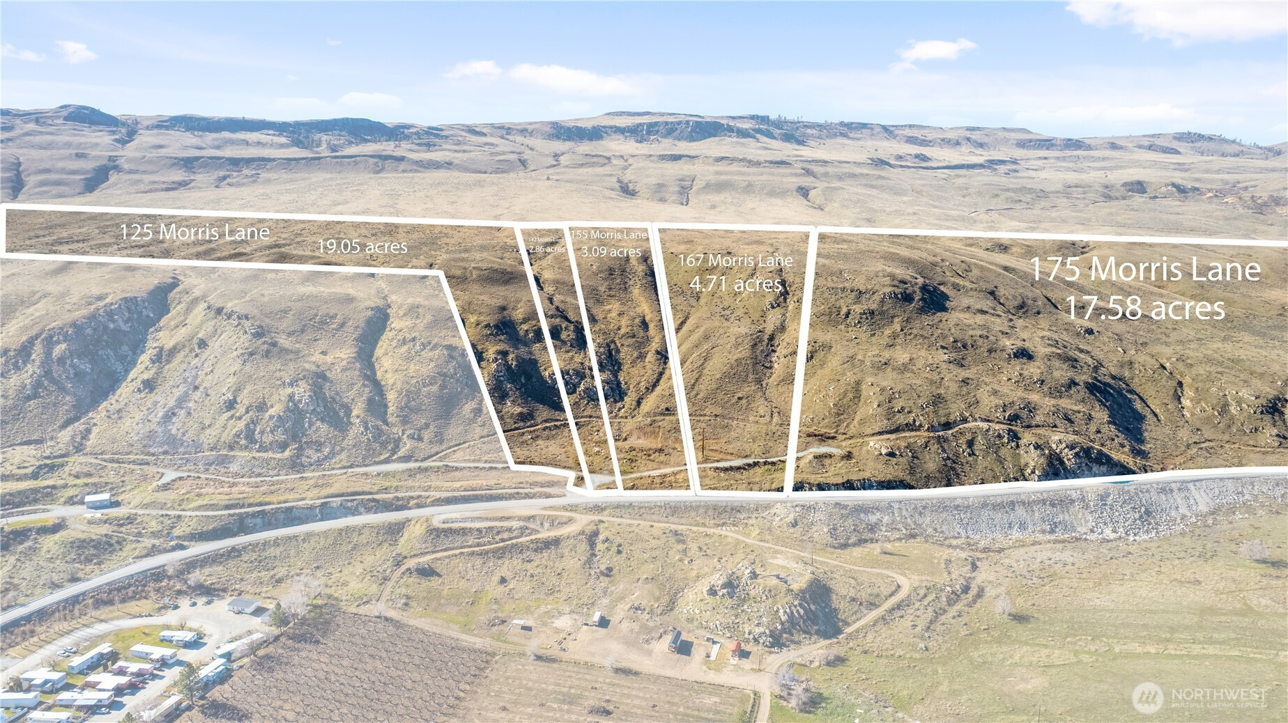 (650)533-3259Take in breathtaking 180-degree views stretching from Chief Joseph Dam along the Columbia River all the way to Brewster. This rare offering features nearly 50 acres divided into five separate parcels, creating endless flexibility for development, investment, or a private estate retreat.For outdoor enthusiasts, this property borders land managed by the Washington Department of Fish and Wildlife, offering direct proximity to public wildlife habitat and exceptional access for hunters and recreation lovers alike. Enjoy privacy, open space, and the added benefit of neighboring protected land.Bring your building plans and create the dream home you’ve always envisioned, whether it’s a custom river-view estate, a recreational getaway, or a multi-parcel investment opportunity.Power is available at the street, well needed. Ask about our Seller Financing Terms!