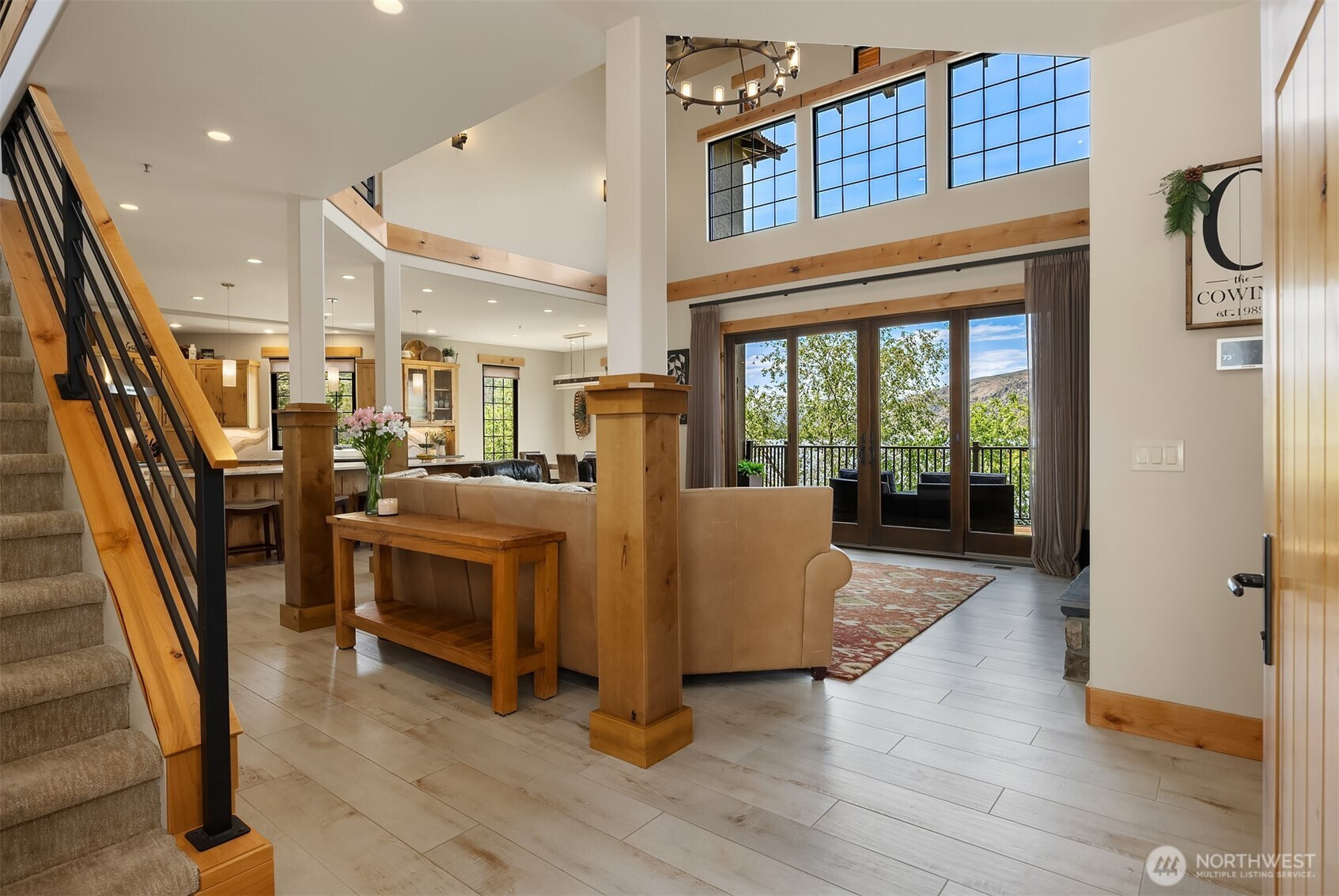 (650)533-3259Just in time for summer 2026! Gorgeous Columbia Point Lane Waterfront living in a unique 10 home community only 7 miles from Chelan! Private beach area and stunning River views. Spectacular totally updated custom home loaded with quality finishes. Main floor primary with spa bath and tub, Grand Great Room kitchen with a floor to ceiling fireplace, dining area and sliders to view deck ideal for entertaining. This property is the ultimate getaway retreat or terrific for year-round living. Additional bedrooms up, one-Ensuite with 3/4 bath and kitchenette perfect for weekend guests. Lower-level Rec rm with wet bar, Gym/bonus room, large laundry room and main floor powder room. Community boat dock with slips. Sandy beach area with total privacy.