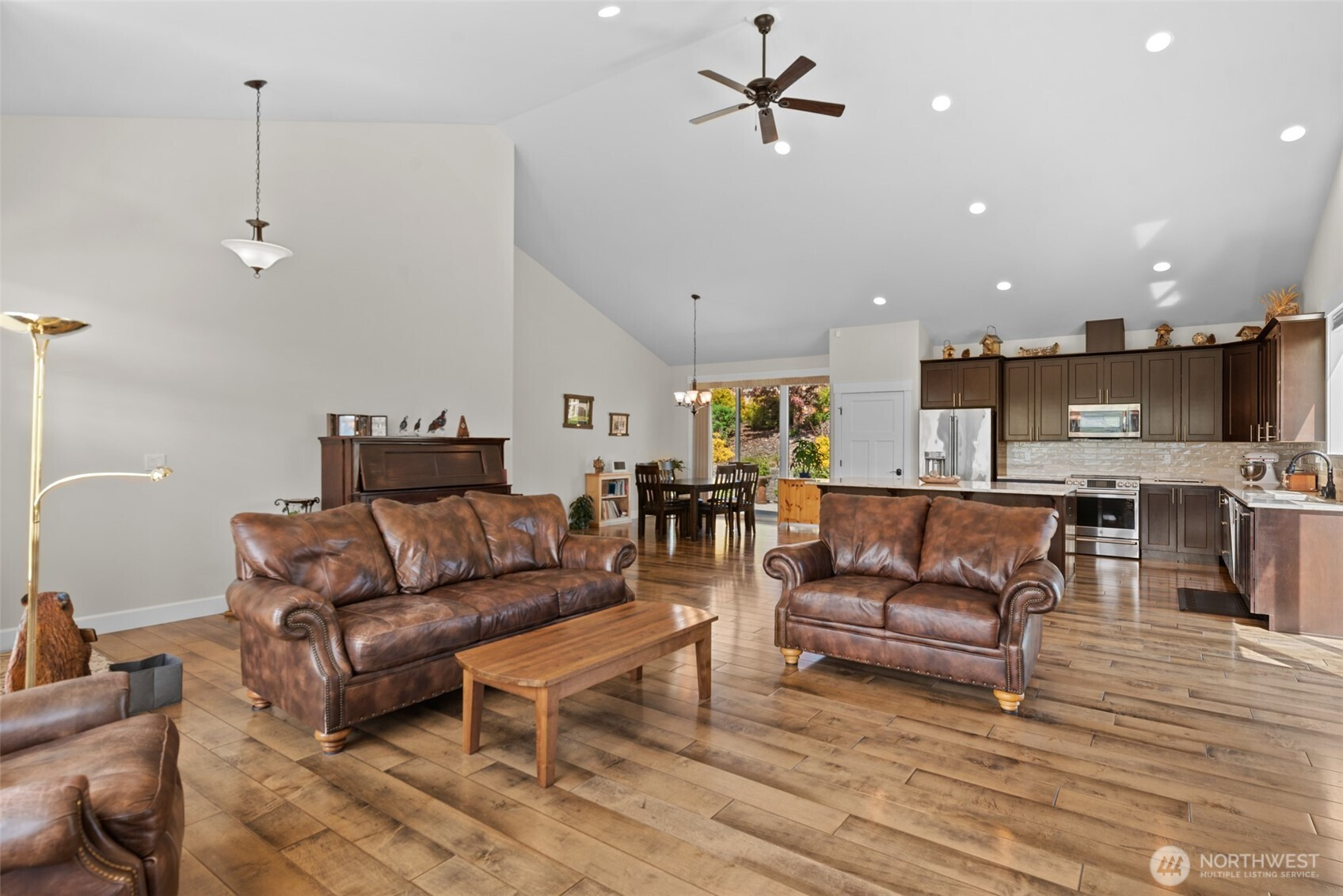 (650)533-3259Custom-built by Sage Homes and located within the desirable Highlander community, this 3-bedroom, 2.5-bath rambler offers refined single-level living with a spacious bonus rec room above the 3-car garage. Designed with an open-concept layout, the home seamlessly connects the kitchen, dining, and living spaces—ideal for both everyday living and entertaining. The kitchen features granite countertops, stainless steel appliances with induction cooktop, and ample prep space, flowing into the dining area and a bright, inviting great room with vaulted ceilings and a fireplace highlighted by a custom mantel. The primary suite serves as a private retreat with a well-appointed en-suite bath, complete with dual sinks, a separate shower, and a walk-in closet. Large windows throughout the home bring in abundant natural light and showcase beautiful surrounding mountain views. A perfect blend of comfort, functionality, and elevated design in one of East Wenatchee’s most sought-after neighborhoods