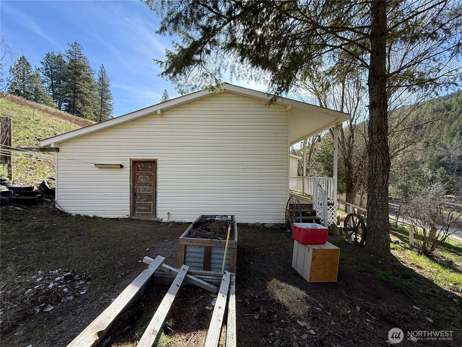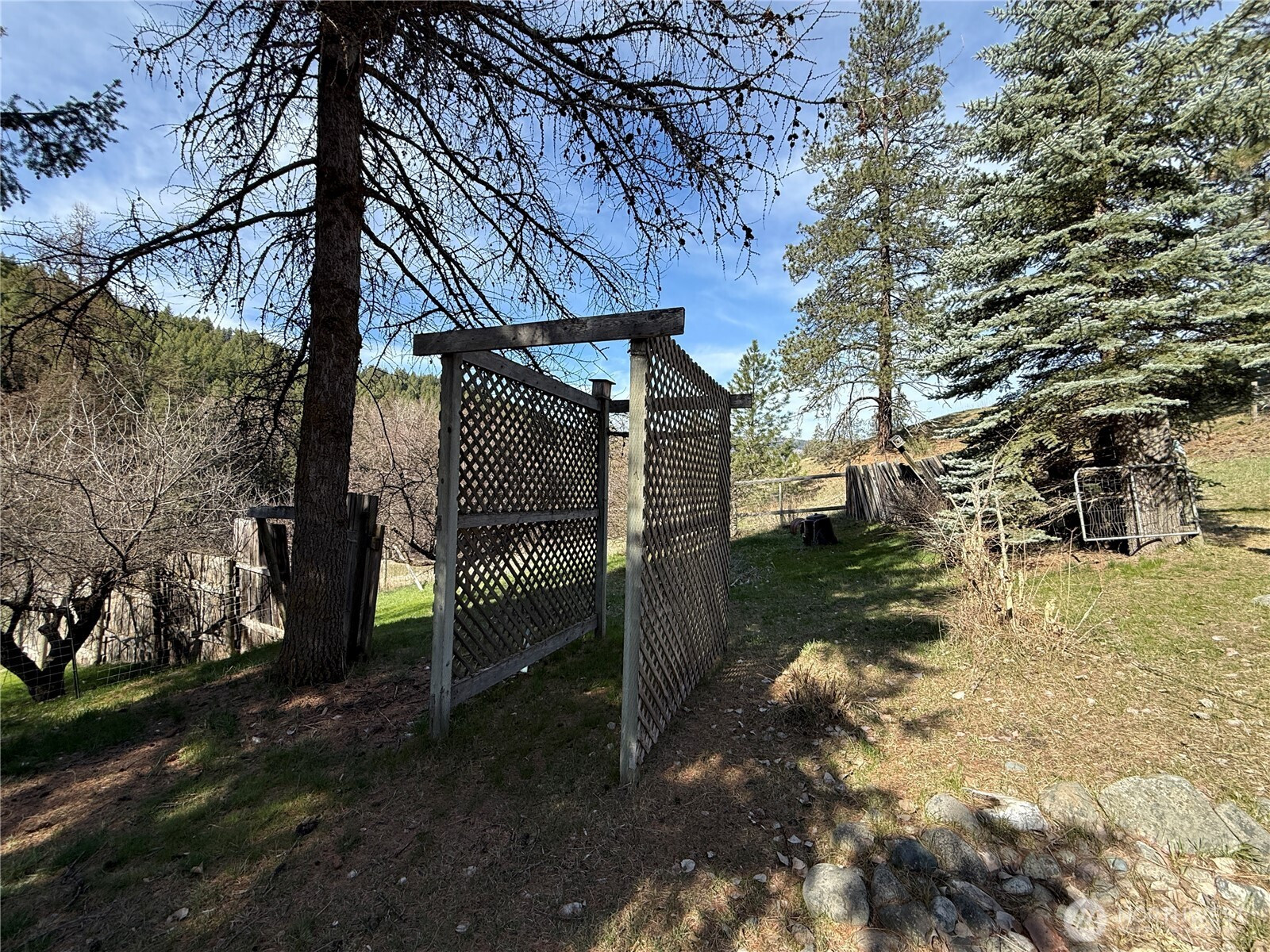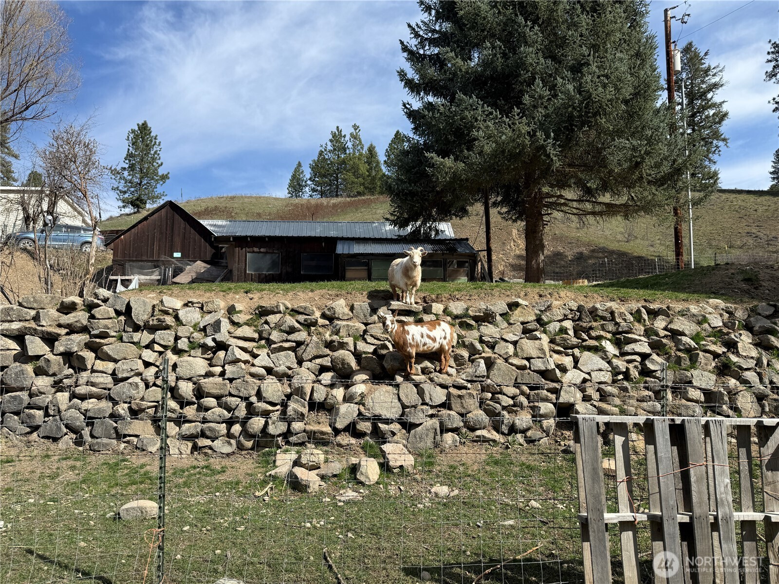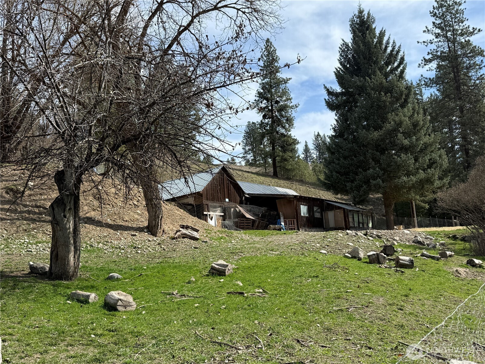 (650)533-3259Very well kept home on acreage set up for horses and animals with easy year-round access off a county maintained gravel road. The home is a mid-80s single wide with quality additions on both sides, creating a comfortable and functional one-level layout. Vinyl siding and a metal roof keep maintenance low, and the covered porch is a great spot to take in the setting. Inside you’ll find a large open kitchen and a home that has clearly been well cared for. Forced air electric heat in the home and a wood stove in the garage for additional utility. New front steps at the front door. The property is fully fenced and ready for livestock with lots of cross fencing and a barn that includes an attached garage area, plus both a detached carport and additional covered parking up at the house. There’s also an older rustic cabin that has been used as a bunkhouse. Nicely established yard with garden areas already in place. Lots of rock work throughout the property. Solid setup, good access, and ready to use.