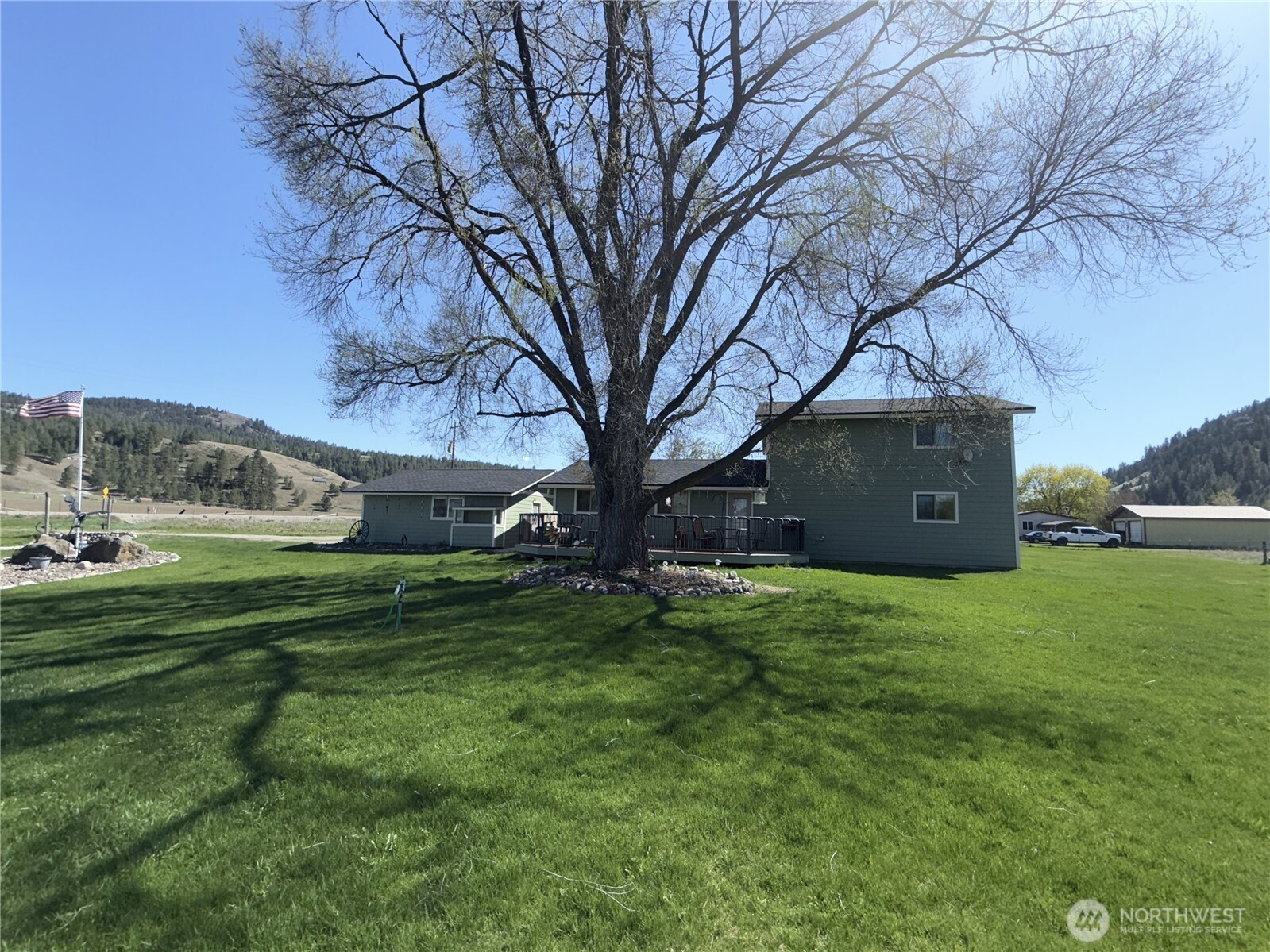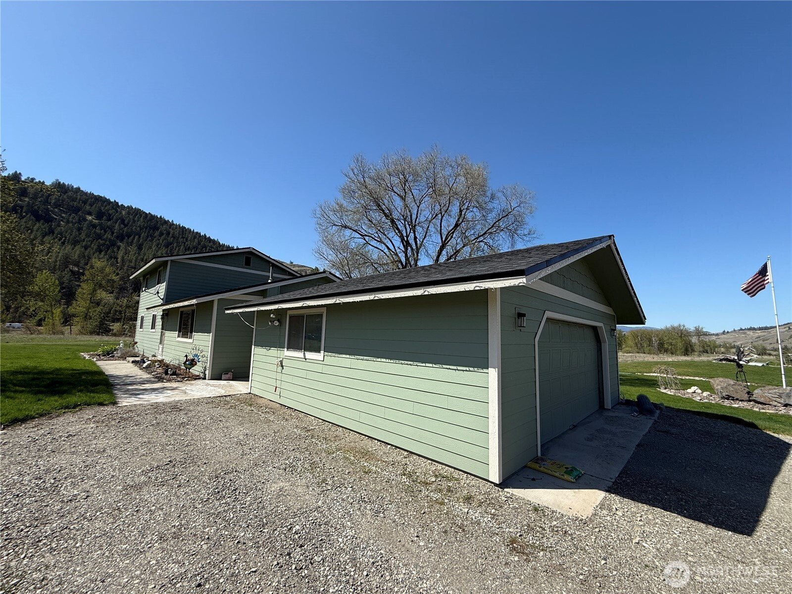 (650)533-3259What a remarkable property. Almost too much to list. Large 4 bedroom home with primary bedroom on the main floor that has both a large bonus room and three-quarter bath attached. The large, bright kitchen has plenty of cabinet and counter space with eat-at breakfast bar. Large family room with pellet stove just off the kitchen. Door off the kitchen leads to the detached 2-car garage which makes unloading grocery more efficient. There's a large deck off the side of the home, perfect for BBQ's and entertaining. Beautifully landscaped yard with creek that runs through the front and side yard. Huge pass through shop with extra tall doors and concrete floor. You'll enjoy easy year around access off of the state highway.