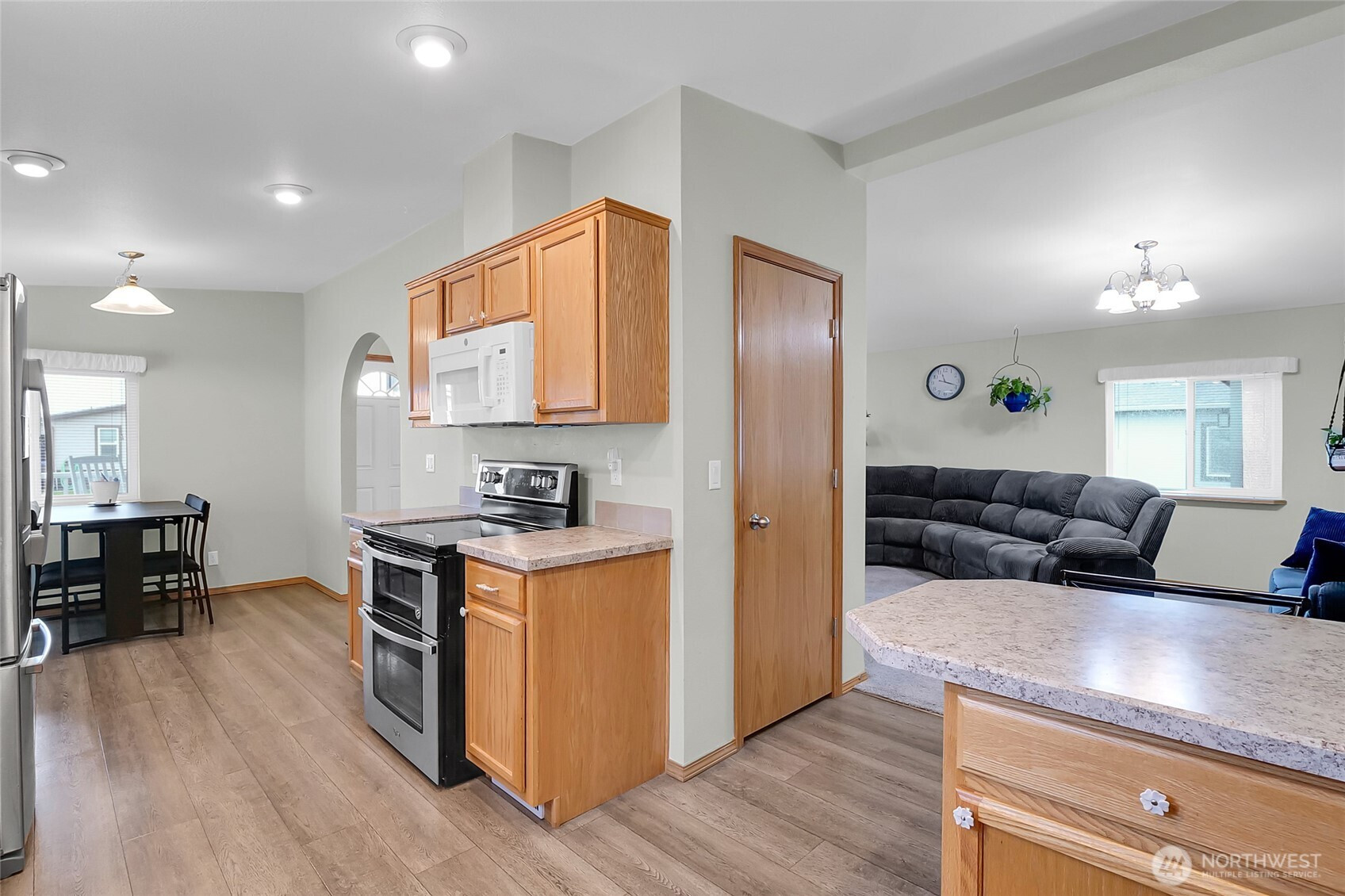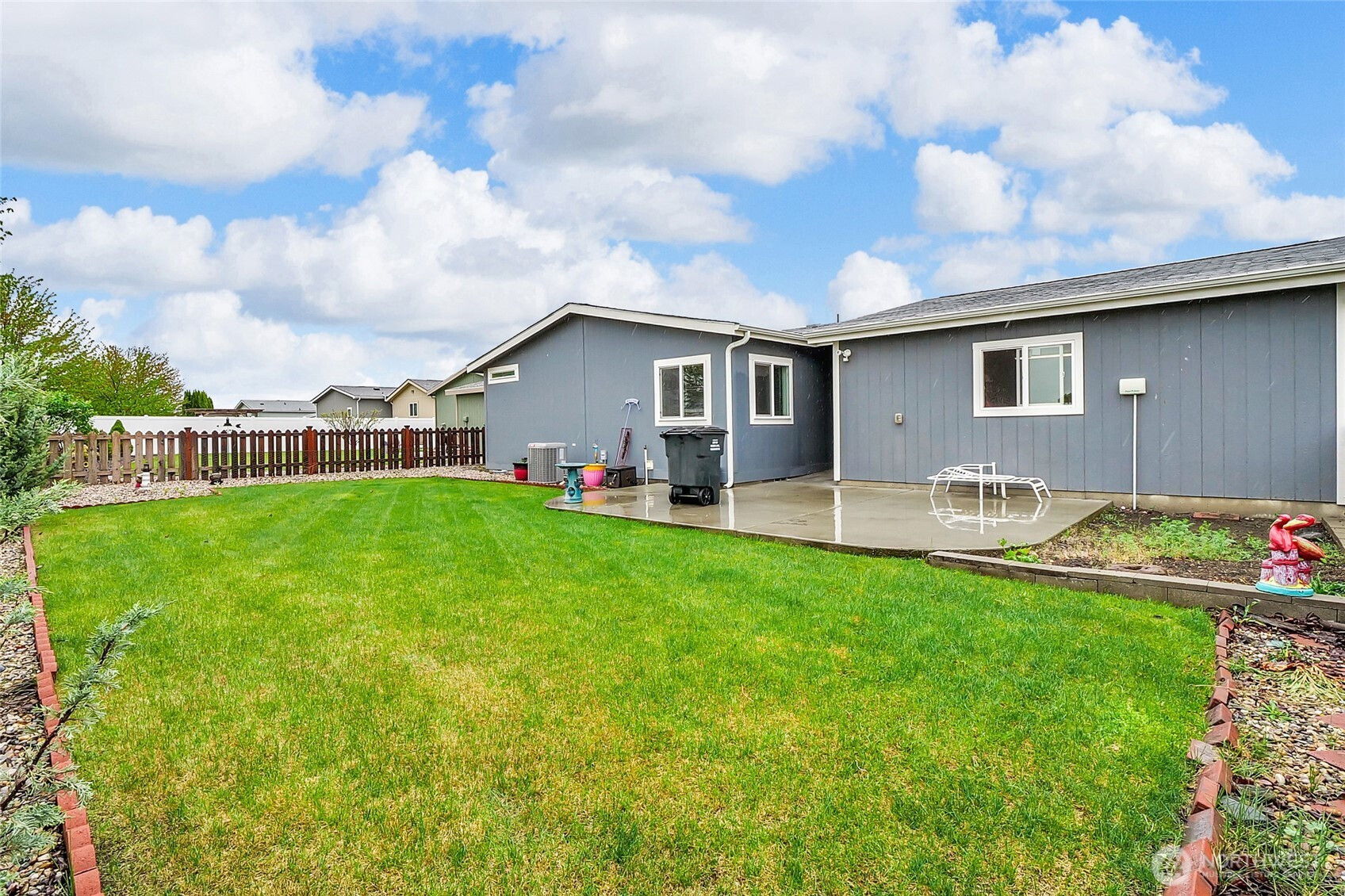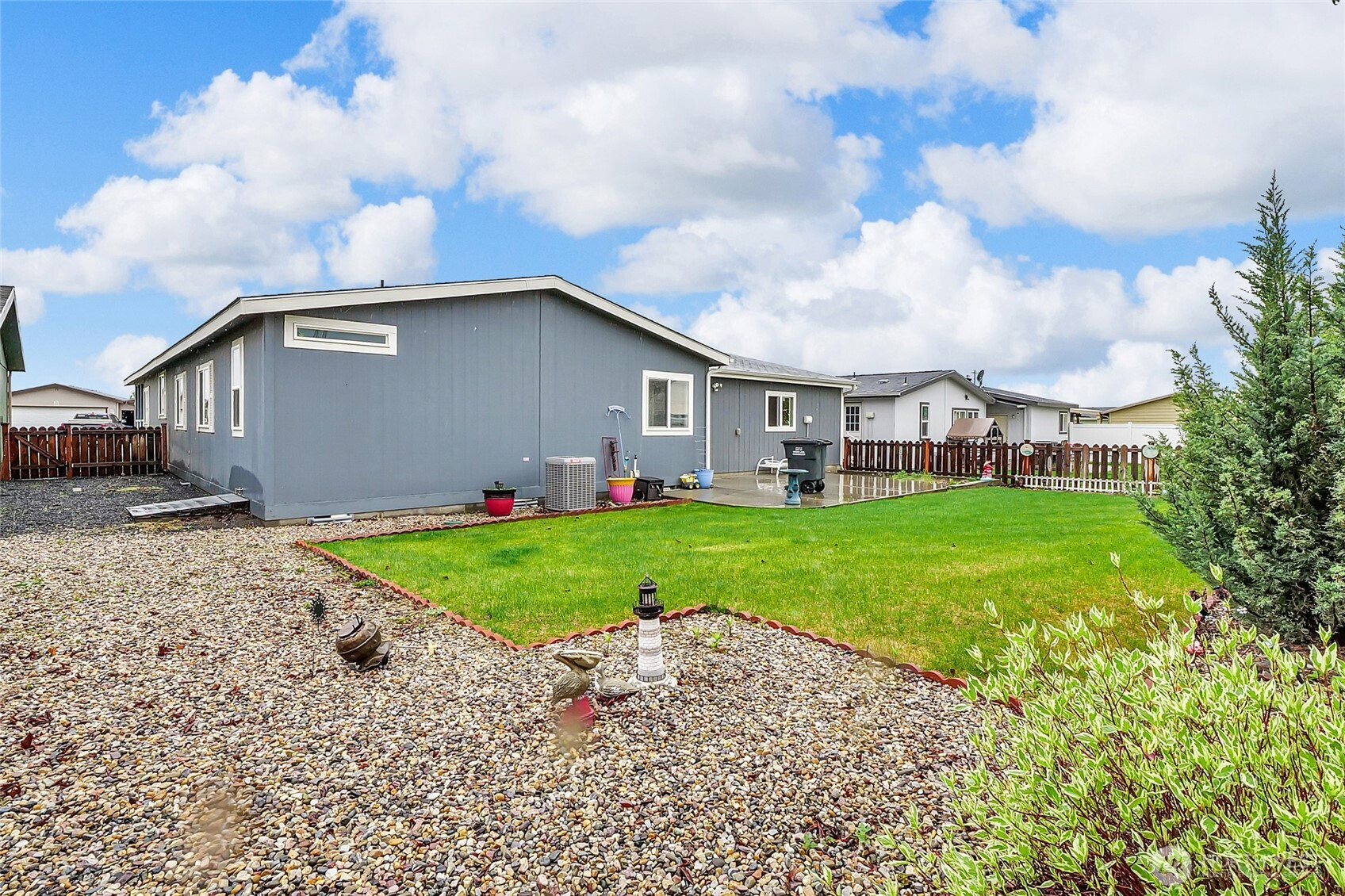 (650)533-3259Beautifully maintained 2018 Valley Quality manufactured home located in the desirable age 55+ community of The Lakes. This move-in ready home offers exceptional outdoor living with a welcoming front porch, fully landscaped yard, concrete walkways, and underground sprinklers. Enjoy added privacy in the fully fenced backyard, along with rain gutters and a spacious 640 sq ft insulated detached garage—perfect for parking, storage, or a workshop. Inside, the thoughtfully designed floor plan features vaulted ceilings and an open layout that creates a bright, airy feel throughout. Neutral colors provide a clean, modern backdrop ready for your personal touch. The large kitchen is a standout, offering abundant cabinet storage with roll-outs, a generous walk-in pantry, plus an additional pantry for extra convenience. The home includes three bedrooms and 1.75 bathrooms, including a spacious primary suite with double vanity. All appliances are included—washer and dryer too—making this an easy, turnkey opportunity.
