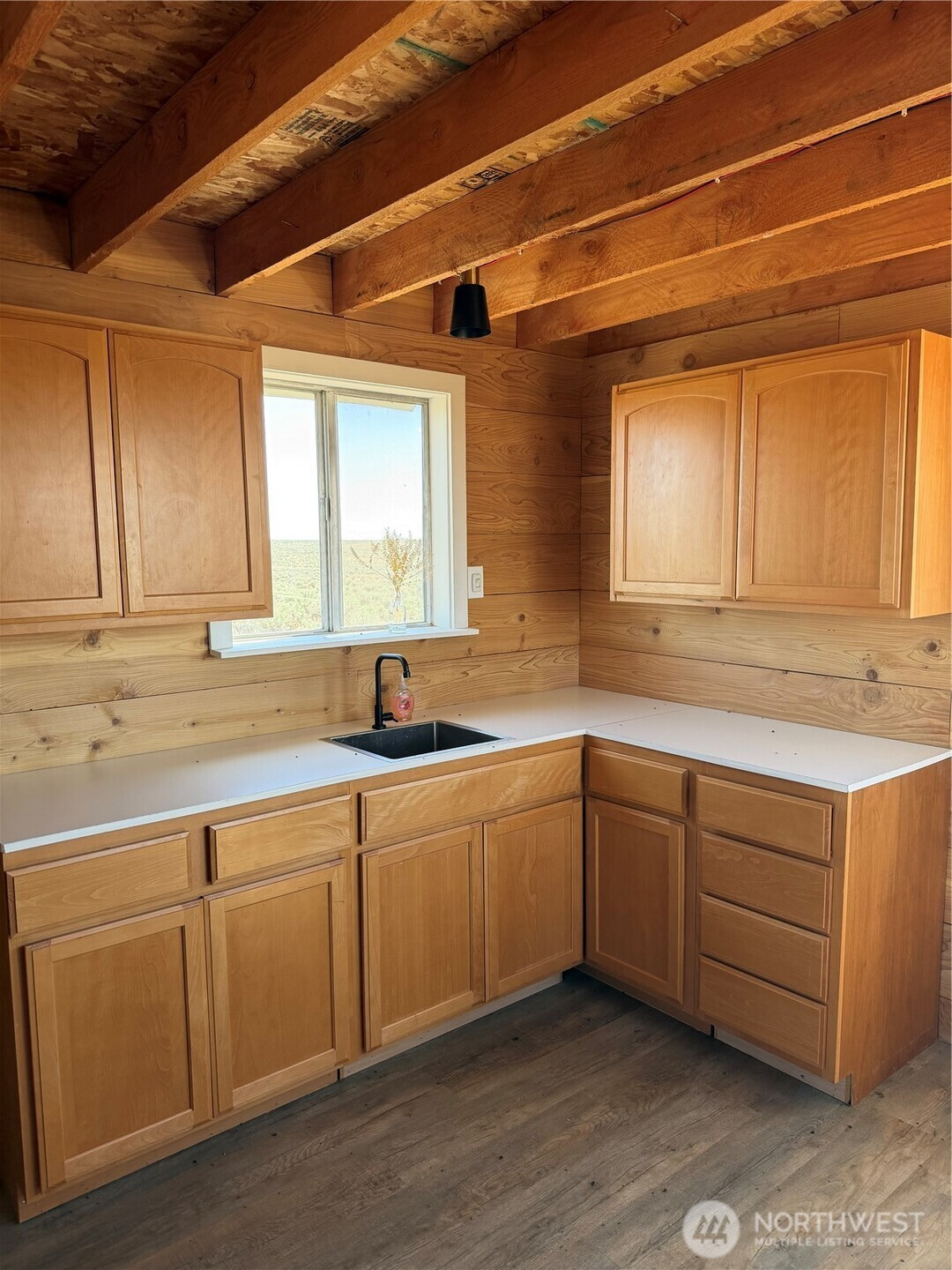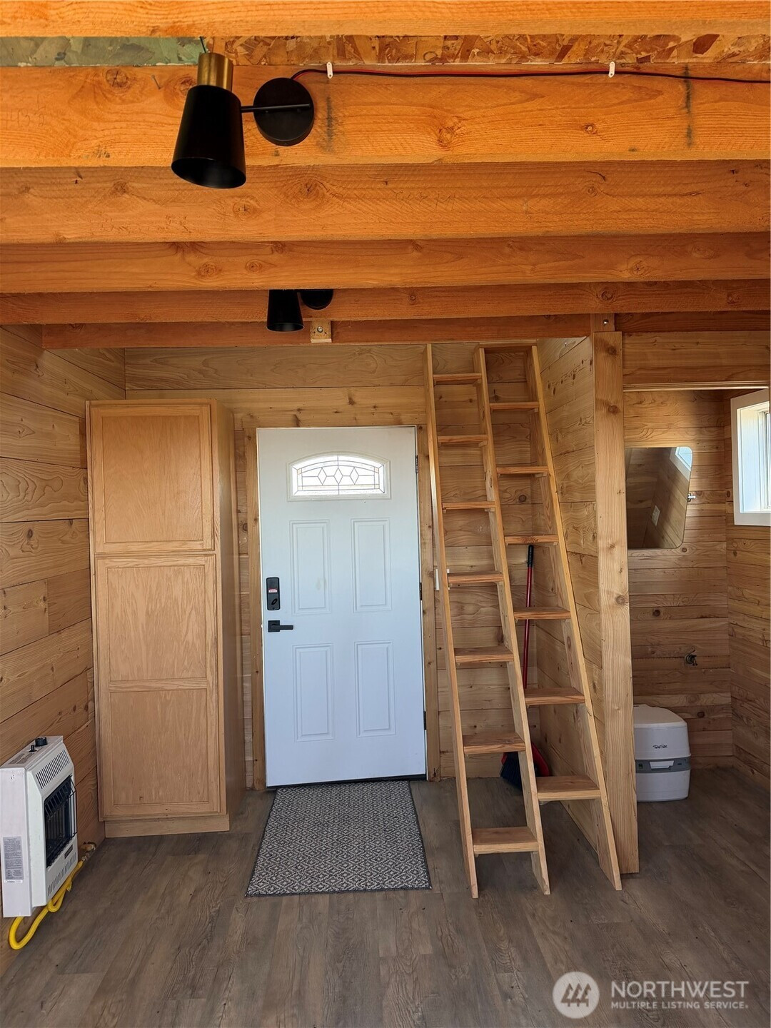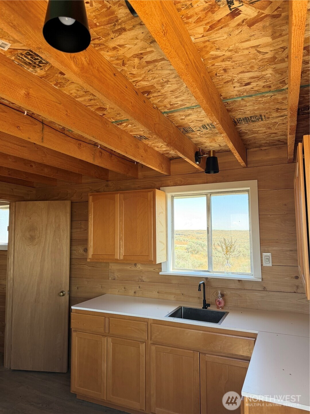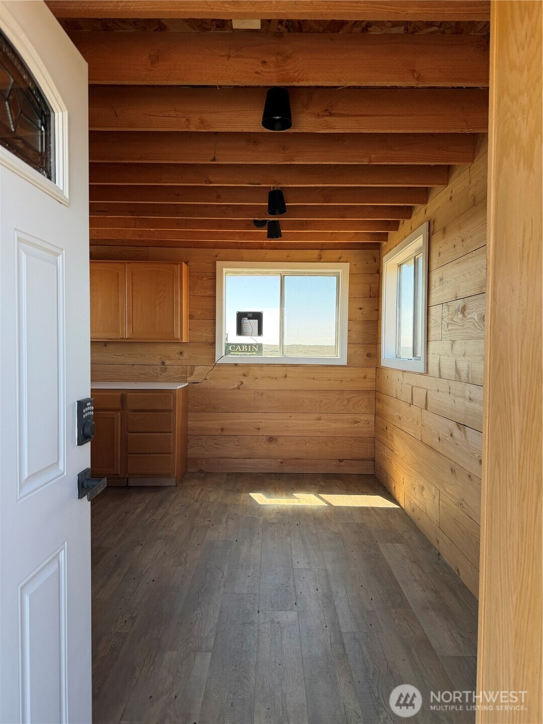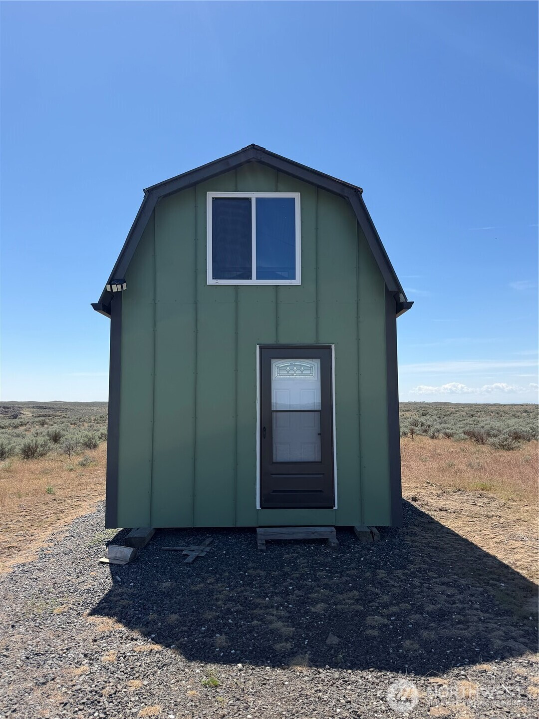 (650)533-3259Off-grid living on 40 private acres in Eagle Springs Ranch. This 12x16 cabin is thoughtfully set up with a 12-volt solar battery system, indoor lighting, rainwater catchment system plumbed to the kitchen and bathroom, and propane connections for heat and additional appliances. Interior features include vinyl plank flooring, reclaimed cedar walls, a functional kitchen with upper and lower cabinets, and a bathroom with a self-contained toilet. The loft offers space for up to three beds, complemented by tall ceilings and large upper windows that provide natural light, cross breeze, and expansive territorial views.The property includes a 20-foot shipping container for additional storage. Gated entry with a graveled driveway adds convenience and security. The land offers rolling terrain with valleys and hills, basalt column outcroppings, and abundant wildlife, including deer. Borders 640 acres of Washington State DNR land, providing extended privacy and recreational opportunities. Private roads maintained by the POA.