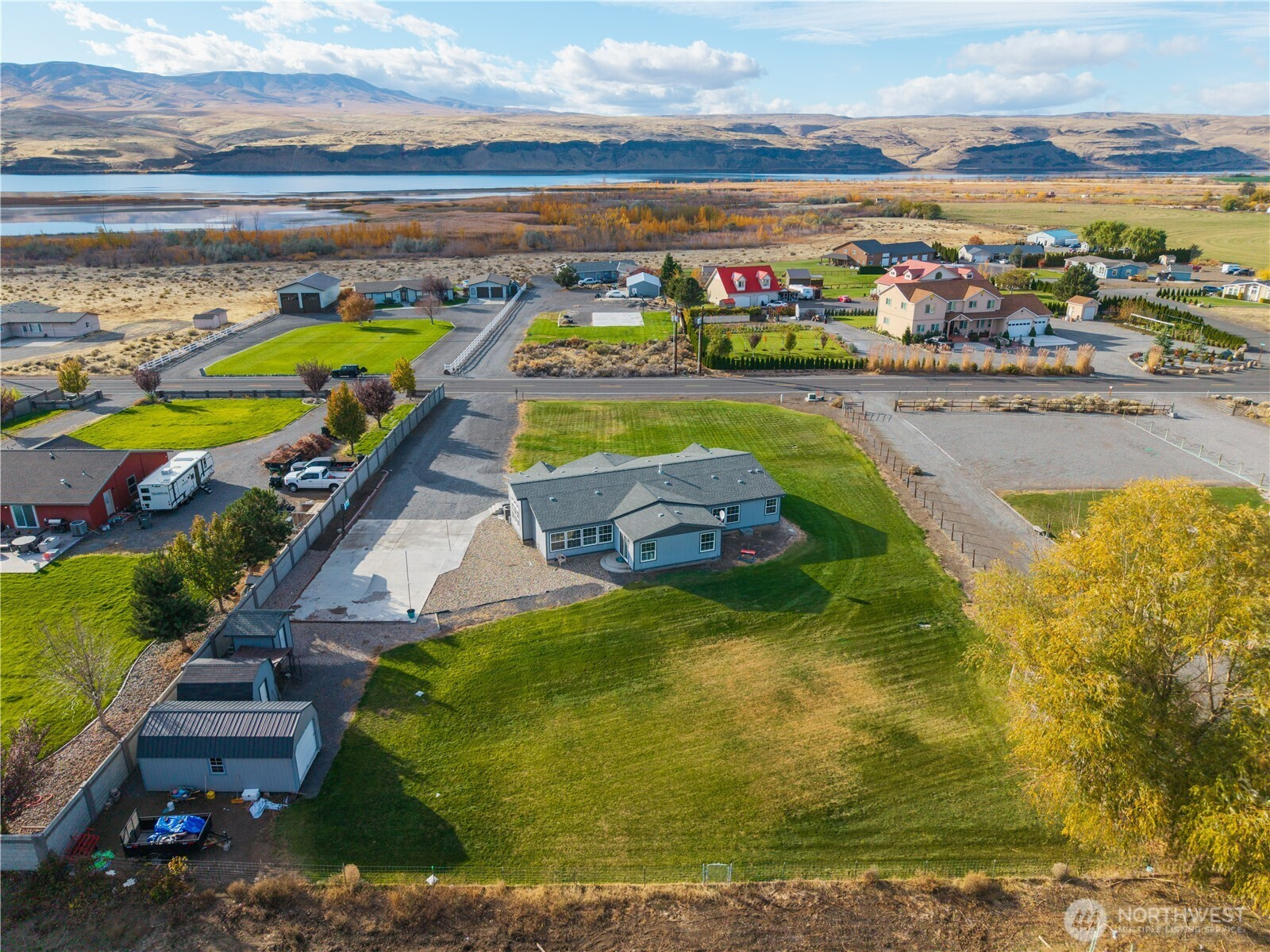 (650)533-3259Expansive 4 bed, 2.5-bath home on 1 full acre with sweeping mountain, river, orchard/vineyard views & spectacular sunsets. Nearly 3,000 sq ft of living space features beautiful flooring throughout, vaulted ceilings, walk-in pantry with lighting, dining room, reverse osmosis water filtration, skylights, A/C, laundry/utility room with deep sink, plus an enormous bonus room. Stunning kitchen with large center island & designer appliances. Primary includes 5pc bath with soaking tub, dual vanity, & large walk-in closet. Outdoor amenities include sprinkler system, RV parking, and multiple sheds/outbuildings including a 12x24 garage door - ideal for equipment, storage or shop use. Quiet setting with little traffic & views in every direction!
