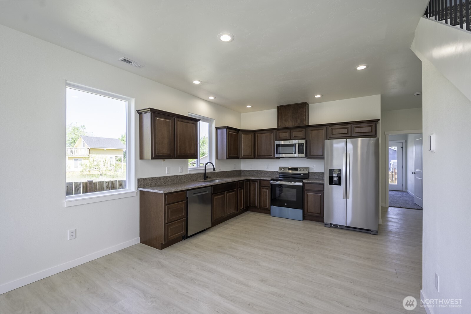 (650)533-3259Welcome to this beautifully crafted new construction home offering the perfect blend of modern design, functionality, and high-end finishes. Nestled at the end of a quiet street in a desirable location, this 4-bedroom, 3-bathroom home spans just over 1,700 square feet and sits on a low-maintenance lot ideal for easy living without sacrificing comfort. The thoughtfully designed layout features two bedrooms on the main level, including a spacious primary suite complete with a luxurious ensuite bathroom showcasing a tiled walk-in shower and upscale finishes. An additional full bathroom on the main floor also features a tiled walk-in shower, providing both style and convenience for guests. Upstairs, you’ll find two more bedrooms along with a versatile loft space, perfect for a playroom, home office, or bonus living area. A third full bathroom with a tub/shower combo completes the upper level. Throughout the home, you’ll appreciate durable and stylish LVP flooring, plush carpet in the bedrooms, and elegant quartz countertops. The kitchen comes fully equipped with stainless steel appliances, making it move-in ready from day one. Comfort is ensured year-round with central heating and air conditioning. Step outside to enjoy the elevated back deck, an inviting space for relaxing or entertaining. The home also includes a fully finished one-car garage. With its modern finishes, smart layout, and prime end-of-street location, this home is a standout opportunity you won’t want to miss!!