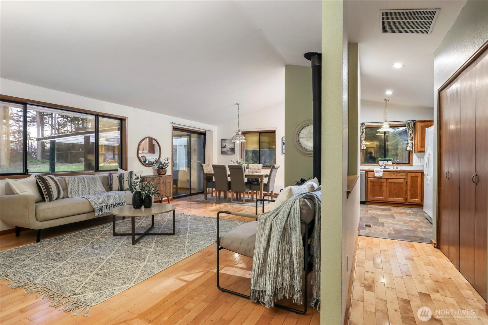 (650)533-3259Privacy, property, & perfect setting can be found on a country lane conveniently tucked between Oak Harbor & Coupeville. Set on a nearly 1 acre lot, this is your opportunity to customize an idyllic landscape to reflect your current priorities & future goals. With 1214 square feet of single-story living space, highlights include: 3 bedrooms, 2 baths, & an expansive living room with hardwood floors, cozy fireplace & double paned windows that beautifully frame the bucolic setting. The kitchen is light and bright—with ample storage & seamless access to both the versatile dining area & oversized deck! What else? A NEWER roof, an efficient heat pump providing year round comfort & a fully fenced, level, park-like yard. When you add in the 2-car garage plus an additional shop/storage space, tons of paved parking & more? Get settled on the patio & pause...to soak up the sound of friends, nature, & being home...