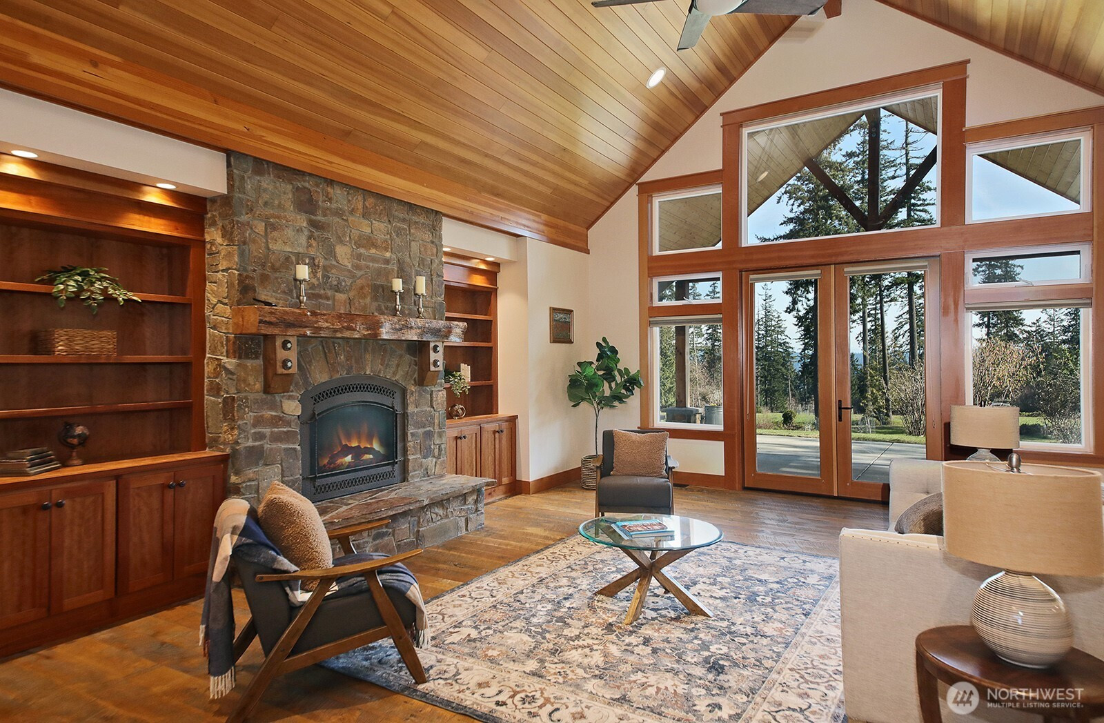(650)533-3259Absolutely stunning one level Craftsman. Built in 2015 and very lightly lived in - feels brand new. Carefully placed on ten secluded, mostly forested acres (approximately 2-3 acres around the home site cleared). This custom home has a superior floor plan with soaring cedar ceilings and dramatic hand selected re-sawn oak wide plank flooring usually found in lodges like Yellowstone. The gorgeous propane fireplace, featuring impressive stone mantle with local spalted alder mantel, accents the overall quality and feel of the welcoming gathering room. Vertical grain fir millwork and solid fir doors aged to a golden patina add warmth to the spaces. Chef’s kitchen with massive textured raw edge granite island and high-end appliances including double ovens, six-burner range and drawer microwave in the island. This home was specifically designed for living in place. The wide doorways to zero threshold shower and extremely functional three-bedroom floor plan create the ultimate in Whidbey Island living. Oh yes-a huge 640± sq ft unfinished bonus area above the 3-car garage can be the perfect flex area or future ADU with deck and exterior entrance. The home is perched to overlook the property with territorial views with fenced garden space complete with greenhouse. Adjacent 10 acres is also available for added privacy. Come take a look at this unique Whidbey property!