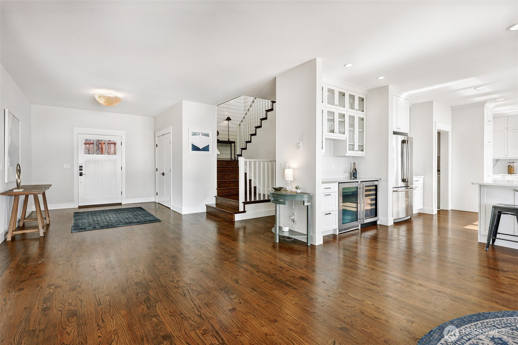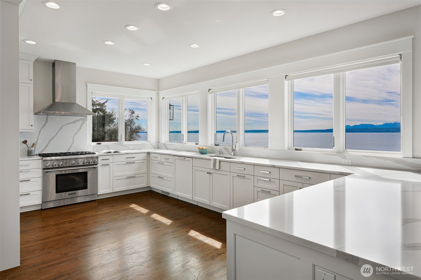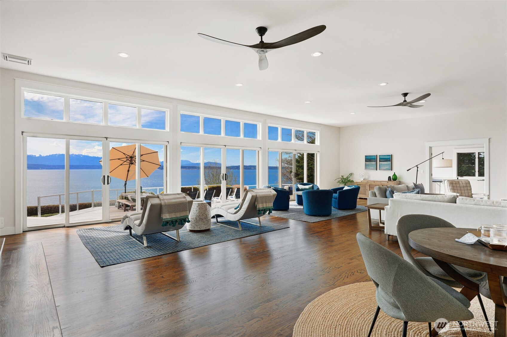 (650)533-3259Welcome home to your slice of paradise with its ideal central Whidbey location with private beach access and breathtaking unobstructed west-facing views! Remodeled from top to bottom by meticulous owners, you'll find no stone unturned in this spectacular waterfront remodel. The chef's kitchen is open to the dining area for ease of entertaining whether for large crowds or intimate groups. New cabinetry, a Thermador gas range, gleaming quartz countertops, and both wine and beverage refrigerators. Enjoy your meals with a full view of the Puget Sound whether inside or al fresco on one of two new decks. The main level layout offers versatility with two generous living areas complete with beautiful hardwood flooring, recessed lighting and a gas fireplace. The two roomy bedrooms on the main level accommodate guests or working from home. The primary bedroom is perched above the backyard with pitch perfect views. You'll enjoy whale watching and sunsets from the private deck. There's room for a king bed and an area to lounge. The primary bathroom mirrors a spa experience with a dual head shower and a soaking tub. The second upper bedroom has room for multiple beds and boasts a beautiful en-suite bathroom. Outside, enjoy a verdant level yard and easy stairs down to the beach where you can wander this quiet stretch or gaze upon the busy shipping lane. Life is easy here! Quick to ferry, groceries, restaurants. Countless upgrades. Outdoor storage. Generator on site.