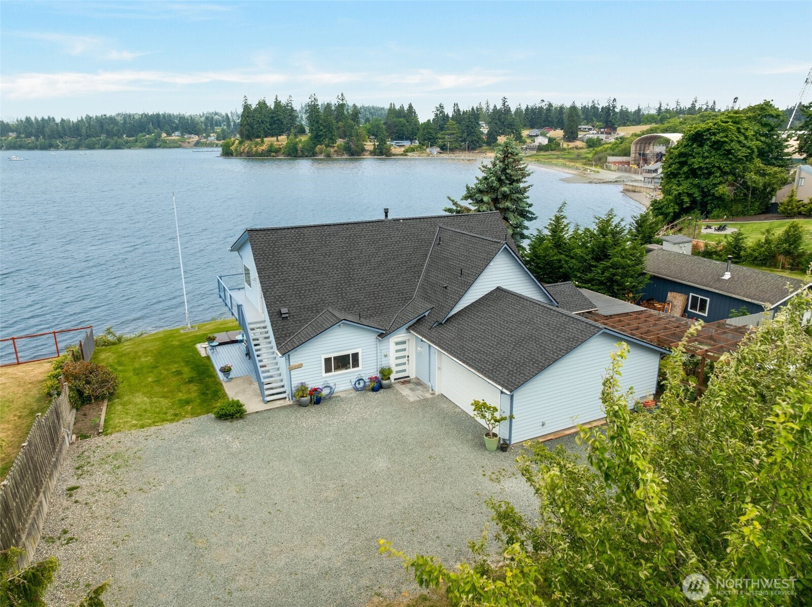 (650)533-3259Low-Bank Waterfront Living | Calm Waters of Holmes Harbor From morning light across the harbor to quiet evenings by the shore, life here naturally centers around the water. Positioned approximately 20–30 feet from the shoreline, the home offers a uniquely close connection to the harbor and its ever-changing tides. Expansive windows bring in light, sky, and water, creating an open, airy feel throughout. Enjoy water views from the living and dining areas, kitchen, bedrooms, and upstairs spaces, with the shoreline as part of daily life from morning to night. Set on approximately 1 acre with 101± feet of low-bank frontage and 10,000± sq ft of private tidelands, the property offers a rare opportunity for an immersive shoreline lifestyle. Holmes Harbor is known for more protected, generally calmer waters than many other waterfront settings around the island—ideal for kayaking, paddleboarding, and a range of saltwater recreation. Nearby public boat launch adds to the appeal. Thoughtfully updated with a bright coastal style, the home features a main-level primary suite with a modern bath and curbless shower, additional bedrooms upstairs, and flexible living space for everyday comfort or hosting. The enclosed 60x20 garden area includes covered and open spaces, raised beds, and versatility for gardening or pets. No HOA. Potential for a DADU up to 1,200± sq ft (buyer to verify). Short-term rentals allowed. Close to downtown Freeland and Freeland Park.