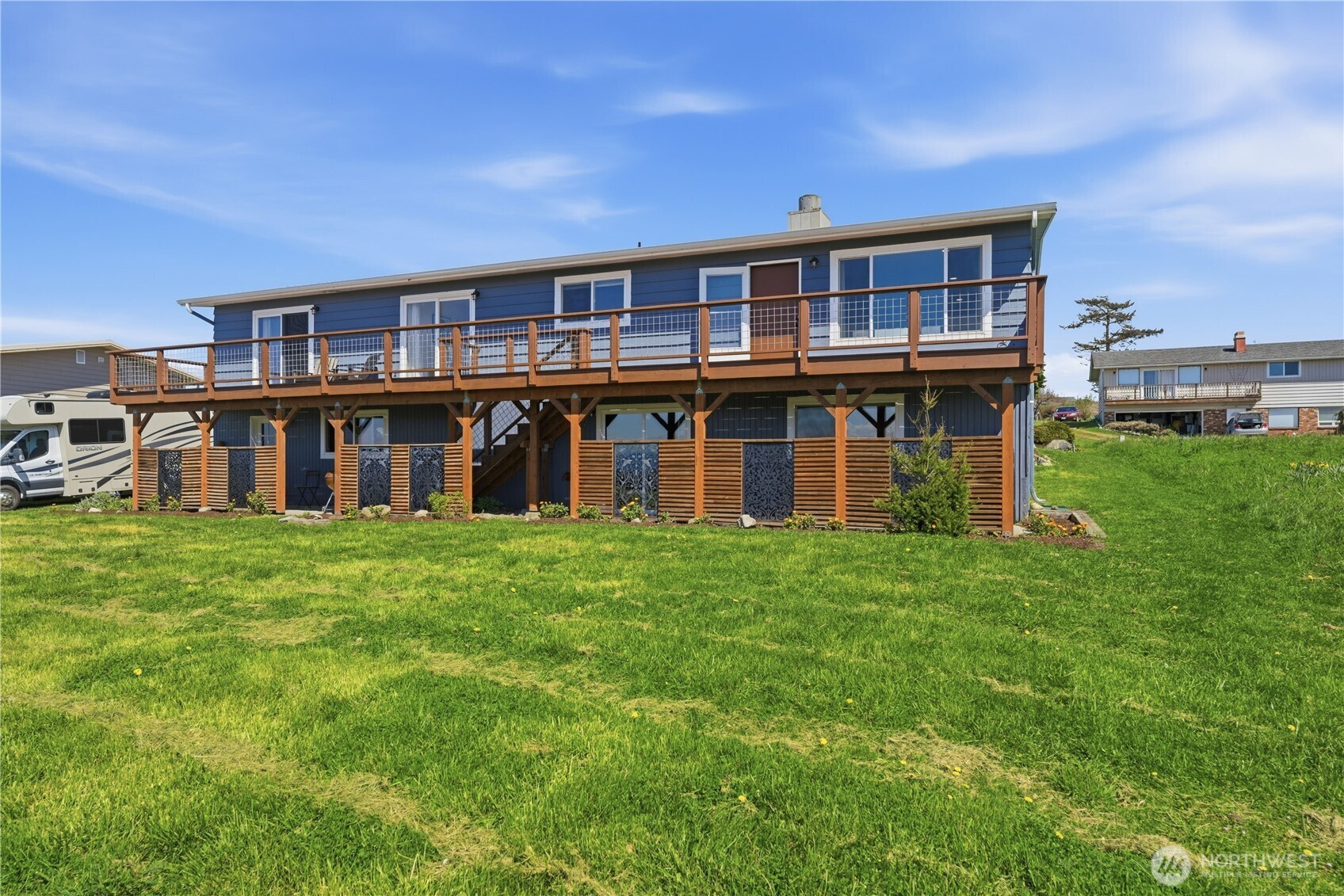 (650)533-3259Welcome to your home in the highly sought-after Sierra Country Club, where stunning sunsets and sweeping views of the Olympic Mountains and the Juan de Fuca Strait are part of everyday life. Enjoy peaceful blufftop living as ships pass quietly and waves roll in below. Together with the BONUS LOT below, this home offers 2 bedrooms + 2 BONUS rooms, one full bath + two 3/4 baths. Over the years, the home has been thoughtfully refreshed with updated flooring, windows, paint, interior lighting, a pellet stove, a metal roof, and a beautifully refinished deck. A built-in vacuum system, extra storage, RV parking, and a two-car garage add everyday convenience. Just moments from the beach park and seasonal community pool, this property captures the best of Whidbey Island living. With strong appeal in this desirable view community, it also presents a compelling investment opportunity with stable rental potential.