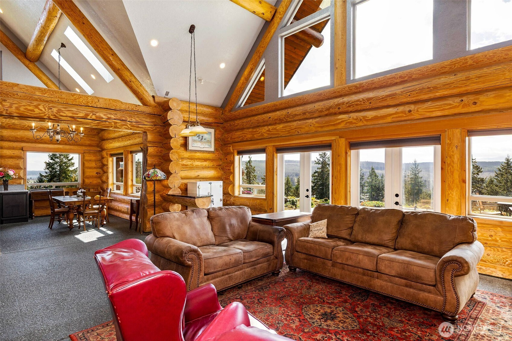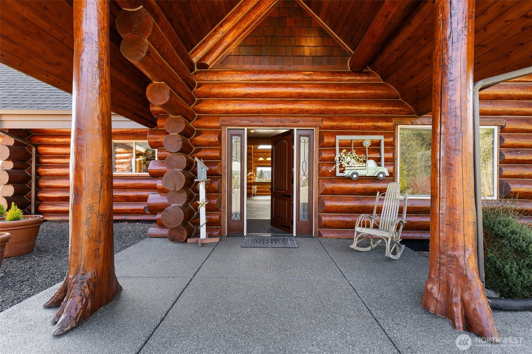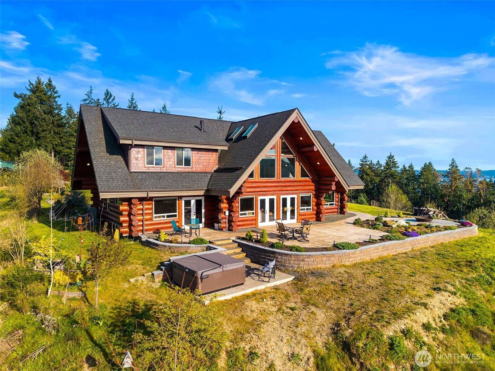 (650)533-3259Some homes have views...This one COMMANDS an entire landscape! Panoramic vistas stretch across the Olympic Mts, Hood Canal, and Mt Rainier—an exceptionally rare alignment that places multiple iconic PNW landmarks in full view from a single homesite. Constructed with high-end custom log craftsmanship, the home delivers both presence & refinement. Vaulted ceilings & expansive windows pull the outdoors in, turning the surrounding landscape into a constant visual backdrop to this majestic and magical space. The layout flows naturally, designed for both function and gathering, with each major space oriented to maximize the view. Thoughtful details elevate the experience throughout, including heated exposed aggregate flooring underfoot, custom decorative iron railing & Kitchen crown accents. Custom elements, such as antler drawer pulls, are carried throughout in ways that are rarely replicated & difficult to replace. Outdoor living is fully realized with an expansive stamped concrete patio, custom fire pit, and multiple seating areas designed for year-round use. A private hot tub sits just below, positioned to take in the full sweep of the view. Huge garage (1200sf) adds flexibility for vehicles, storage, or workspace. WAY too many other details to list them all here. Just 20 min to Poulsbo & 21 minutes to the Kingston ferry for access to the greater Seattle area. A property defined by its setting, its craftsmanship, and a view that is increasingly difficult to find. See it today!