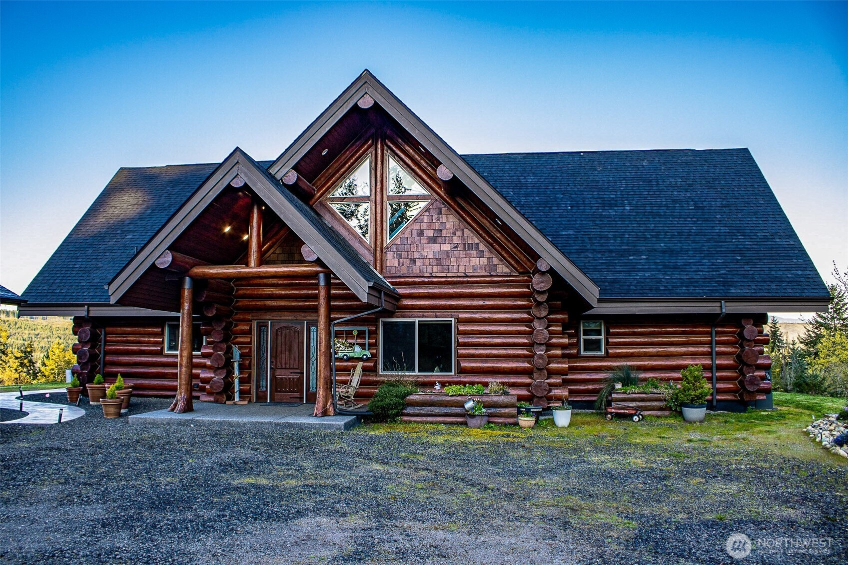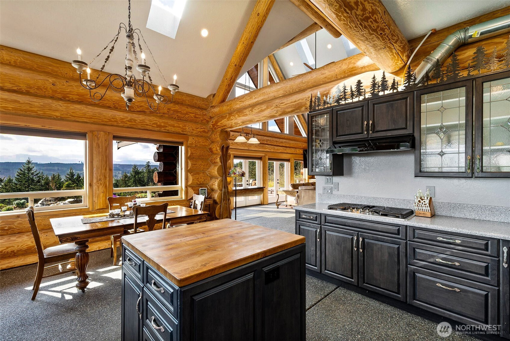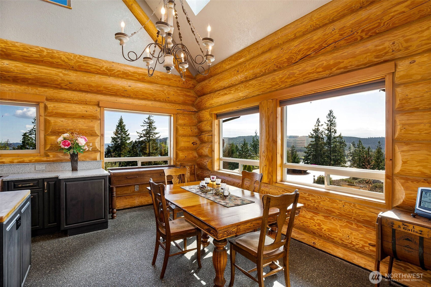 (650)533-3259Some homes have views...This one COMMANDS an entire landscape! Panoramic vistas stretch across the Olympic Mts, Hood Canal, and Mt Rainier—an exceptionally rare alignment that places multiple iconic PNW landmarks in full view from a single homesite. Constructed with high-end custom log craftsmanship, the home delivers both presence & refinement. Vaulted ceilings & expansive windows pull the outdoors in, turning the surrounding landscape into a constant visual backdrop to this majestic and magical space. The layout flows naturally, designed for both function and gathering, with each major space oriented to maximize the view. Thoughtful details elevate the experience throughout, including heated exposed aggregate flooring underfoot, custom decorative iron railing & Kitchen crown accents. Custom elements, such as antler drawer pulls, are carried throughout in ways that are rarely replicated & difficult to replace. Outdoor living is fully realized with an expansive stamped concrete patio, custom fire pit, and multiple seating areas designed for year-round use. A private hot tub sits just below, positioned to take in the full sweep of the view. Huge garage (1200sf) adds flexibility for vehicles, storage, or workspace. WAY too many other details to list them all here. Just 20 min to Poulsbo & 21 minutes to the Kingston ferry for access to the greater Seattle area. A property defined by its setting, its craftsmanship, and a view that is increasingly difficult to find. See it today!
