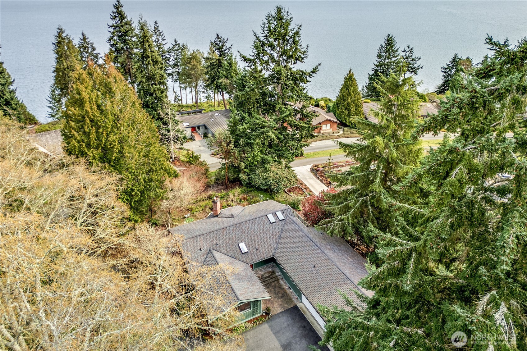 (650)533-3259Walls of windows, striking views of Port Townsend Bay, and summer sunrises on the wrap-around deck are what greet you every morning in this Kala Point home. Two bedrooms on the main floor each have their own private bath — one with a walk-in shower, one with a full bath. The foyer opens into a generous great room anchored by a wood burning fireplace. The kitchen flows naturally from there, featuring a plethora of custom Omega cabinetry, a gas cooktop, skylights, and bay views from the sink. A dedicated office space, with matching wall-to-wall Omega cabinetry, extends from the kitchen and maintains the openness throughout. Just around the corner is an oversized pantry, laundry room, and a convenient half bath right off the garage entry. The lower level has its own entrance, a large bedroom, a full bath, and a Family Room / kitchenette — flexible space for guests, extended family, or multigenerational living. The home sits on nearly a third of an acre with raised garden beds and an attached oversized garage. Outstanding Kala Point amenities include private beach, pool, tennis/pickleball & trails.