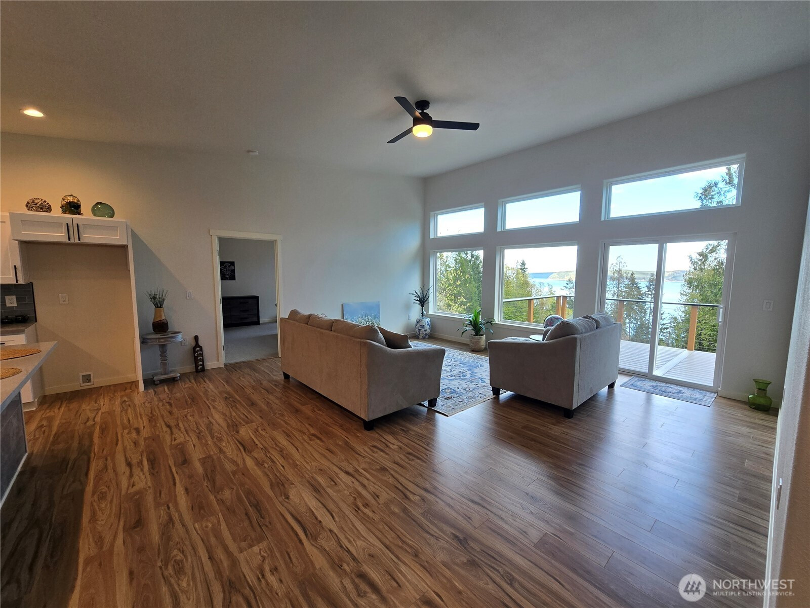 (650)533-3259New Home with a View of Hood Canal! Enter in Triton Cove Estates with community water access, cabana and a boat launch. This 2 story home has a wonderful view from the main floor and a 10 x 30 deck for entertaining and relaxing. 2 possible plumbed in places for a laundry room. All the rooms are nicely finished. The master bedroom has a beautiful bathroom with a large shower. The main bath has a tub/shower and close to the other bedroom. Both bathrooms have radiant heated tile floors. The kitchen features quartz counter tops, full tile back splash, stainless appliances with eating space and large pantry. A $2,000. Refrigerator allowance will be negotiated into a full price offer. The daylight basement/garage has potential for shop, storage or office space. Also with a view! 2 car tandem parking with a door leading to the front yard. Located at the end of a private cul-de-sac. Your dream home awaits you surrounded by the Olympic Peninsula recreation.