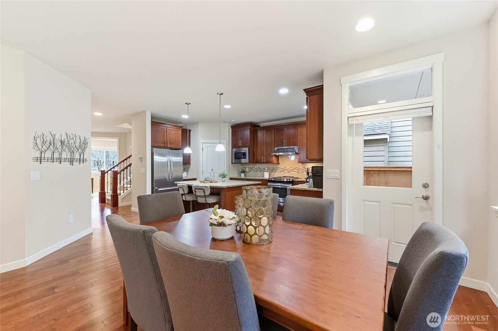 (650)533-3259Nestled into a quiet, private setting within the highly regarded Redmond Ridge, this stunning 4-bedroom, 2.5-bath home offers a peaceful retreat in one of the Eastside's most sought-after master-planned communities. Thoughtfully designed streetscapes, mature landscaping, and nearby parks create an inviting neighborhood feel — while this particular homesite feels especially secluded and serene as it backs to a greenbelt. Inside, a spacious, light-filled floor plan and stylish finishes make this home truly move-in ready. The elegant kitchen features slab countertops, appealing cabinetry, stainless steel appliances, and a walk-in pantry — all opening to comfortable living and dining areas primed for everyday living and entertaining. Heading upstairs past the wrought-iron banisters awaits generous bedrooms, a bonus room, and a luxurious 5-piece primary bath. A handy upstairs laundry room limits your trips up and down stairs and keeps your "steps" on the beautiful surrounding trails. "Step" outside and enjoy easy access to Bristol Park, neighborhood trails, QFC, tennis courts, sports fields, and Microsoft commuter bus stops — plus convenient connections to Redmond, Bellevue, Kirkland, and major Eastside employers. Prestigious Lake Washington School District serves this address. Private, peaceful, and remarkably rare.