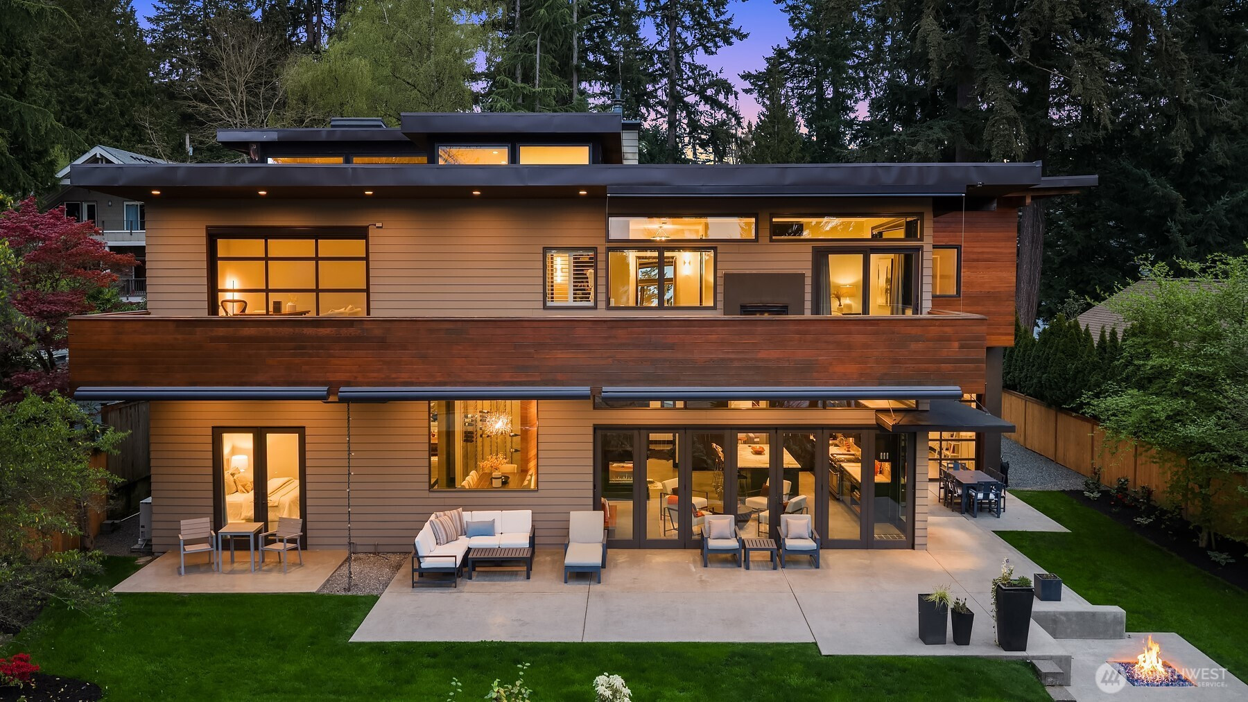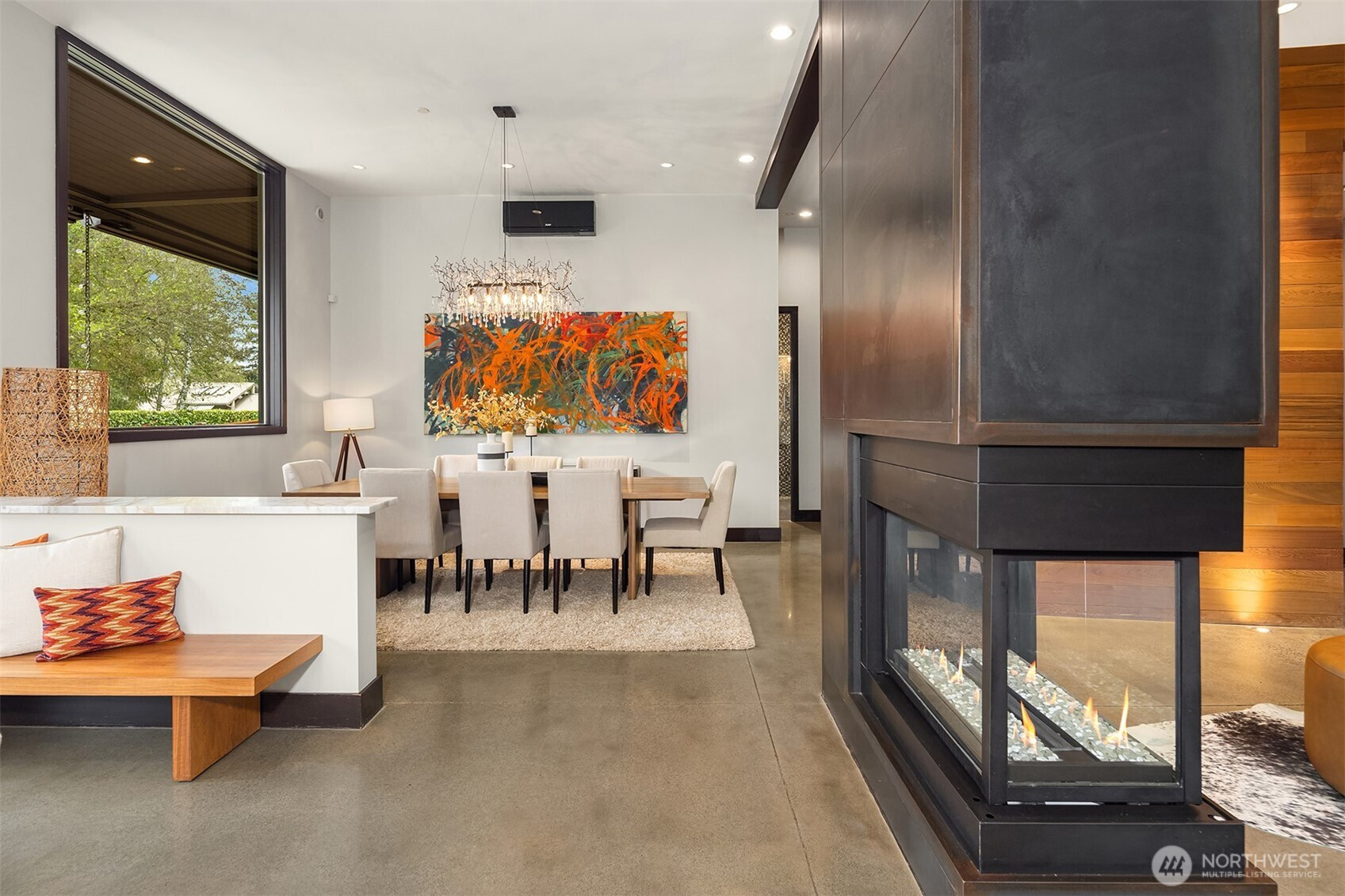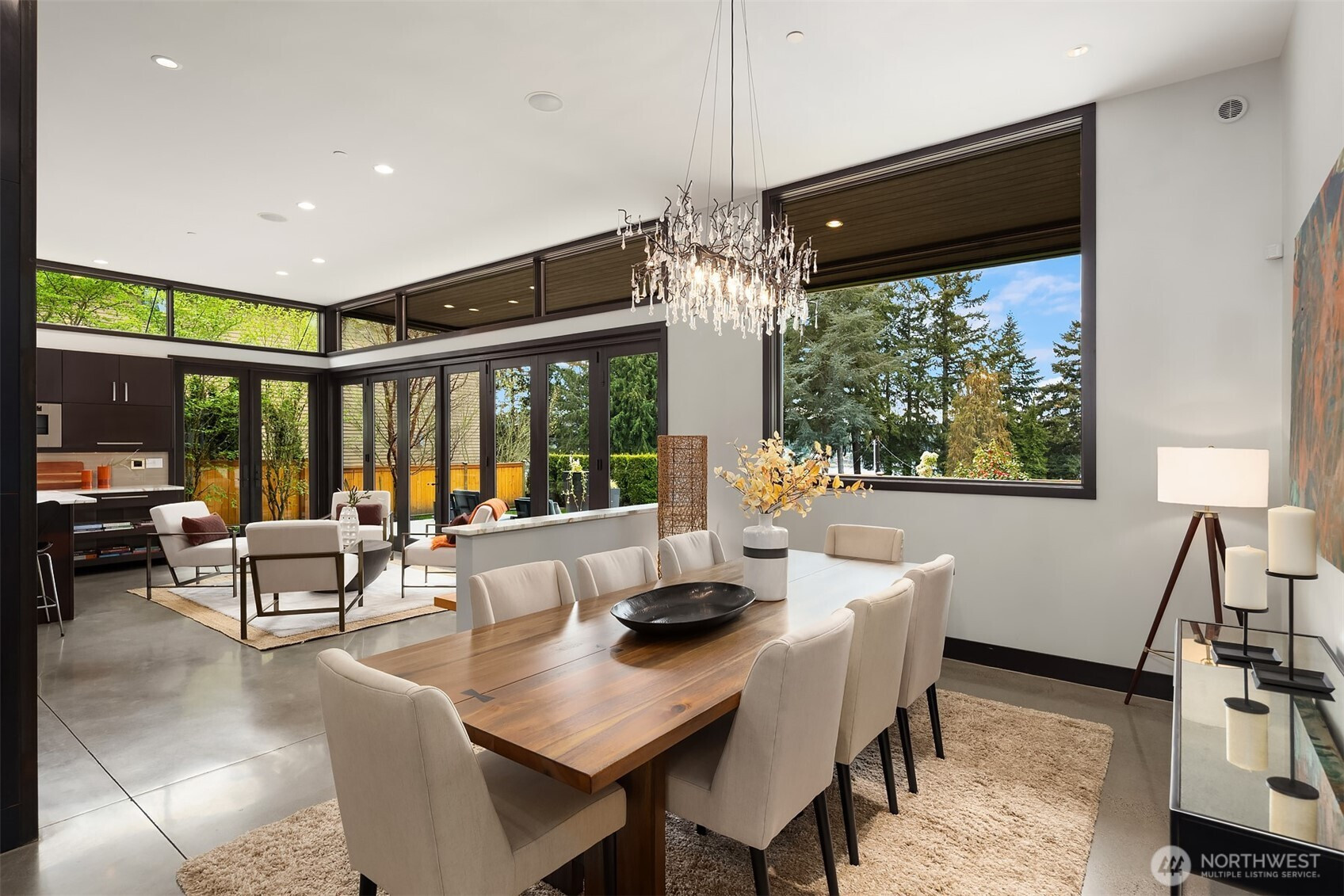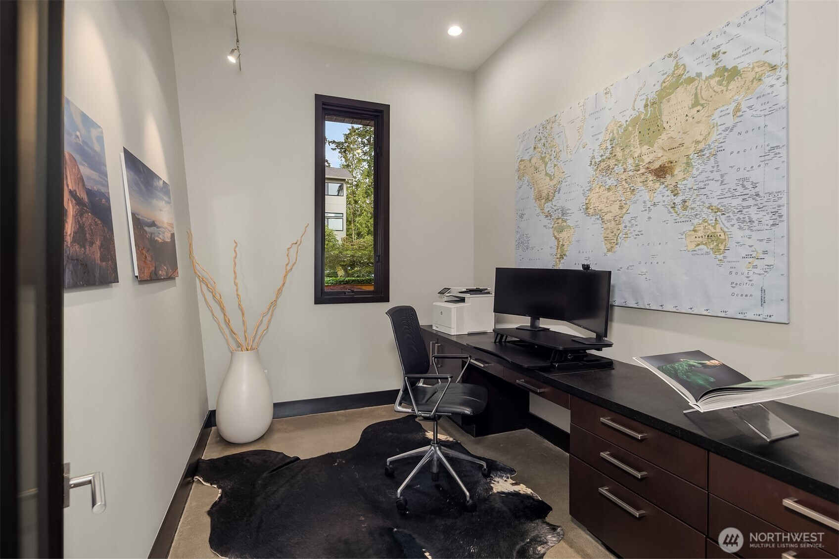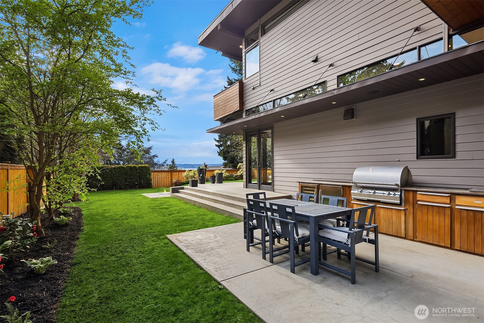 (650)533-3259West Bellevue Retreat // Ideally positioned in the heart of West Bellevue, this residence offers a rare combination of privacy, proximity, and protected west-facing views within one of the Eastside’s most sought-after neighborhoods. Set along a quiet, tree-lined street, the home is thoughtfully sited to capture natural light while maintaining a sense of seclusion. Interiors are defined by a clean, functional layout with refined, contemporary finishes throughout. Concrete flooring anchors the main level, complemented by vaulted ceilings and a neutral palette that feels both current and enduring. The kitchen is well-appointed with stone slab countertops, stainless steel appliances, and custom cabinetry, designed to integrate seamlessly with adjacent living and dining spaces. The main level flows effortlessly from formal to informal areas, with connected living spaces that open to the outdoors—creating an easy rhythm for both daily living and entertaining. Floor-to-ceiling glass frames surrounding greenery, bringing warmth and softness into the home throughout the day. The bedroom configuration offers flexibility, with a primary suite positioned for privacy and comfort, complemented by a private office suite well-suited for today’s work-from-home needs. Outdoors, the property presents a natural extension of the home, with usable yard space and mature landscaping that enhances both privacy and livability.