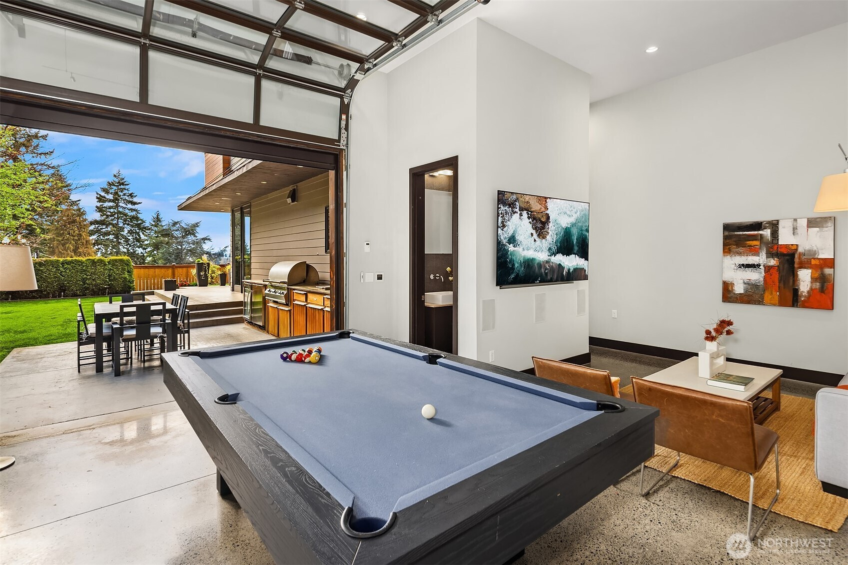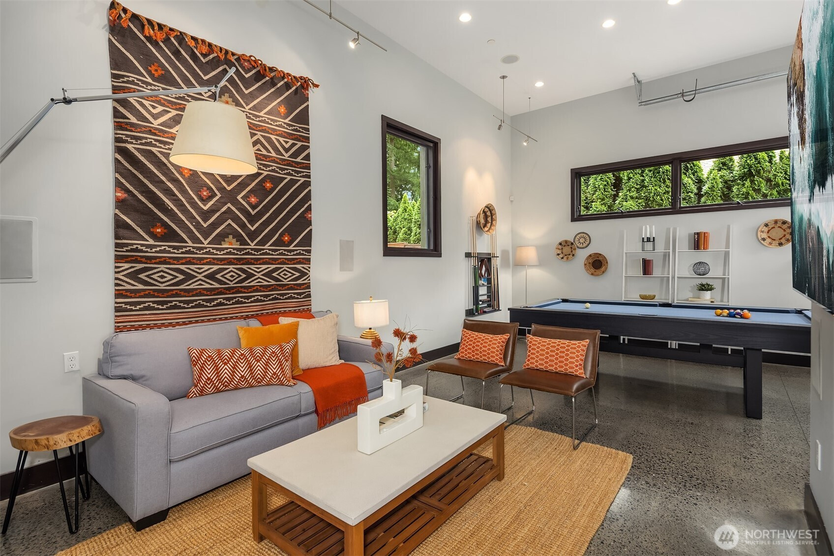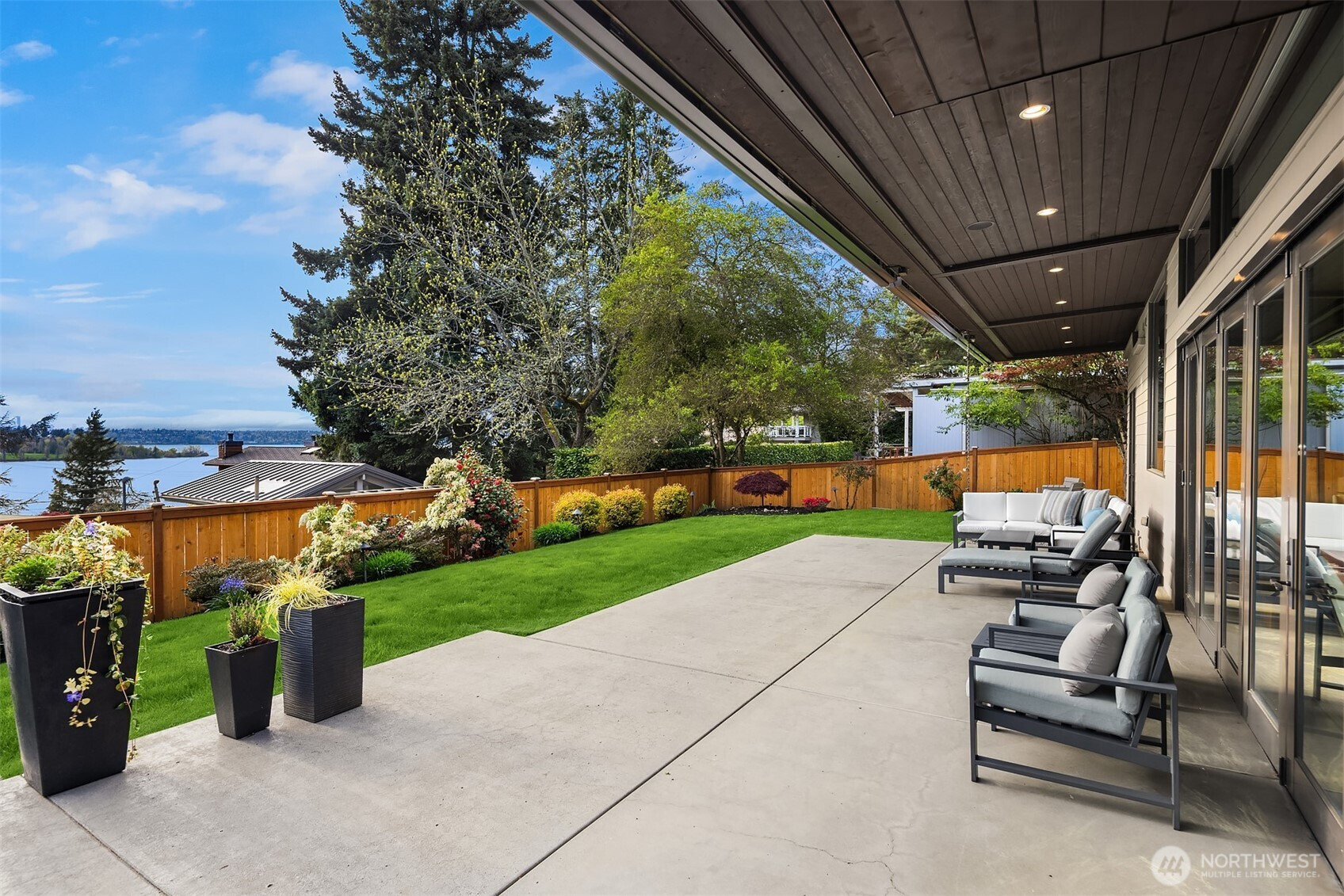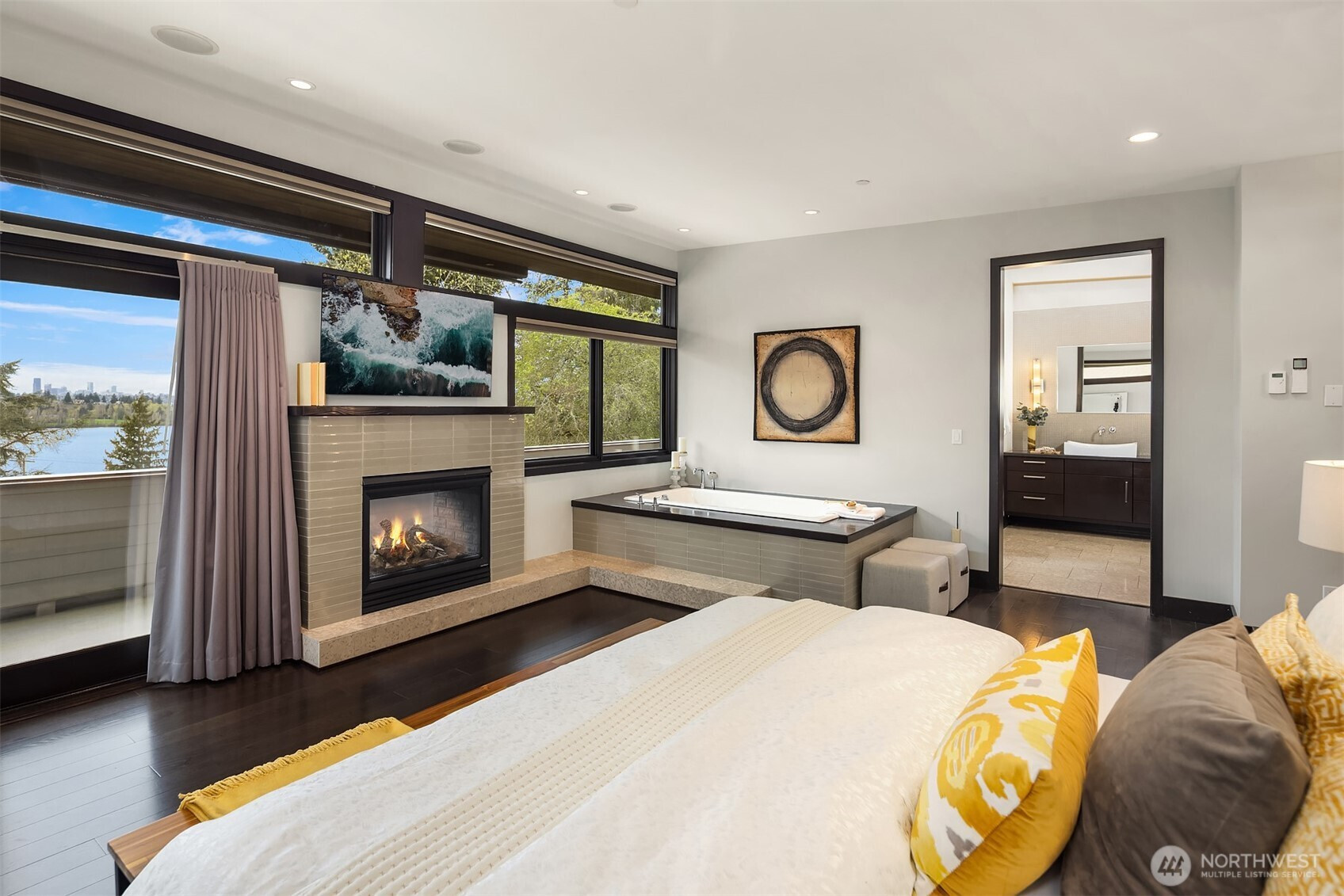 (650)533-3259West Bellevue Retreat // Ideally positioned in the heart of West Bellevue, this residence offers a rare combination of privacy, proximity, and protected west-facing views within one of the Eastside’s most sought-after neighborhoods. Set along a quiet, tree-lined street, the home is thoughtfully sited to capture natural light while maintaining a sense of seclusion. Interiors are defined by a clean, functional layout with refined, contemporary finishes throughout. Concrete flooring anchors the main level, complemented by vaulted ceilings and a neutral palette that feels both current and enduring. The kitchen is well-appointed with stone slab countertops, stainless steel appliances, and custom cabinetry, designed to integrate seamlessly with adjacent living and dining spaces. The main level flows effortlessly from formal to informal areas, with connected living spaces that open to the outdoors—creating an easy rhythm for both daily living and entertaining. Floor-to-ceiling glass frames surrounding greenery, bringing warmth and softness into the home throughout the day. The bedroom configuration offers flexibility, with a primary suite positioned for privacy and comfort, complemented by a private office suite well-suited for today’s work-from-home needs. Outdoors, the property presents a natural extension of the home, with usable yard space and mature landscaping that enhances both privacy and livability.