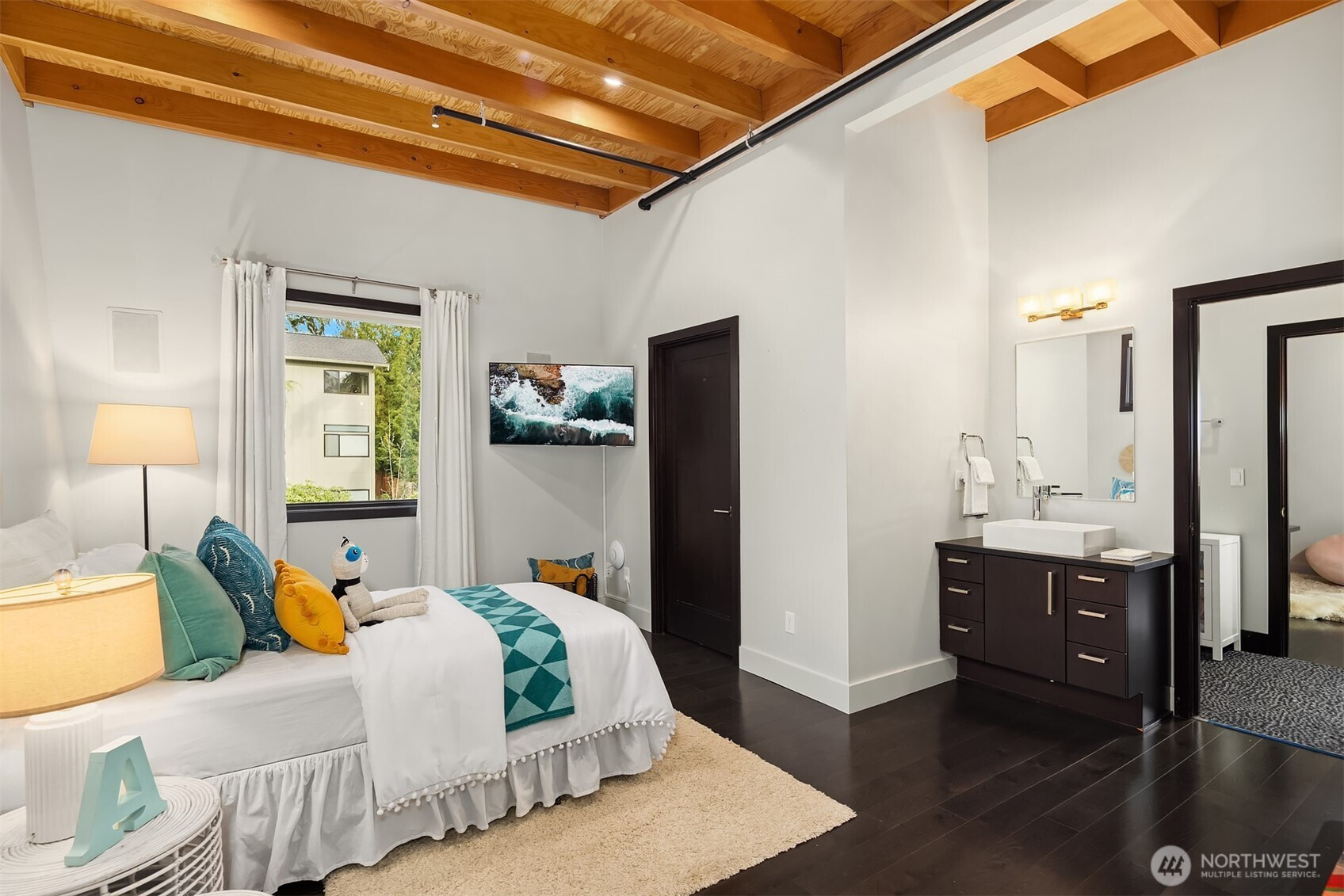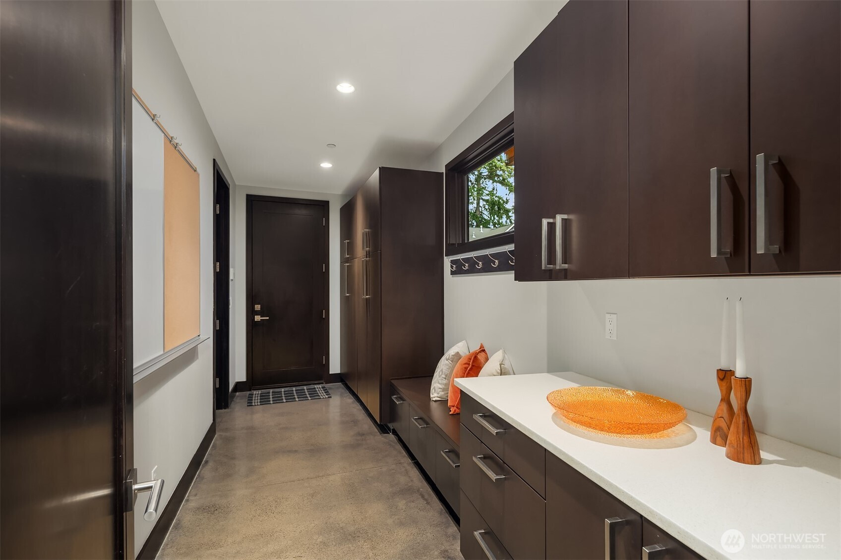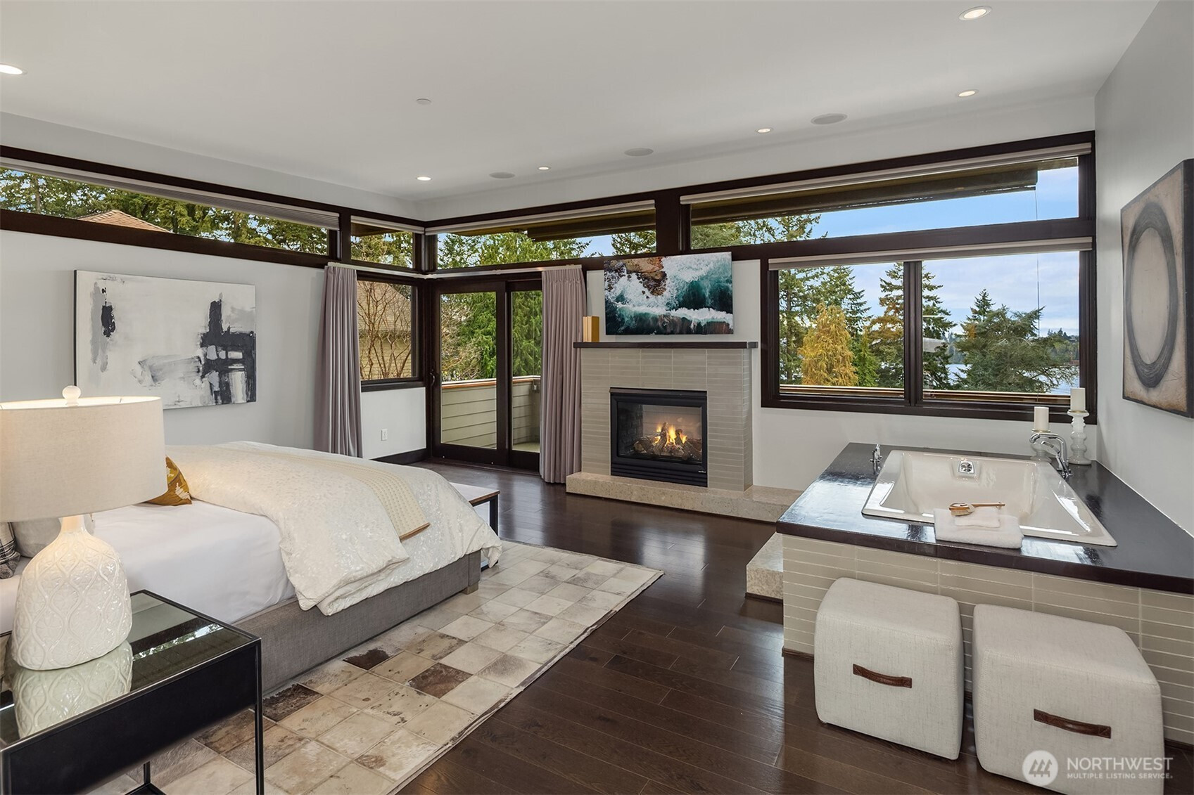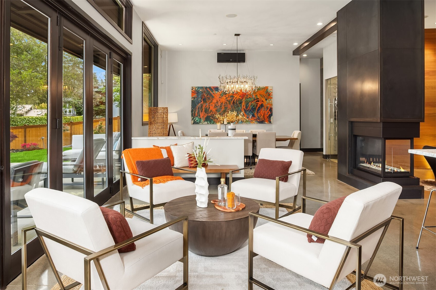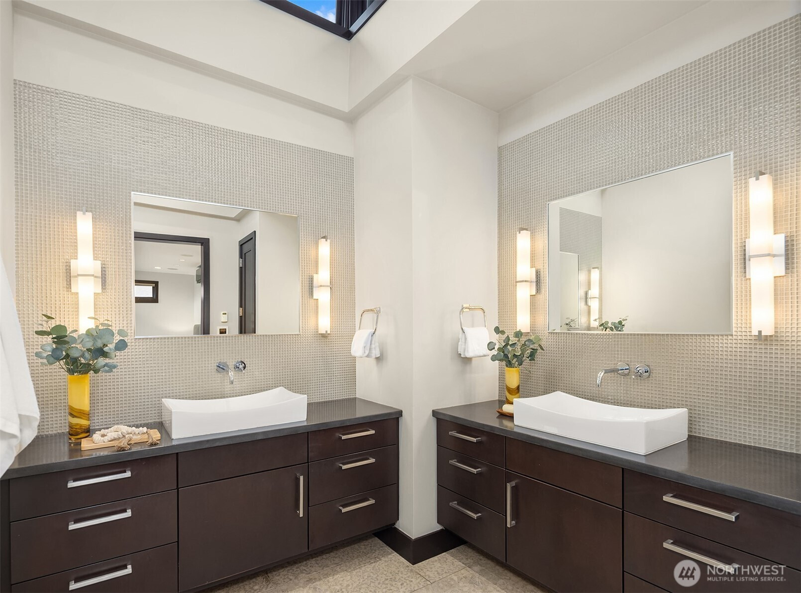 (650)533-3259West Bellevue Retreat // Ideally positioned in the heart of West Bellevue, this residence offers a rare combination of privacy, proximity, and protected west-facing views within one of the Eastside’s most sought-after neighborhoods. Set along a quiet, tree-lined street, the home is thoughtfully sited to capture natural light while maintaining a sense of seclusion. Interiors are defined by a clean, functional layout with refined, contemporary finishes throughout. Concrete flooring anchors the main level, complemented by vaulted ceilings and a neutral palette that feels both current and enduring. The kitchen is well-appointed with stone slab countertops, stainless steel appliances, and custom cabinetry, designed to integrate seamlessly with adjacent living and dining spaces. The main level flows effortlessly from formal to informal areas, with connected living spaces that open to the outdoors—creating an easy rhythm for both daily living and entertaining. Floor-to-ceiling glass frames surrounding greenery, bringing warmth and softness into the home throughout the day. The bedroom configuration offers flexibility, with a primary suite positioned for privacy and comfort, complemented by a private office suite well-suited for today’s work-from-home needs. Outdoors, the property presents a natural extension of the home, with usable yard space and mature landscaping that enhances both privacy and livability.