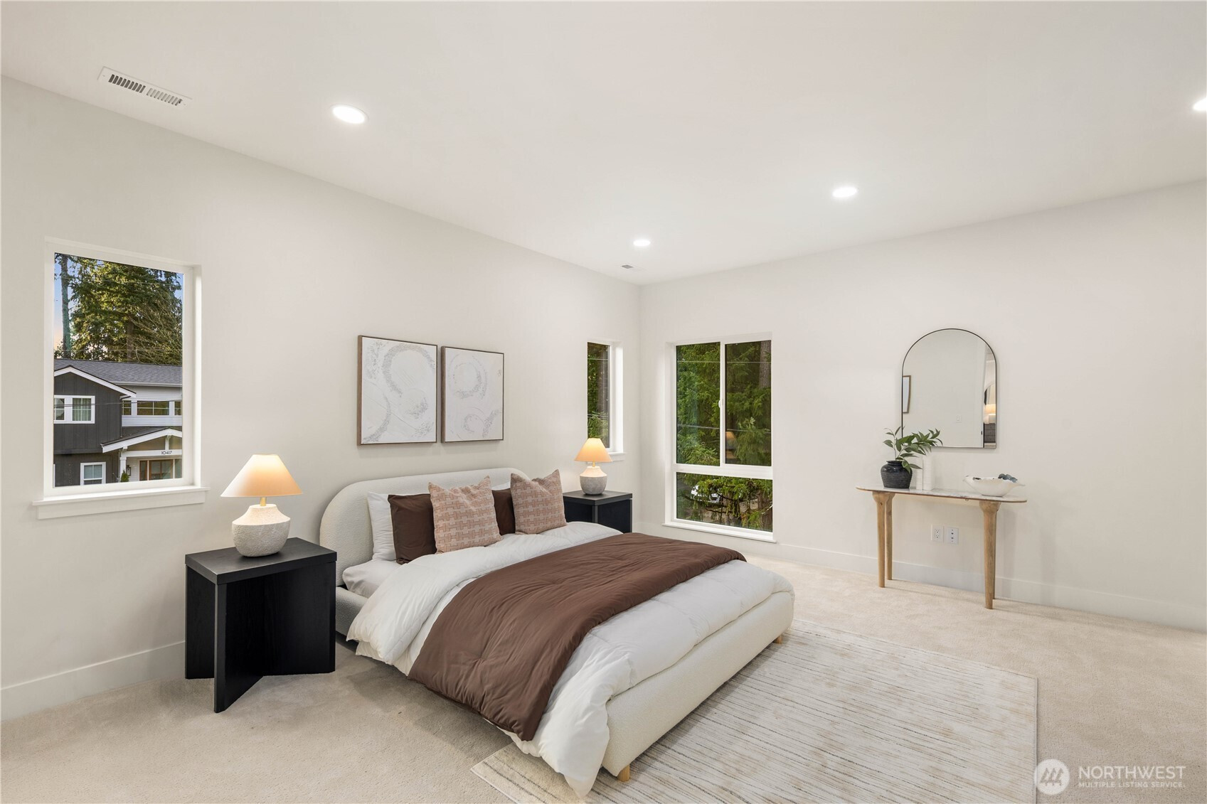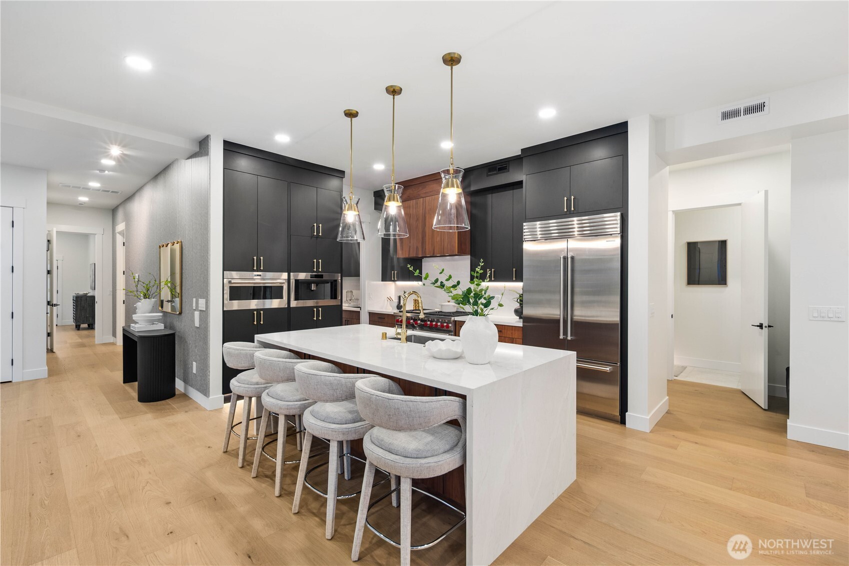 (650)533-3259Artemis Homes presents a newly built modern residence on a desirable corner lot in the sought-after North Rose Hill neighborhood. Thoughtfully designed with clean architecture, soaring ceilings, and expansive windows bringing in natural light throughout. The chef’s kitchen features European-style cabinetry, quartz waterfall island, prep kitchen, and premium Sub-Zero & Wolf appliances including a 48" dual fuel range, built-in coffee system, designer hood, and custom cabinetry. The open layout flows into the living room with a floor-to-ceiling tile fireplace, stone slab accent wall, and generous entertaining space. Main level includes a private office, powder bath, and flexible guest or second primary suite with living area, full bath, and separate exterior access. Upstairs offers oversized bedrooms including a luxurious primary suite retreat with spa-inspired bath, floating soaking tub, frameless glass shower, dual vanities, and custom walk-in closet. Additional suite-style bedrooms, reading nook, flex room ideal for office, gym, or studio, and convenient upstairs laundry. Smart upgrades include full Control4 automation controlling lighting, security, garage doors, and HVAC, Cat6 wiring throughout, security cameras, EV-ready garage, epoxy flooring, and central vacuum. Large Trex deck, landscaped yard with garden beds, and cedar privacy plantings. Near Mark Twain Park, I-405, downtown Kirkland, shopping, dining, and trails. A lifestyle!