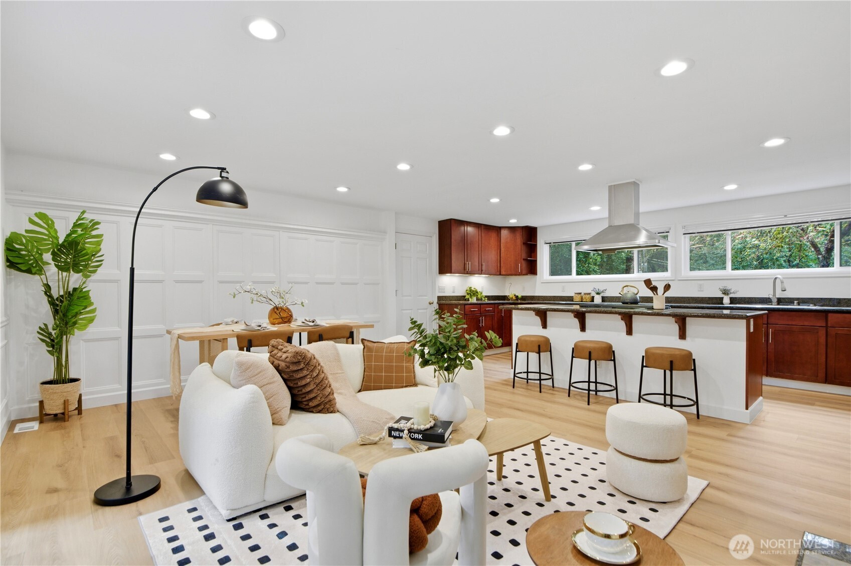 (650)533-3259Stunningly updated NW contemporary home on a large corner lot in the heart of Bellevue’s highly sought-after Enatai neighborhood. Thoughtfully updated throughout with a newer roof, new flooring, fresh interior and exterior paint, and modern lighting, this home feels bright and inviting.The main level features an open-concept kitchen and living area, 3 bedrooms, and a versatile office or family room. The updated kitchen and contemporary bathrooms offer a clean, modern feel. The lower level includes a private-entry suite that can also serve as a spacious primary bedroom, along with a cozy family room, laundry, and storage. Enjoy a reimagined deck overlooking a spacious, level backyard with a sport court, newly reseeded lawn, and thoughtful landscaping. Conveniently located just minutes to Downtown Bellevue, with easy access to I-405 and I-90, and within the top-rated Bellevue School District.