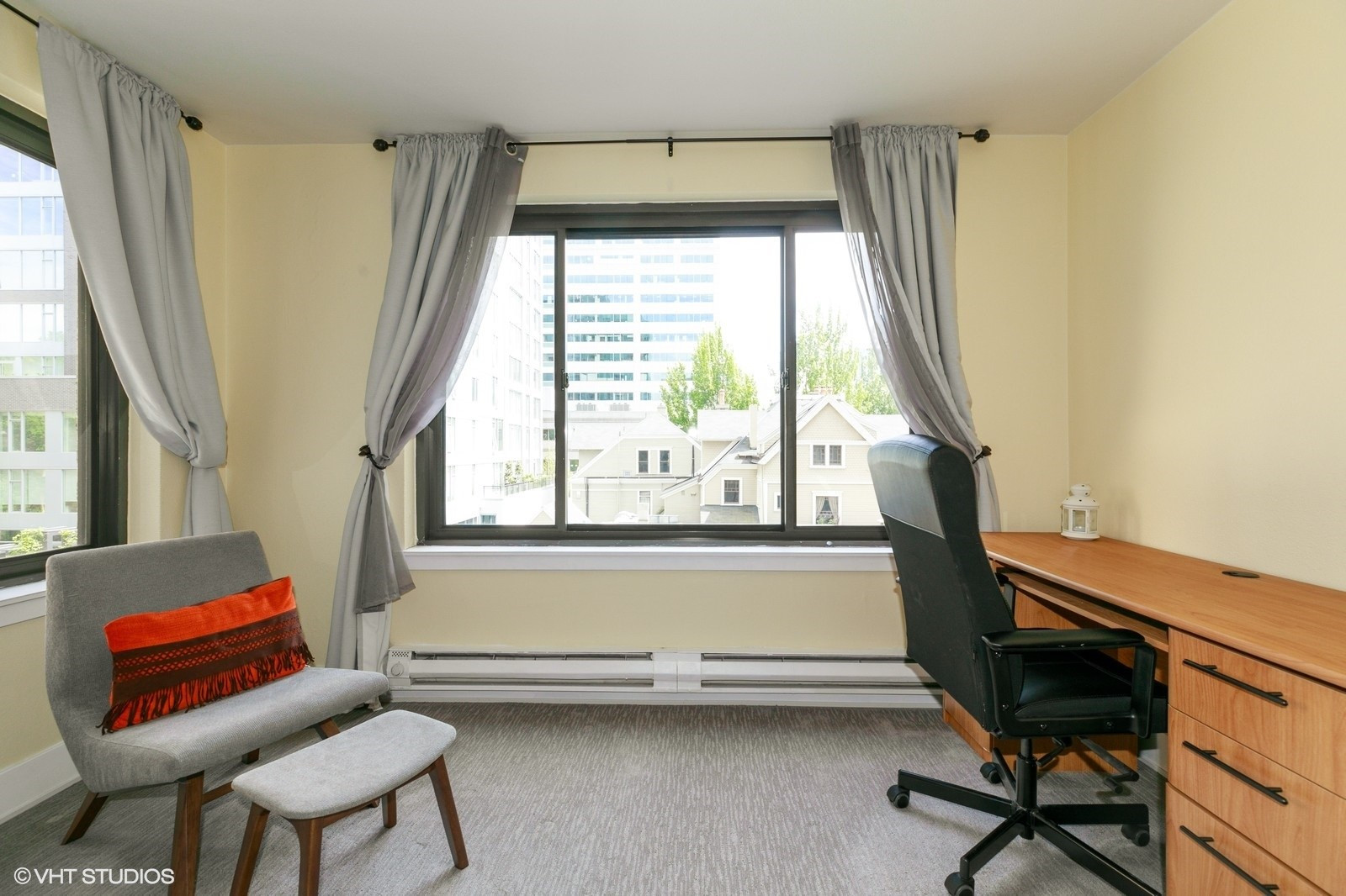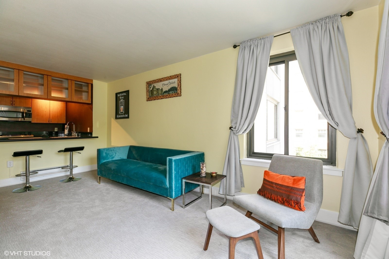 (650)533-3259Sophisticated Decatur Building designed by Space Needle's Architect John Graham. Located on tree lined street in First Hill in the heart of downtown. Laundry room on same floor. Convenient location near all amenities, transportation. Updated in 2007, features 1 bedroom, 1 bath, open plan, panoramic windows, hardwood floor entry & kitchen, breakfast nook, slab granite counters, SS appliances. Stylish bath, white subway tiles reminiscent of an era past. Pet friendly, rooftop view deck. NO RENTAL CAP.