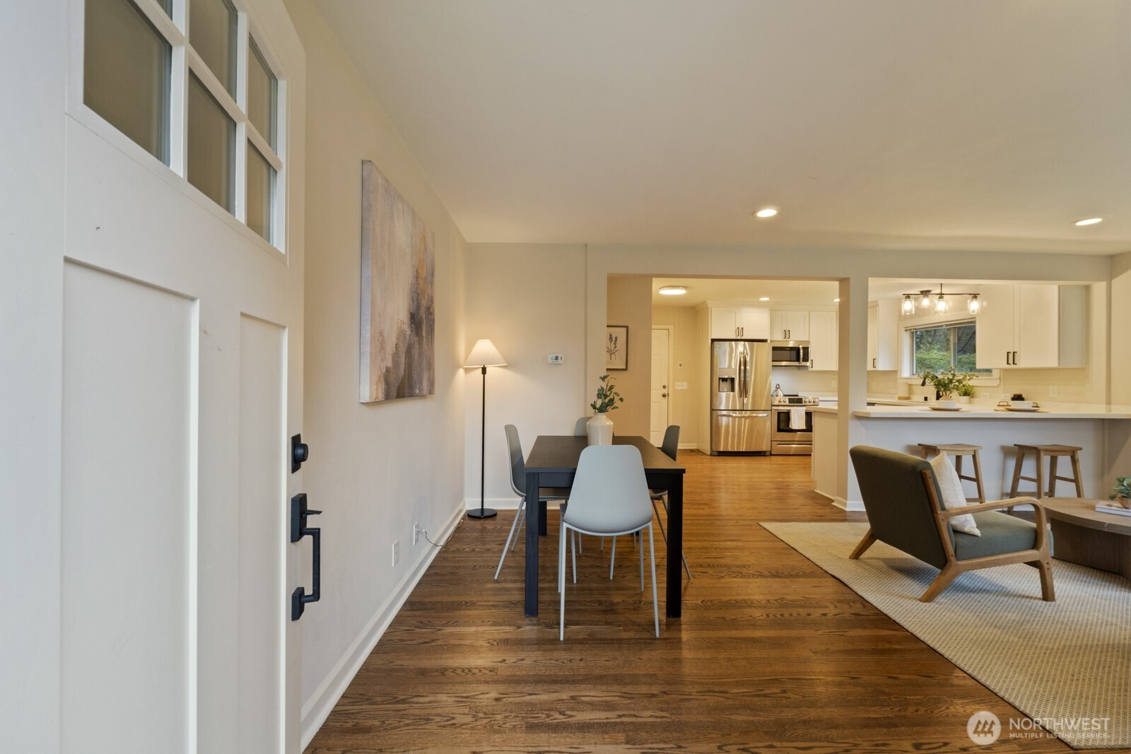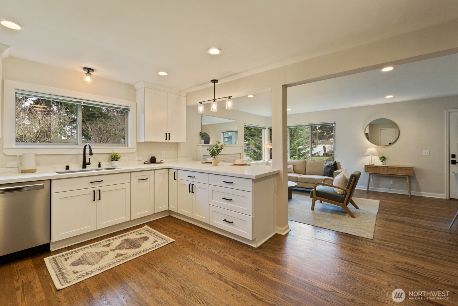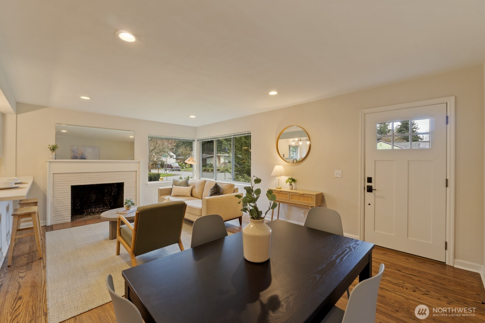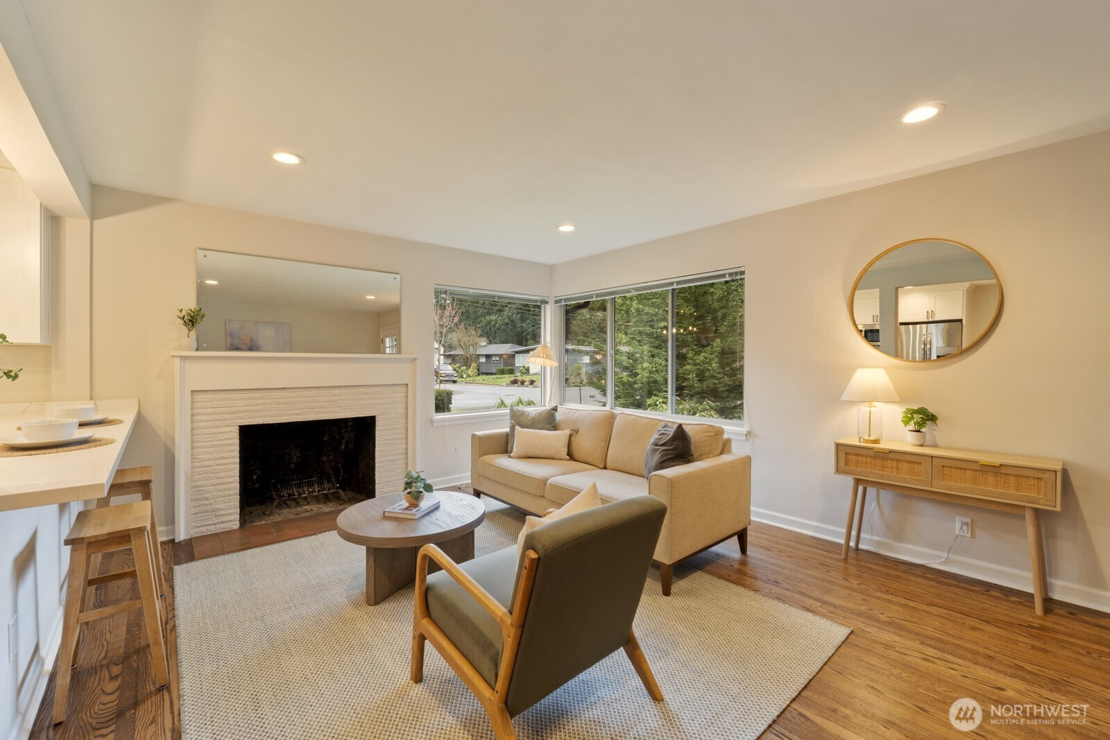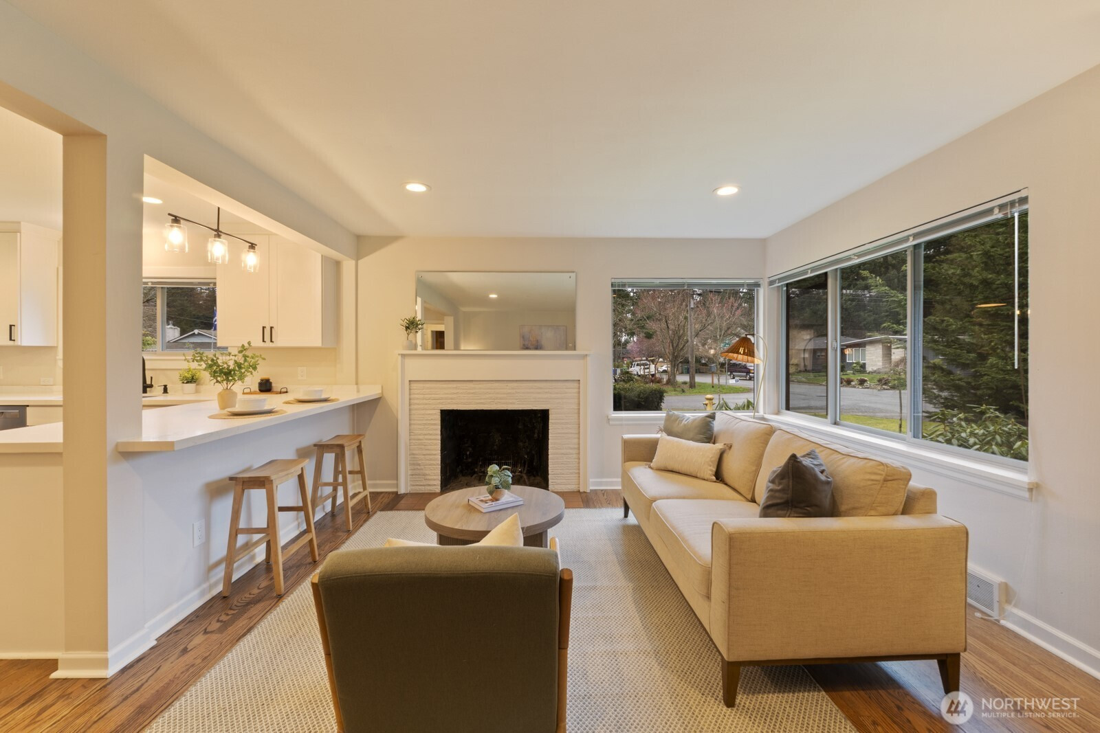 (650)533-3259**Charming mid-century rambler in Broadview.** This 3BD, 1BA home features hardwood floors, a cozy living-room fireplace, and a beautifully remodeled kitchen with stainless steel appliances, quartz counters, and white shaker cabinets. Enjoy off-street parking and easy access to nearby shops, parks, and everyday amenities. A warm, inviting home in one of Seattle’s most peaceful neighborhoods.