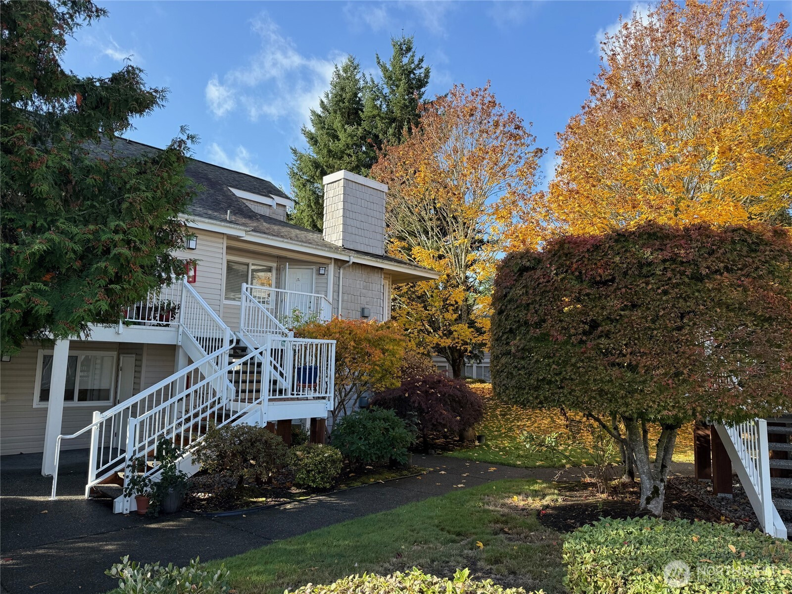 (650)533-3259Spotless corner unit in gated, peaceful, beautifully landscaped Windsong Arbor- individual garage out front. Newer Carpets, 2” blinds & paint. Living room with gas fireplace looks out to serene wooded area; vaulted dining area opens to kitchen with newer frig, washer/dryer, new laminate flooring , loads of cabinets and counter space and wave-activated counter lighting. Large upper bedroom with full bath upstairs. HOD include maintenance, WSG AND GAS. Community center great for gatherings, or to use workout machines or relax on patio. Extra pkg @ comm center; Sport court and pet areas too. Walk to Benson on busline, where shopping and restaurants abound. Super convenient – usually under 5 min to 212th St Exit off 167